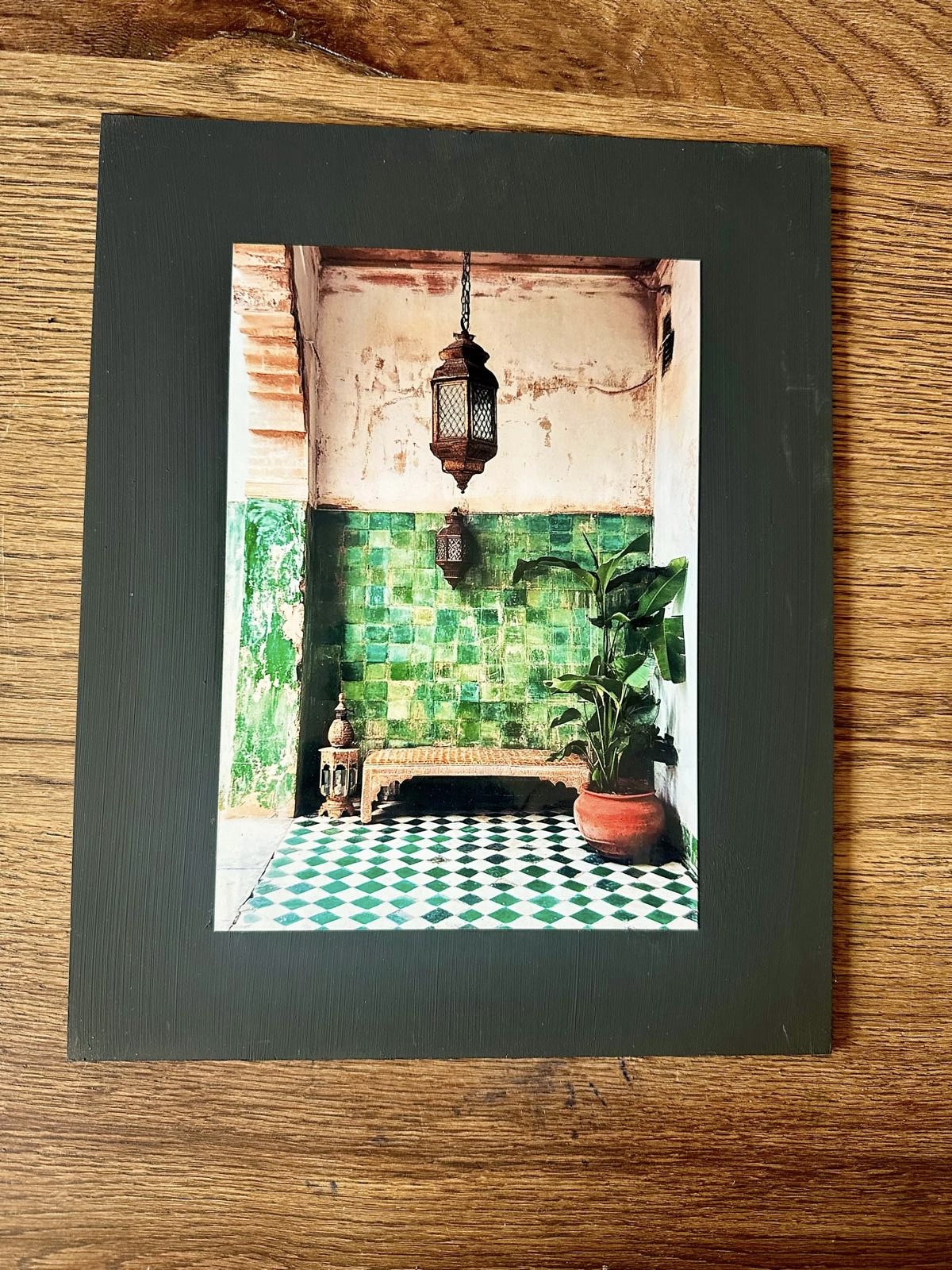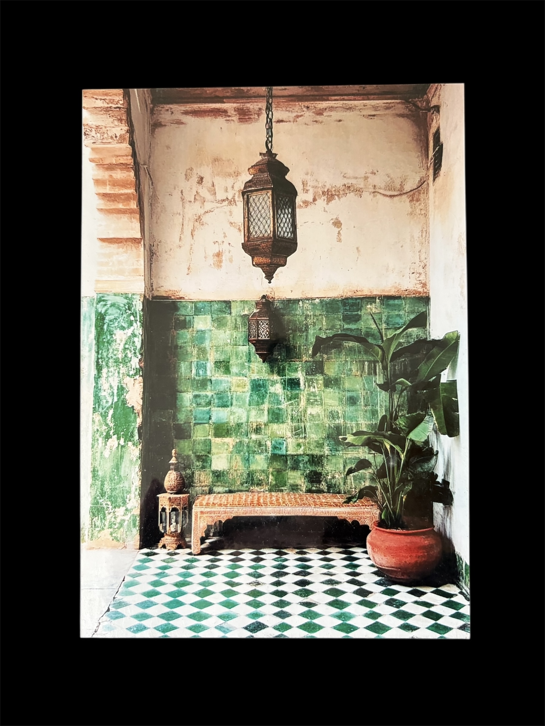 AFFICHE MAROC RIGIDE FOND NOIR PAYSAGE 24×30 – ZELLIGE VERT