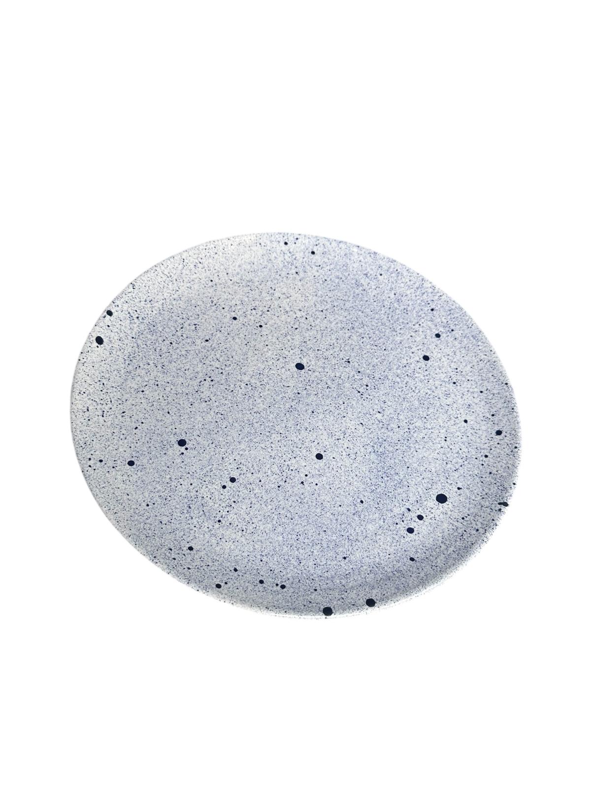 ASSIETTE BLANCHE MOUCHETÉ BLEU MAROCAINE 25CM FAIT MAIN