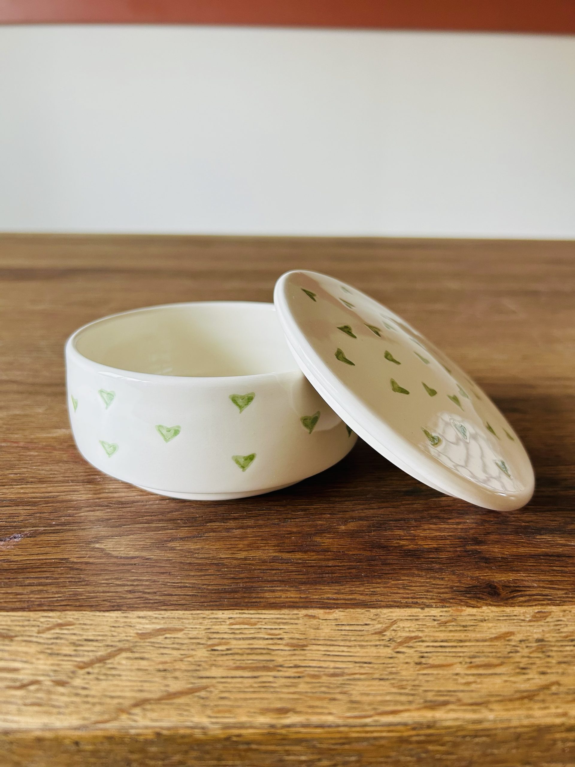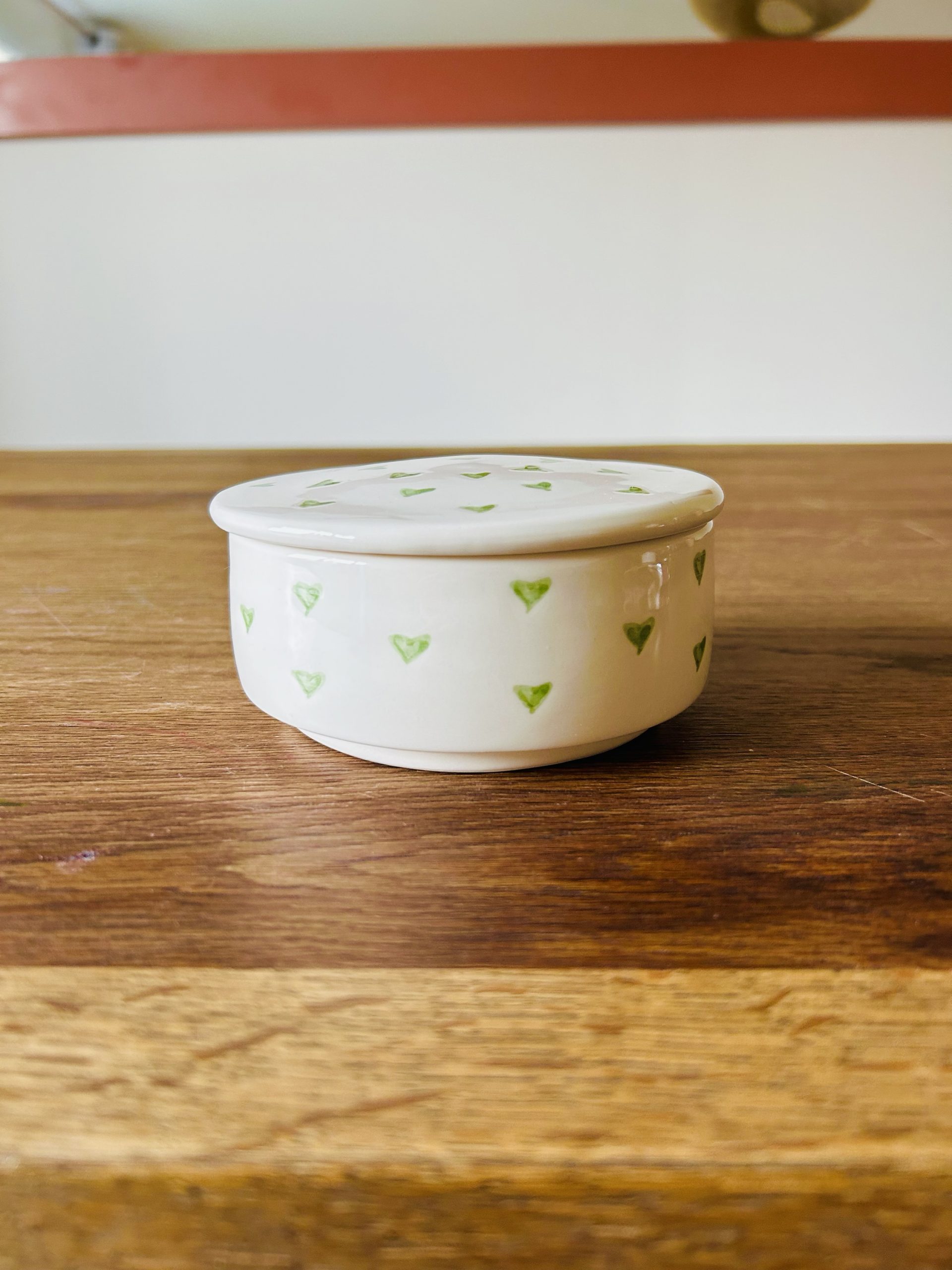 BOÎTE RÉCIPIENT BLANCHE ET CŒUR VERT MAROCAIN FAIT MAIN