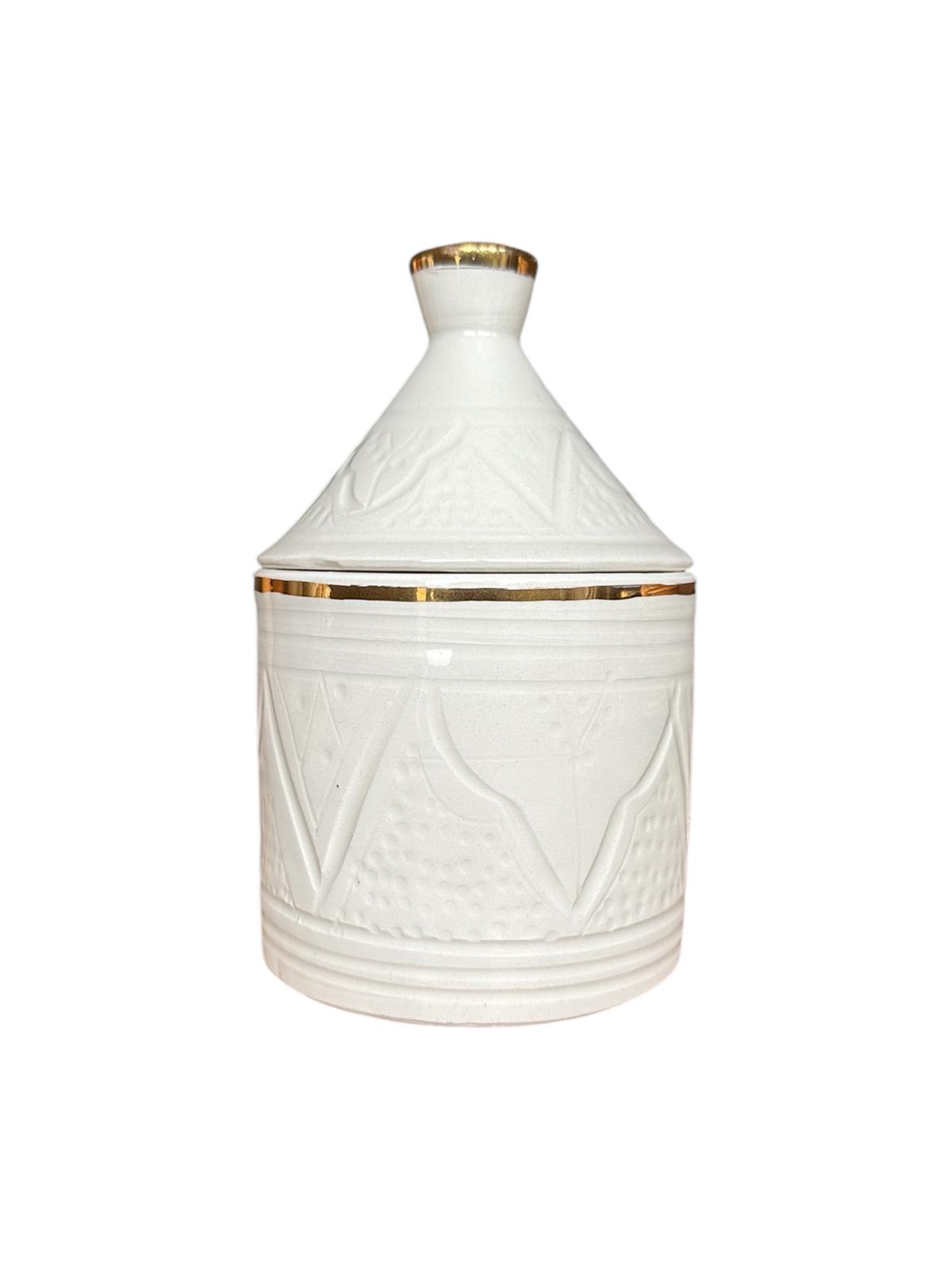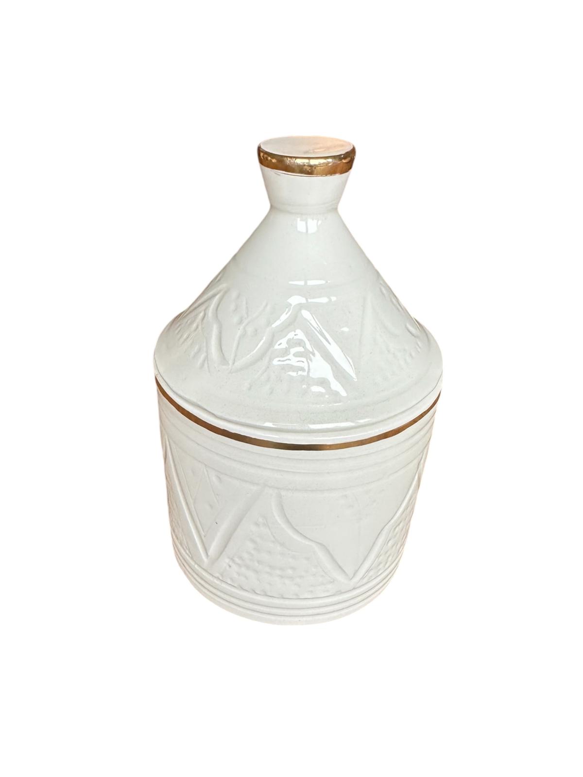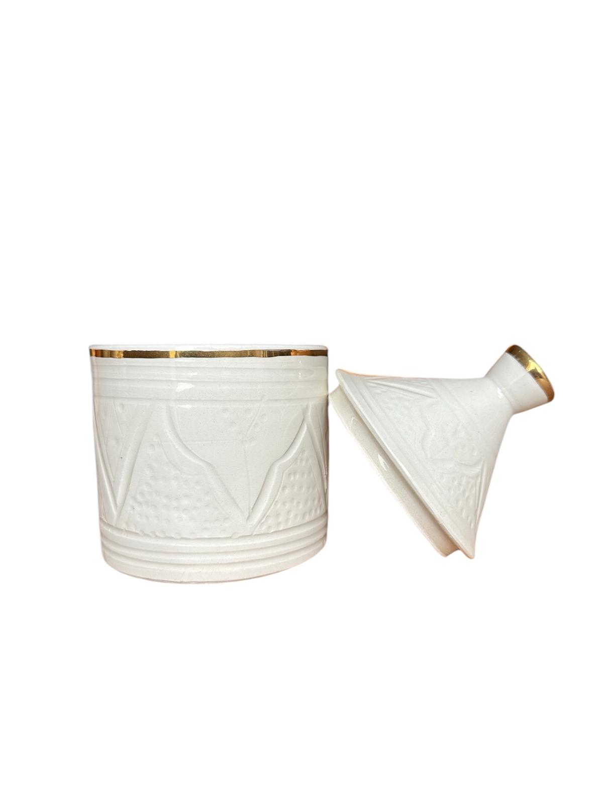 BOÎTE TAJINE À EMPREINTES BLANC ET DORÉ MAROCAIN FAIT MAIN