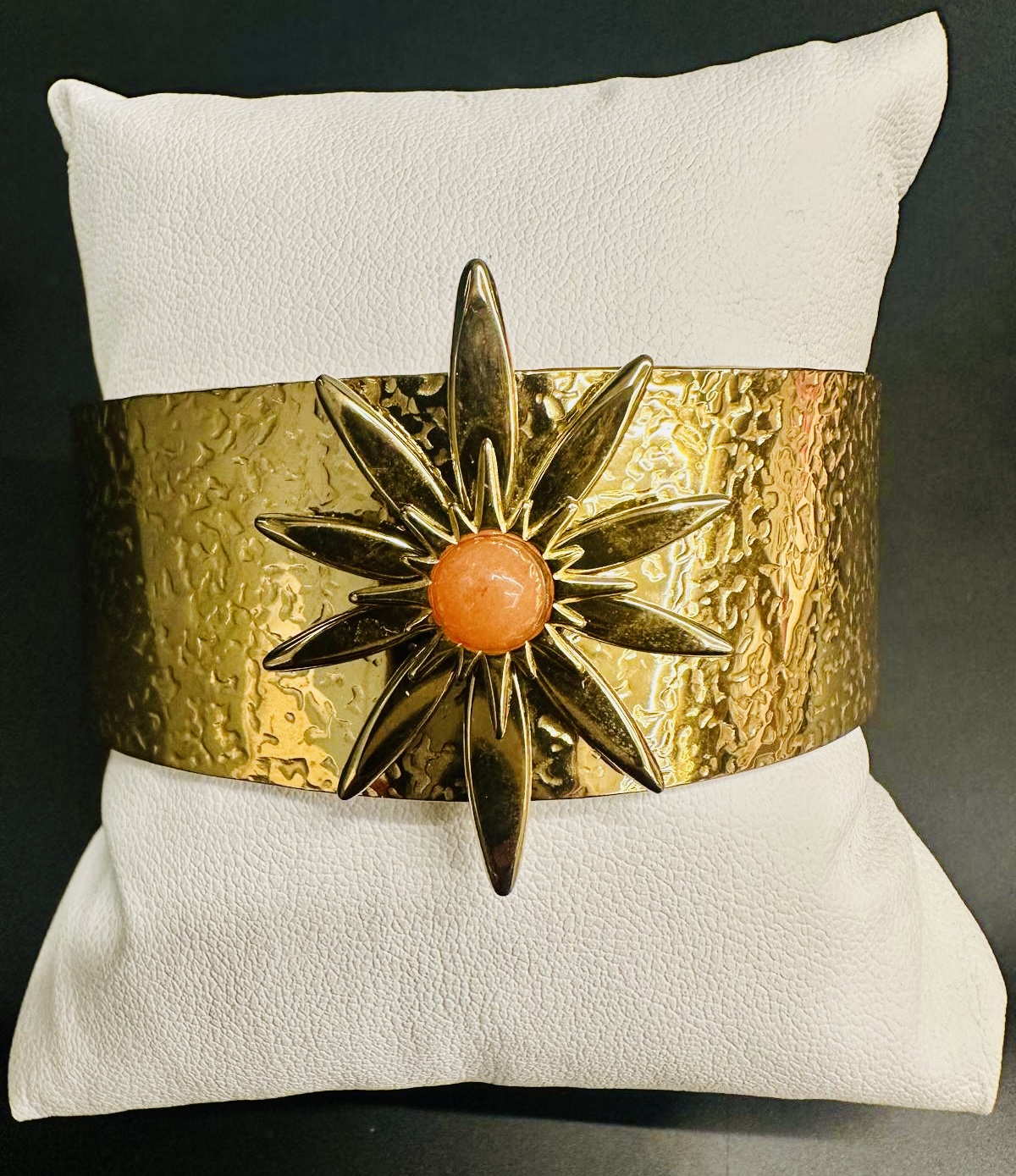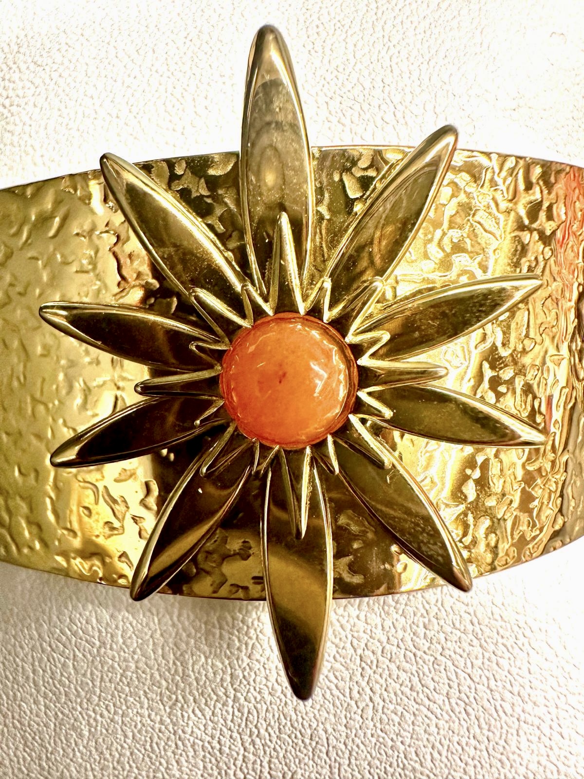 BRACELET ORIENTAL – JONC MAROCAIN EN ACIER INOXYDABLE – ÉTOILE PIERRE ORANGE