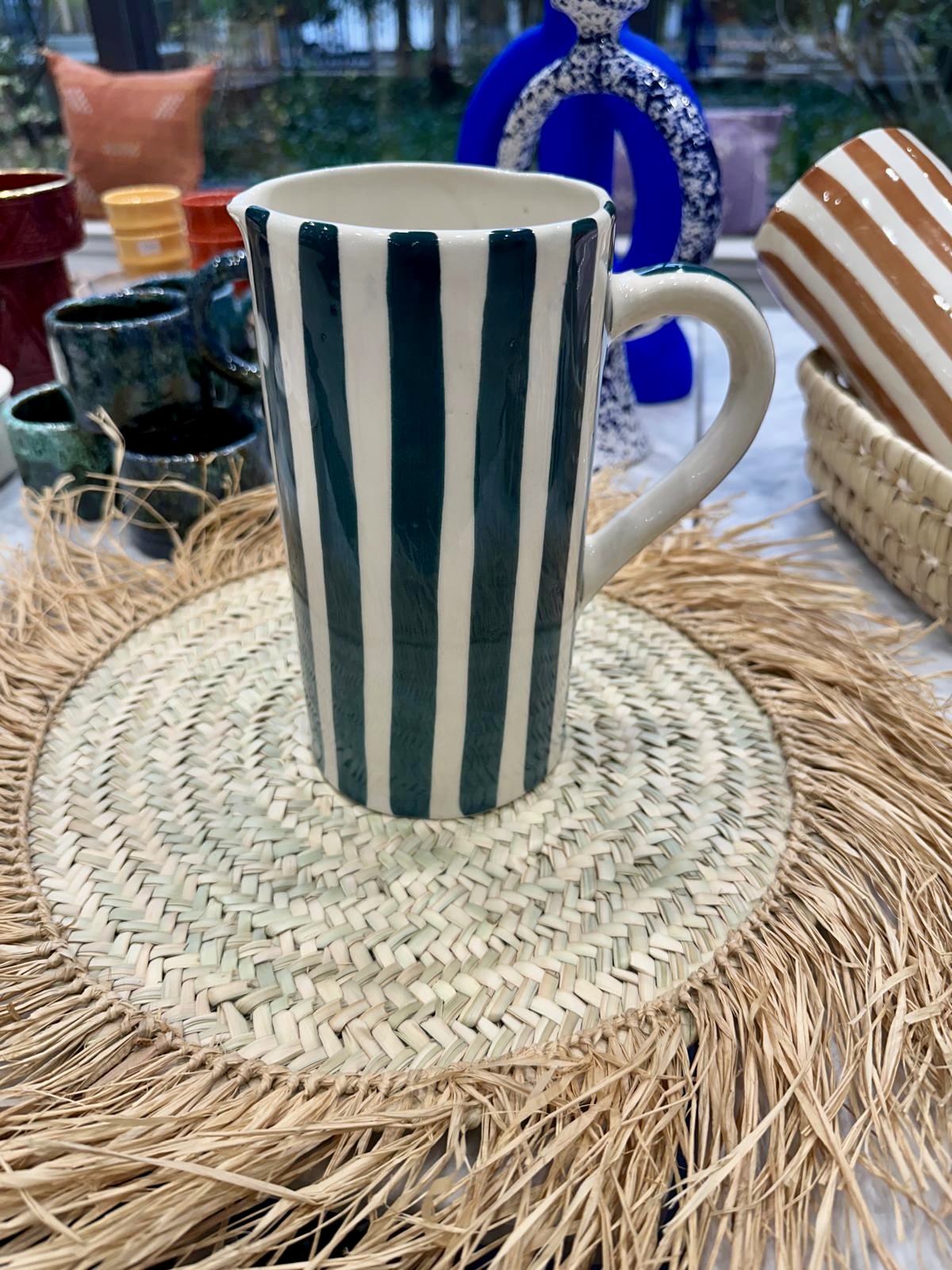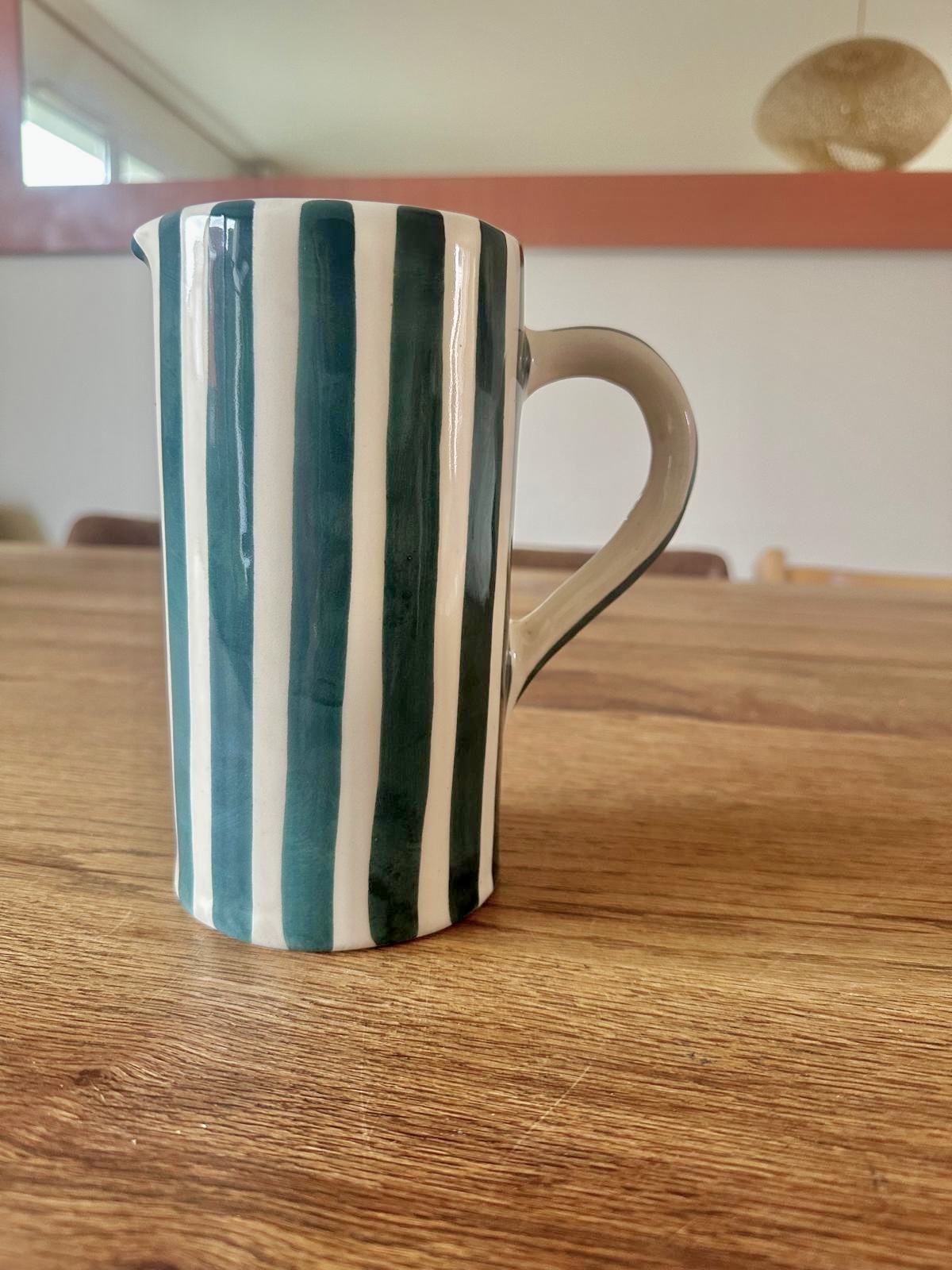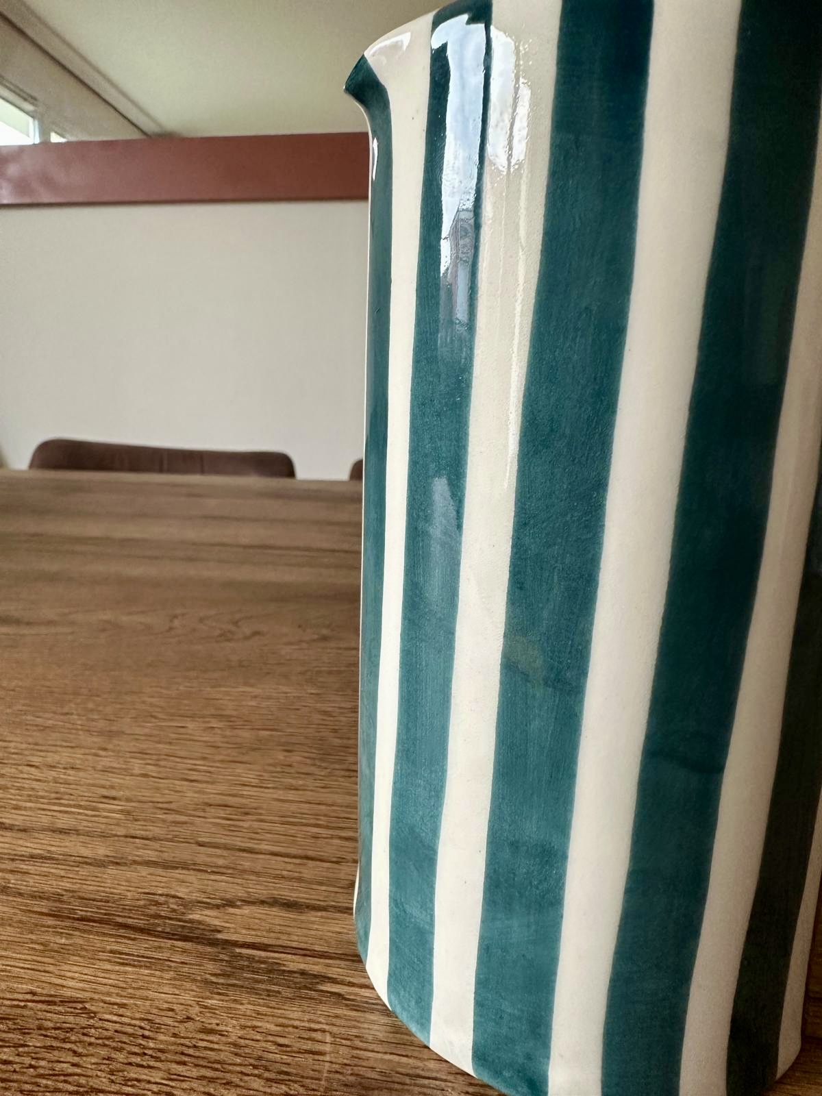 CARAFE MAROCAINE BLANCHE RAYÉ VERT PÉTROLE