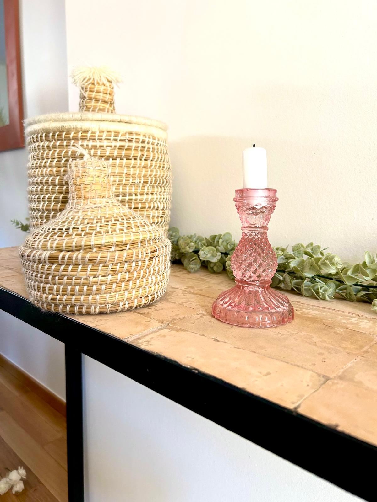 Chandelier Bougeoir en verre transparent rose décoration intérieure