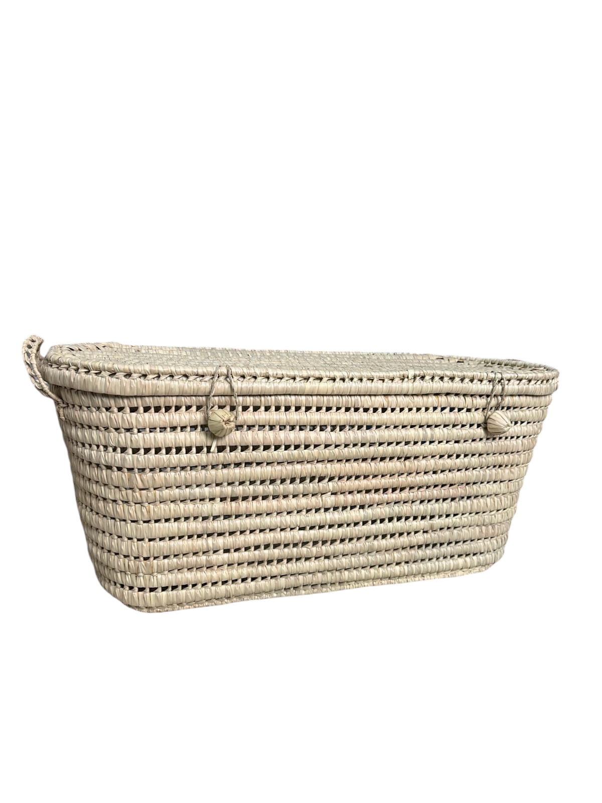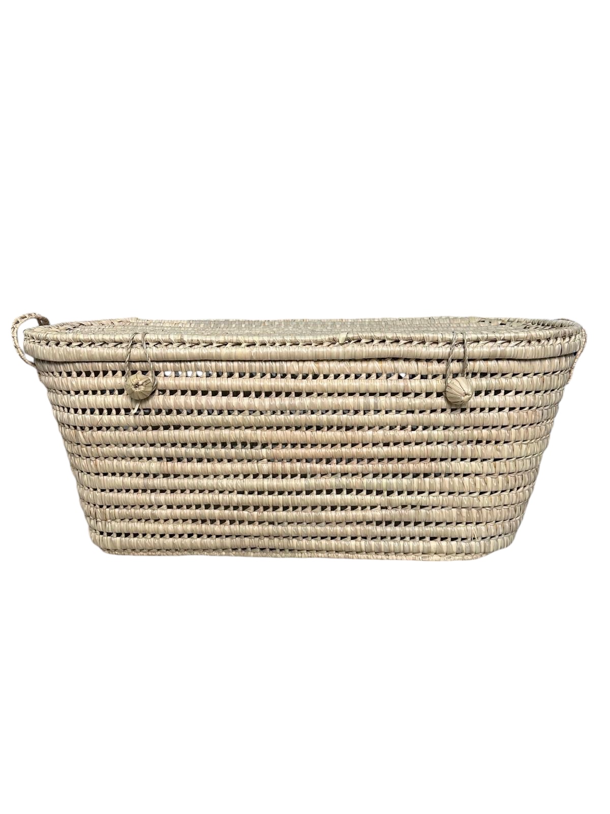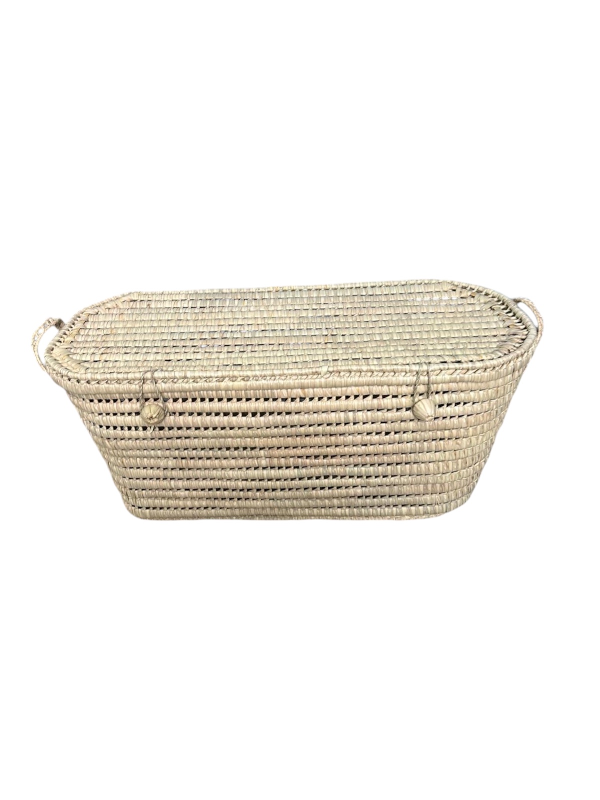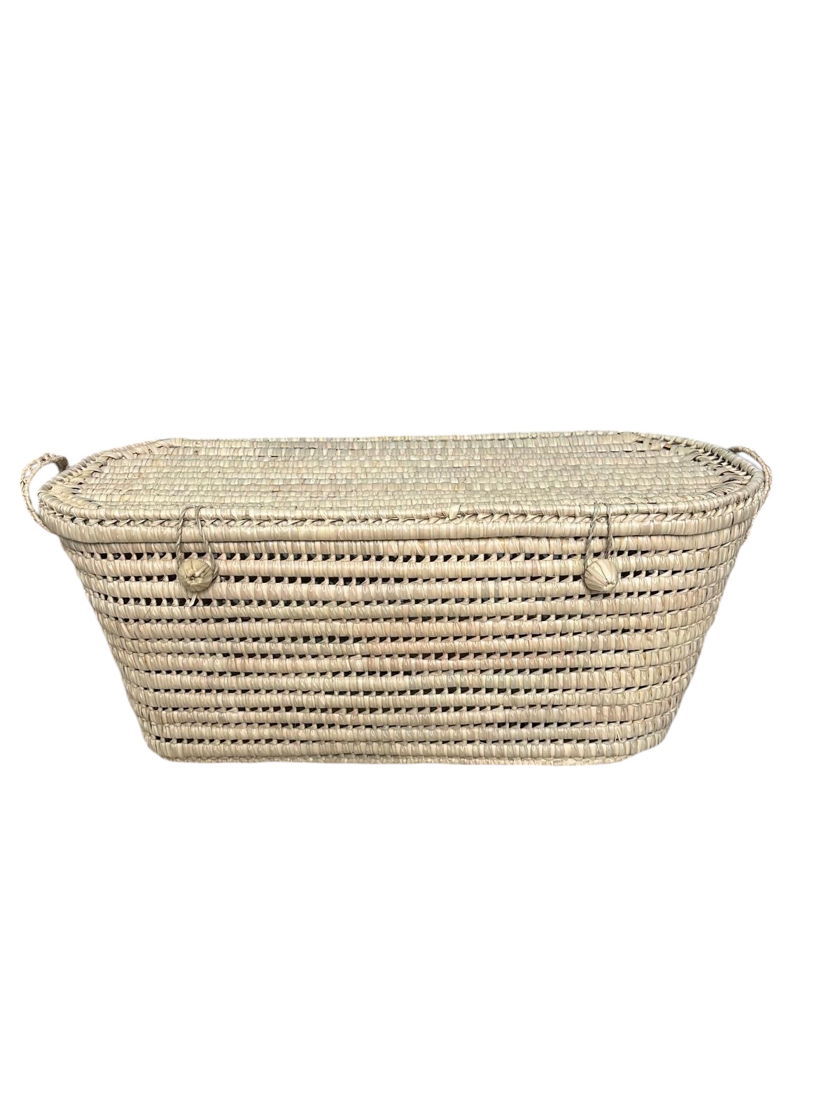 Nos malles possèdent des anses afin de les déplacer aisément ; délicatement tressées en feuilles de palmier on vous propose 3 formats que vous pouvez superposés à votre guise !