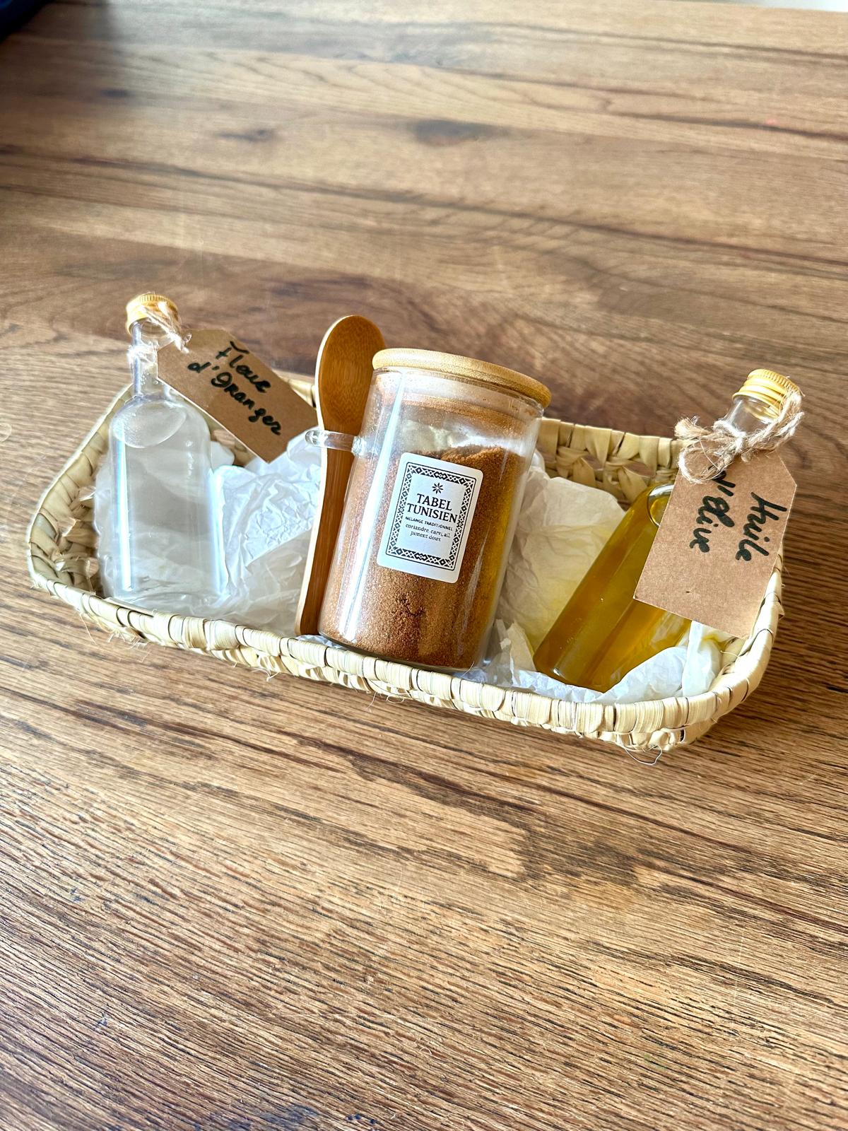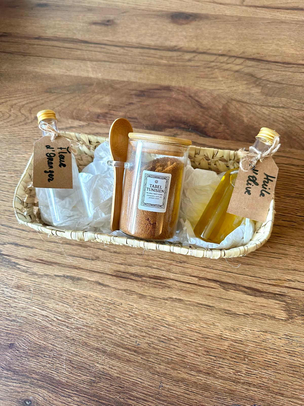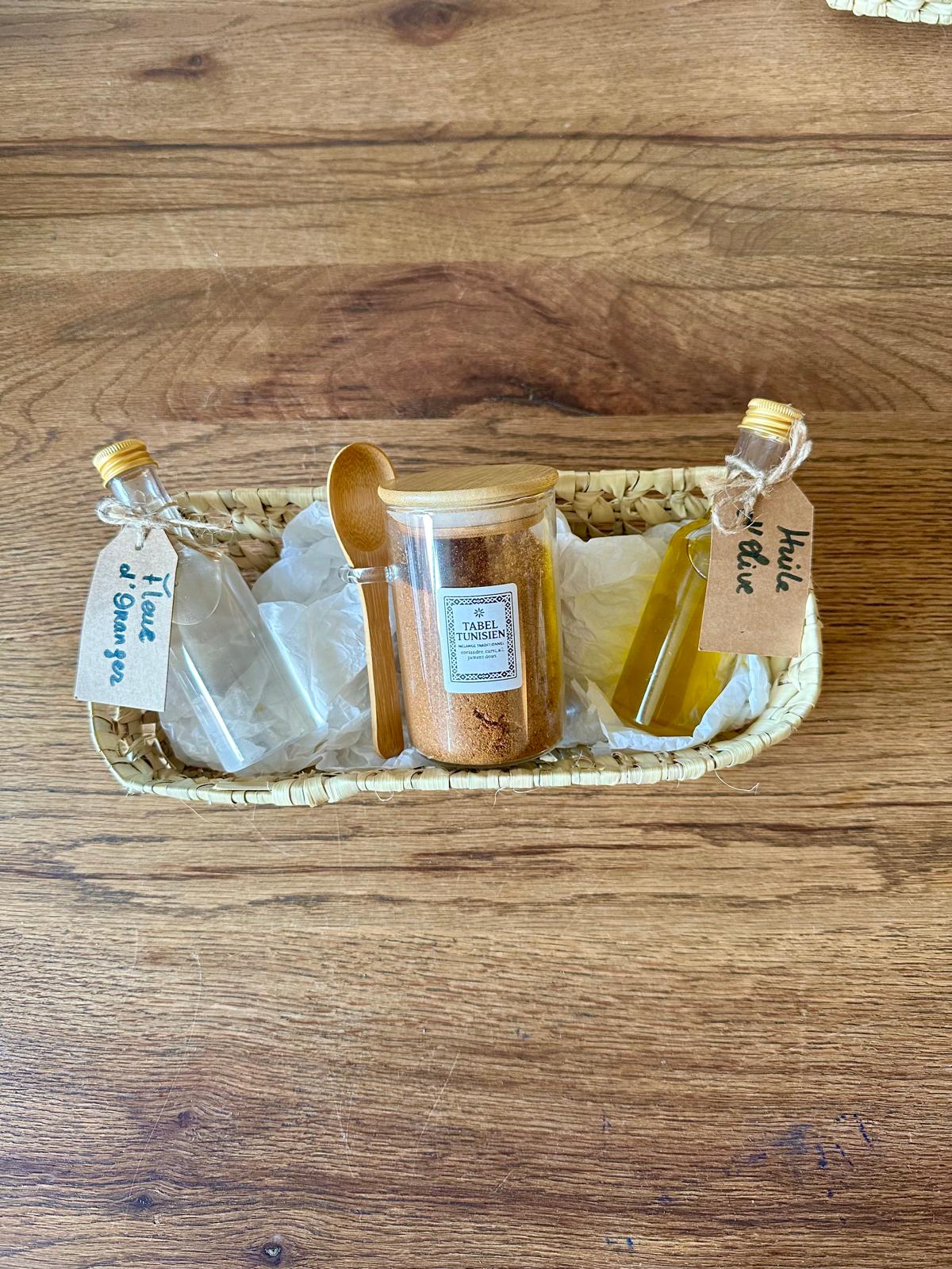COFFRET CADEAU – ÉPICERIE FINE – ÉPICE TABEL, HUILE D’OLIVE ET FLEUR D’ORANGER