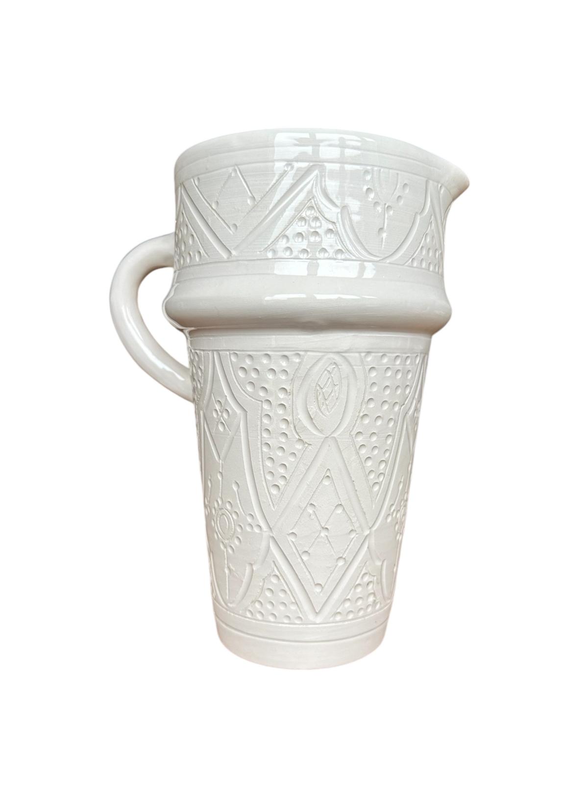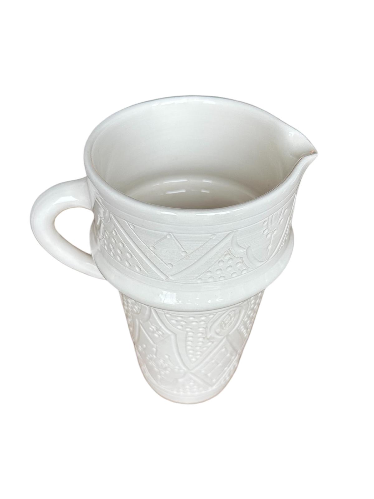 CRUCHE CARAFE À EMPREINTES BLANC EN CÉRAMIQUE