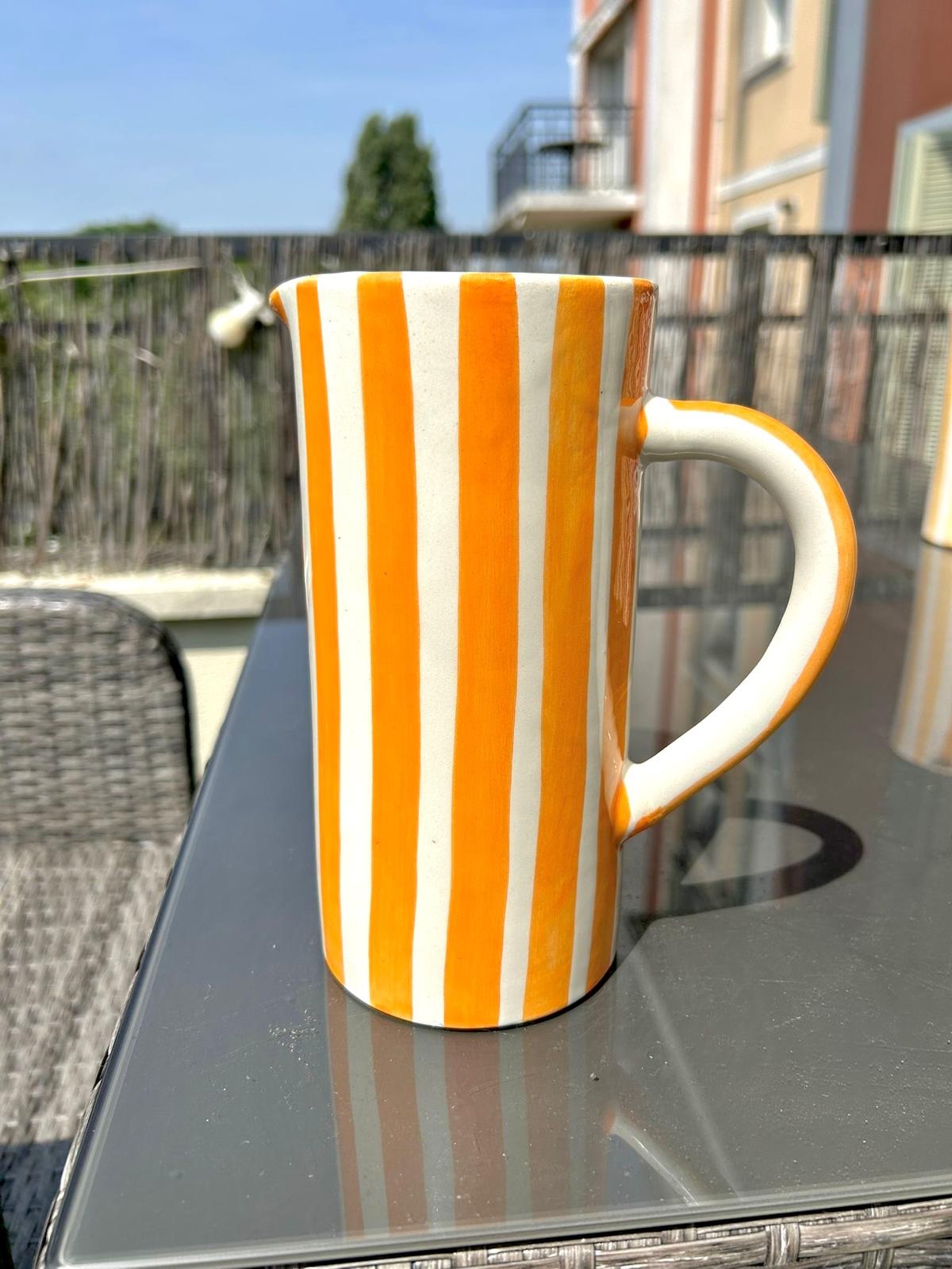 CRUCHE CARAFE PICHET BLANCHE RAYÉ ORANGE