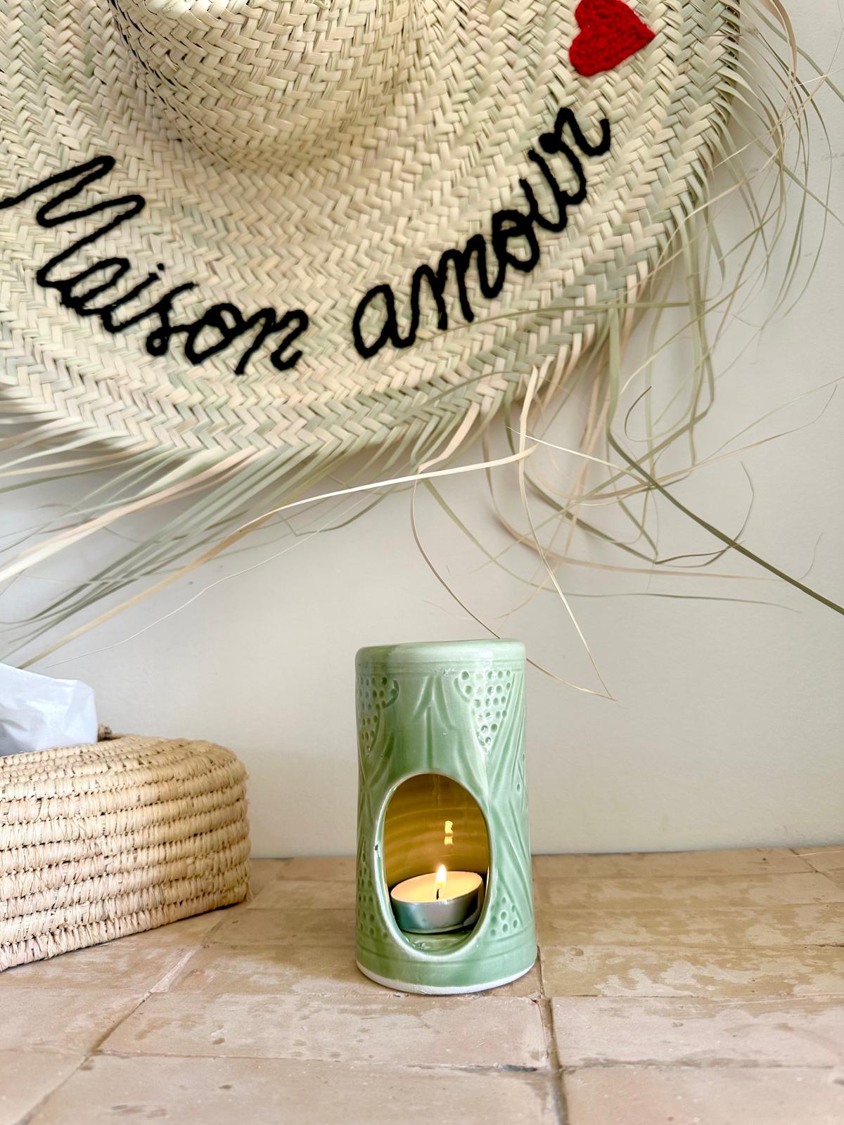 Découvrez notre diffuseur marocain à empreintes vert, fait main, pour créer une atmosphère apaisante et élégante chez vous !