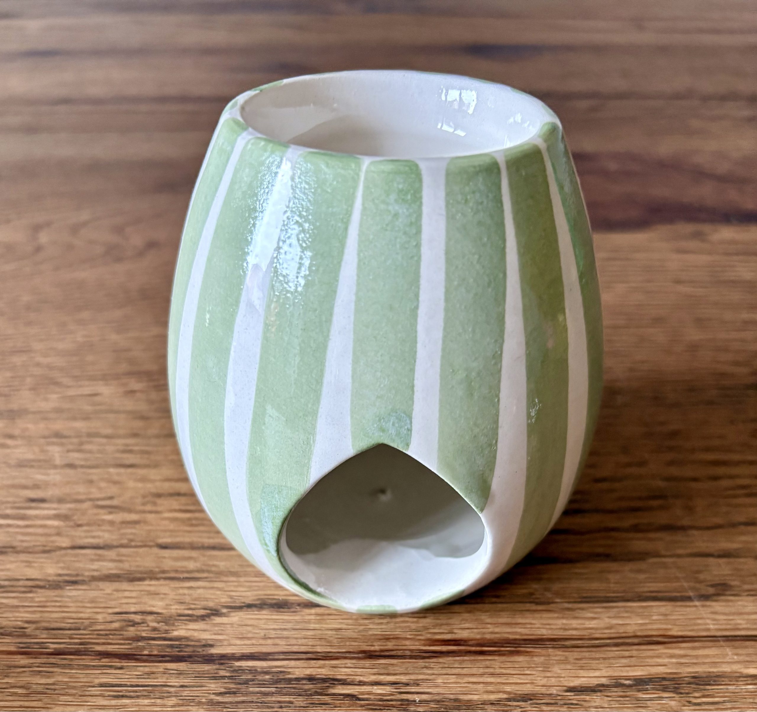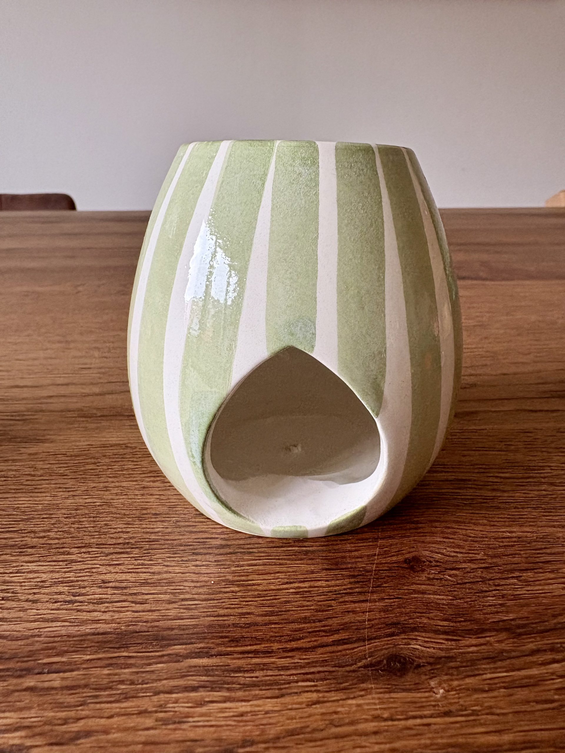Découvrez notre diffuseur marocain rayé vert, fait main, pour créer une atmosphère apaisante et élégante chez vous !