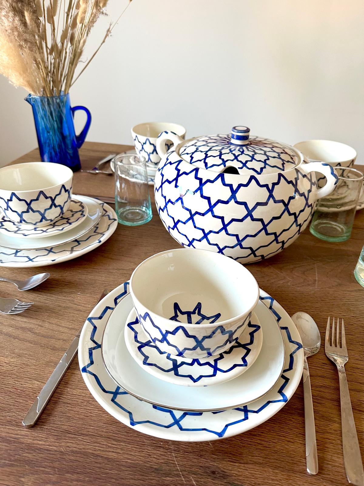 Apportez une touche d’authenticité et de raffinement à votre table avec notre lot soupière, bols et dessous de bols en céramique faite à la main. Son design intemporel, alliant la pureté du blanc à de délicats motifs bleus, s’inspire du savoir-faire traditionnel. Chaque pièce est unique, façonnée avec soin par des artisans passionnés qui perpétuent un art ancestral.