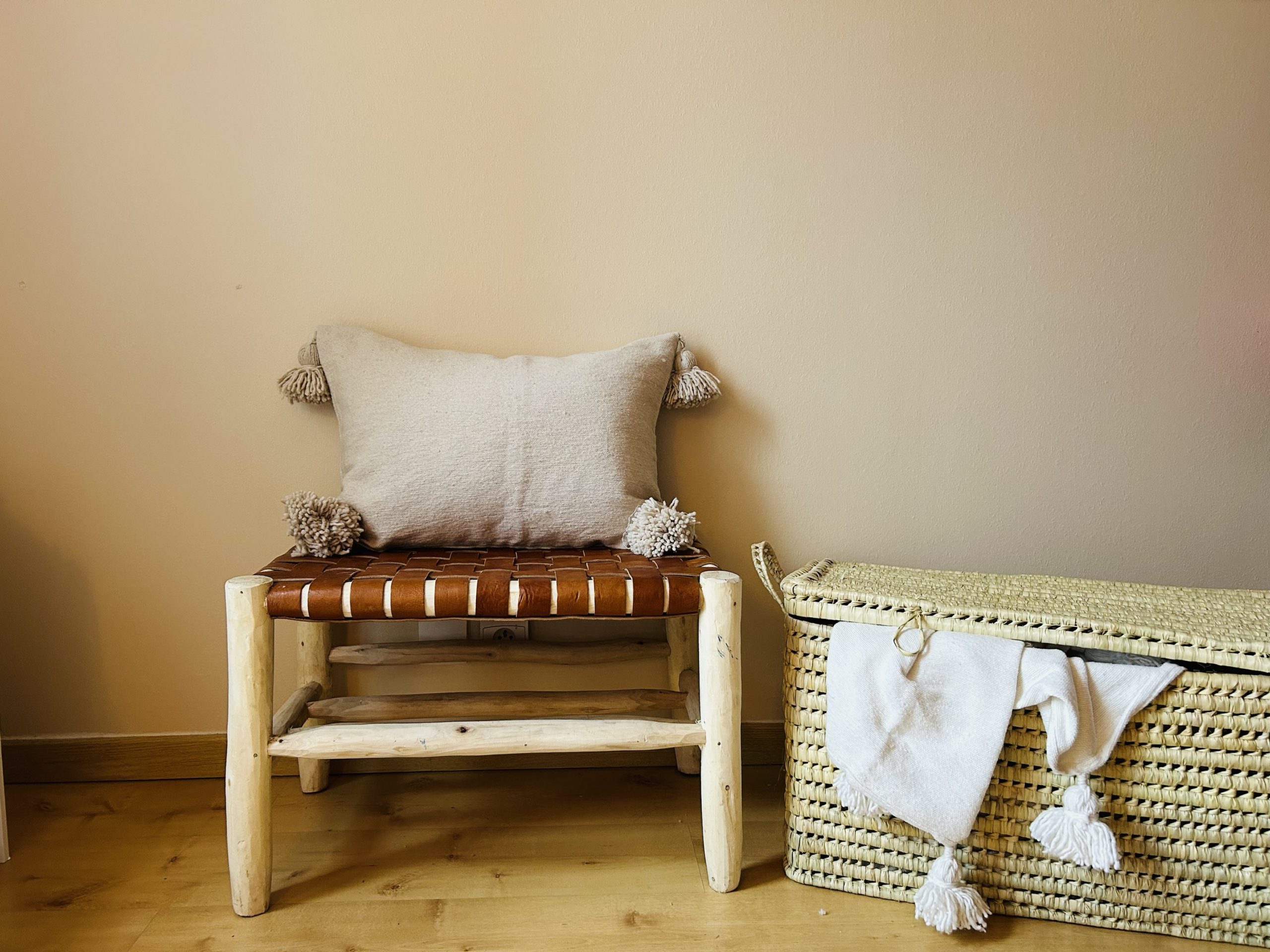 PANIER DE RANGEMENT MAROCAINE PAILLE ET LAINE 20CM