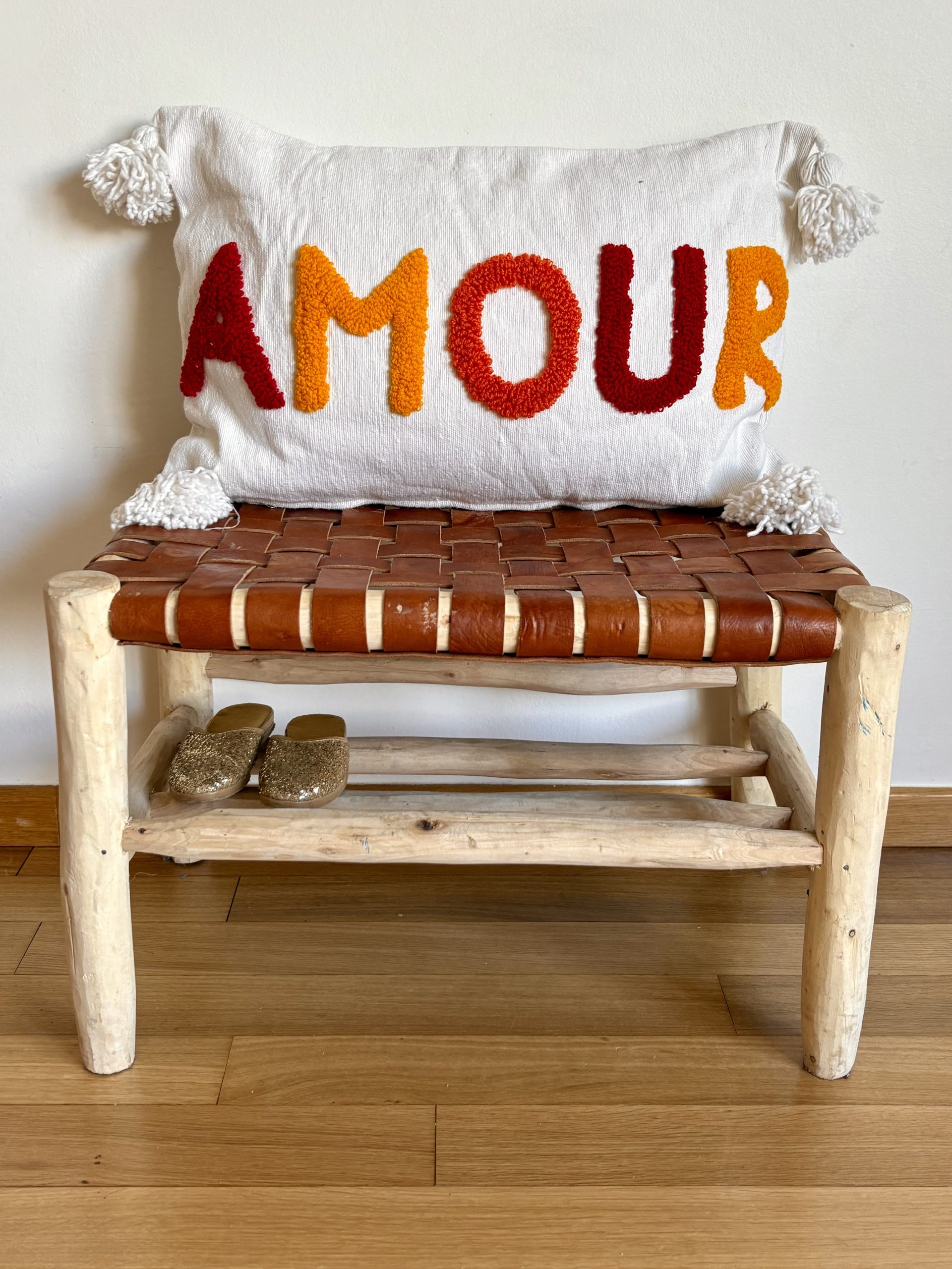 HOUSSE DE COUSSIN MAROCAIN 60×40 EN COTON « AMOUR » JAUNE