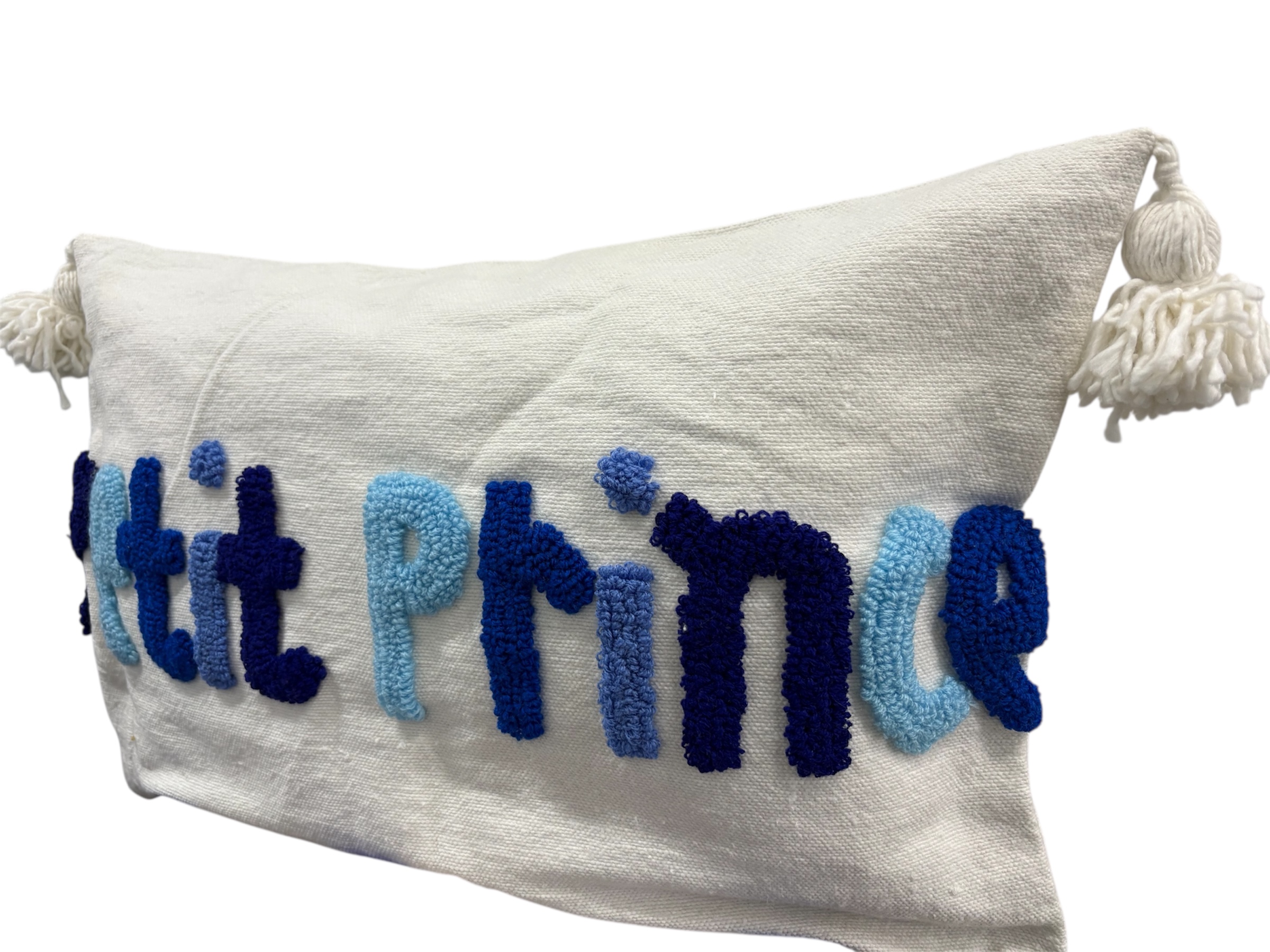 HOUSSE DE COUSSIN MAROCAIN 60×40 EN COTON « PETIT PRINCE » BLEU