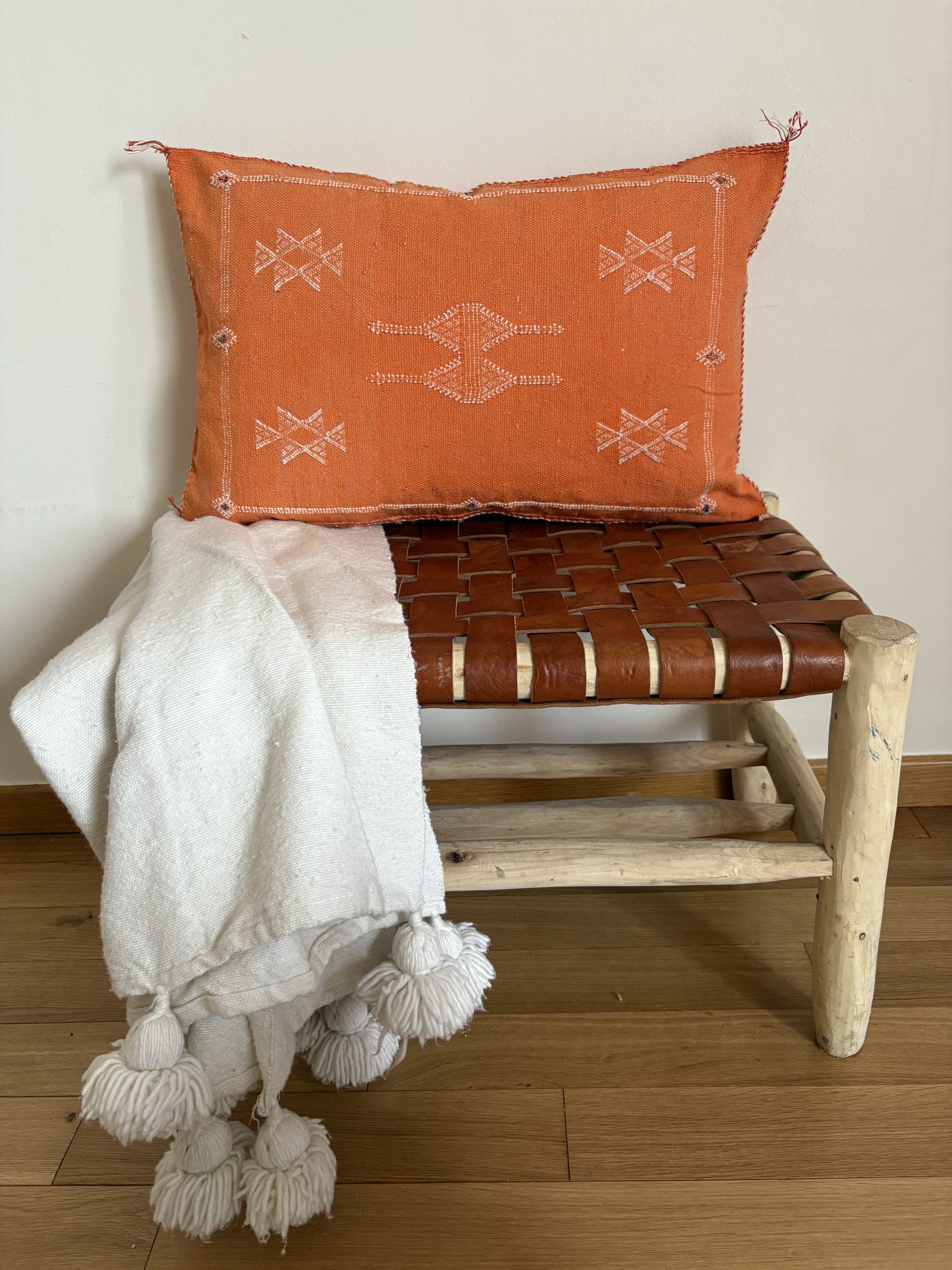 Apportez une touche d’authenticité à votre intérieur avec notre housse de coussin marocain sabra orange, une pièce unique issue du savoir-faire traditionnel des artisans du Maroc. Tissée à la main selon une technique ancestrale, chaque housse est confectionnée en soie végétale, aussi appelée sabra, extraite de la soie d’agave ou de l’aloe vera. Cette matière naturelle et résistante offre un toucher doux ainsi qu’un éclat raffiné qui sublime votre décoration intérieure.