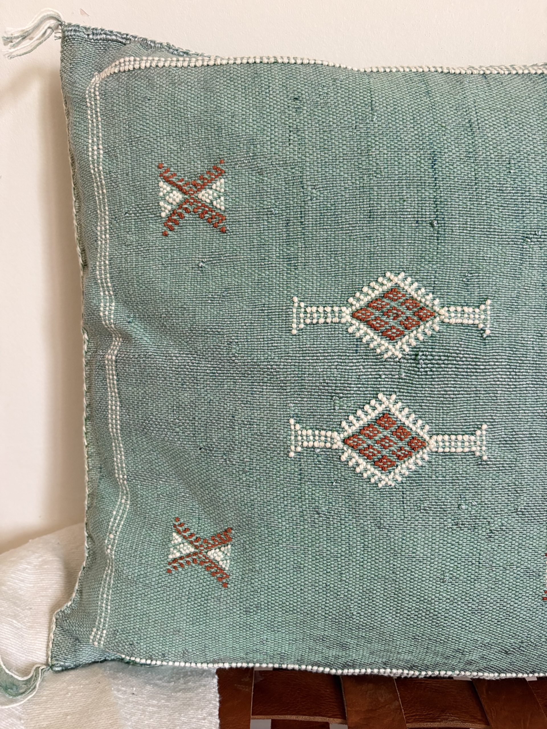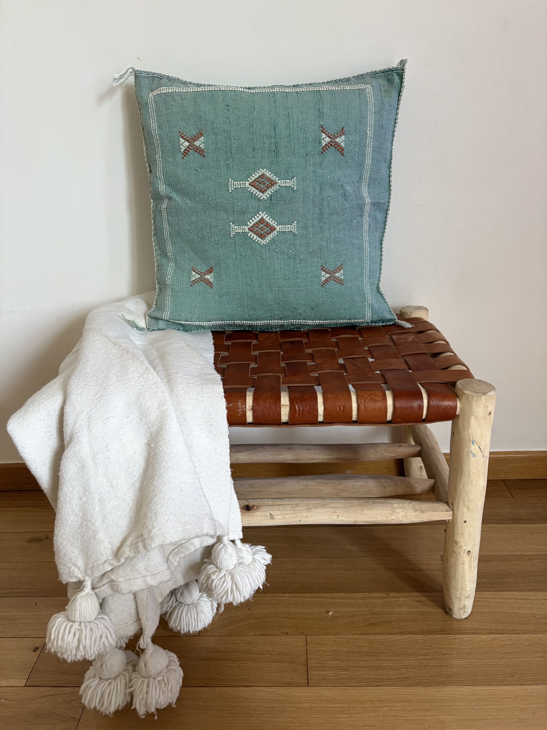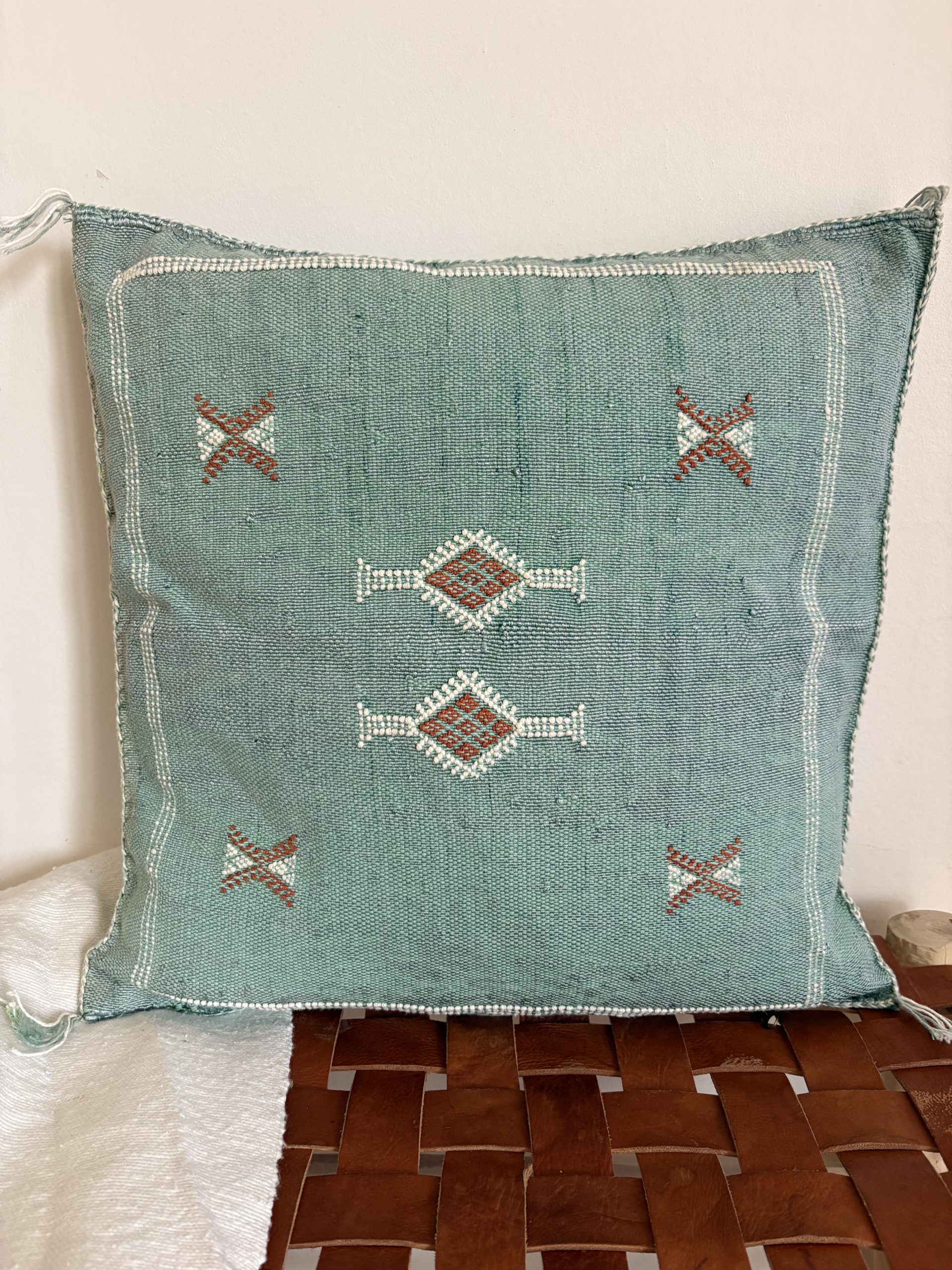 Apportez une touche d’authenticité à votre intérieur avec notre housse de coussin marocain sabra vert, une pièce unique issue du savoir-faire traditionnel des artisans du Maroc. Tissée à la main selon une technique ancestrale, chaque housse est confectionnée en soie végétale, aussi appelée sabra, extraite de la soie d’agave ou de l’aloe vera. Cette matière naturelle et résistante offre un toucher doux ainsi qu’un éclat raffiné qui sublime votre décoration intérieure.