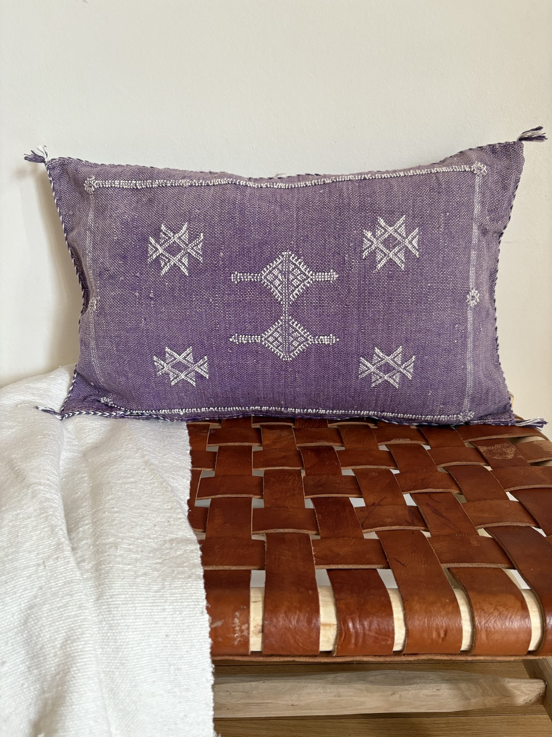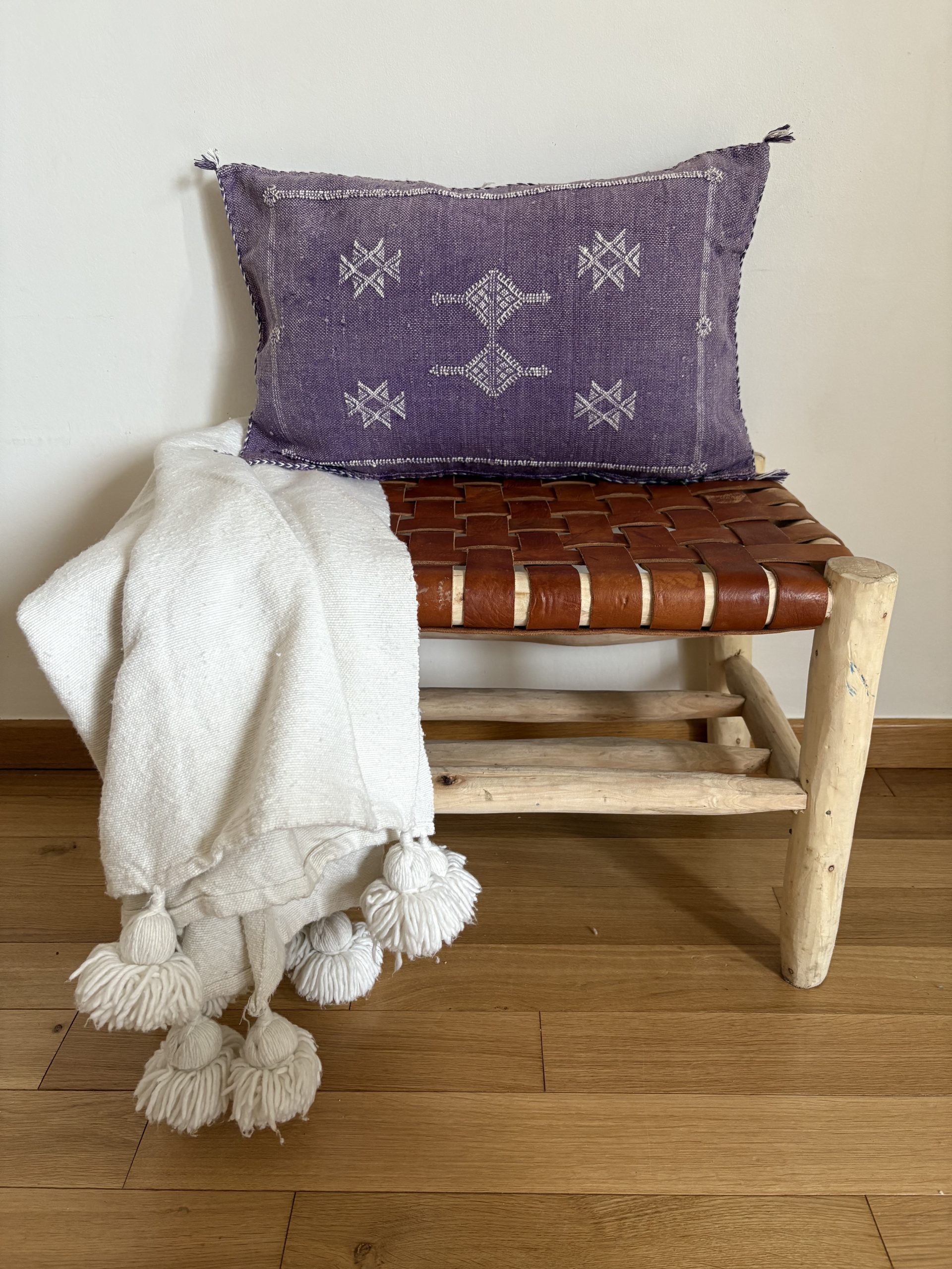 Apportez une touche d’authenticité à votre intérieur avec notre housse de coussin marocain sabra violet, une pièce unique issue du savoir-faire traditionnel des artisans du Maroc. Tissée à la main selon une technique ancestrale, chaque housse est confectionnée en soie végétale, aussi appelée sabra, extraite de la soie d’agave ou de l’aloe vera. Cette matière naturelle et résistante offre un toucher doux ainsi qu’un éclat raffiné qui sublime votre décoration intérieure.