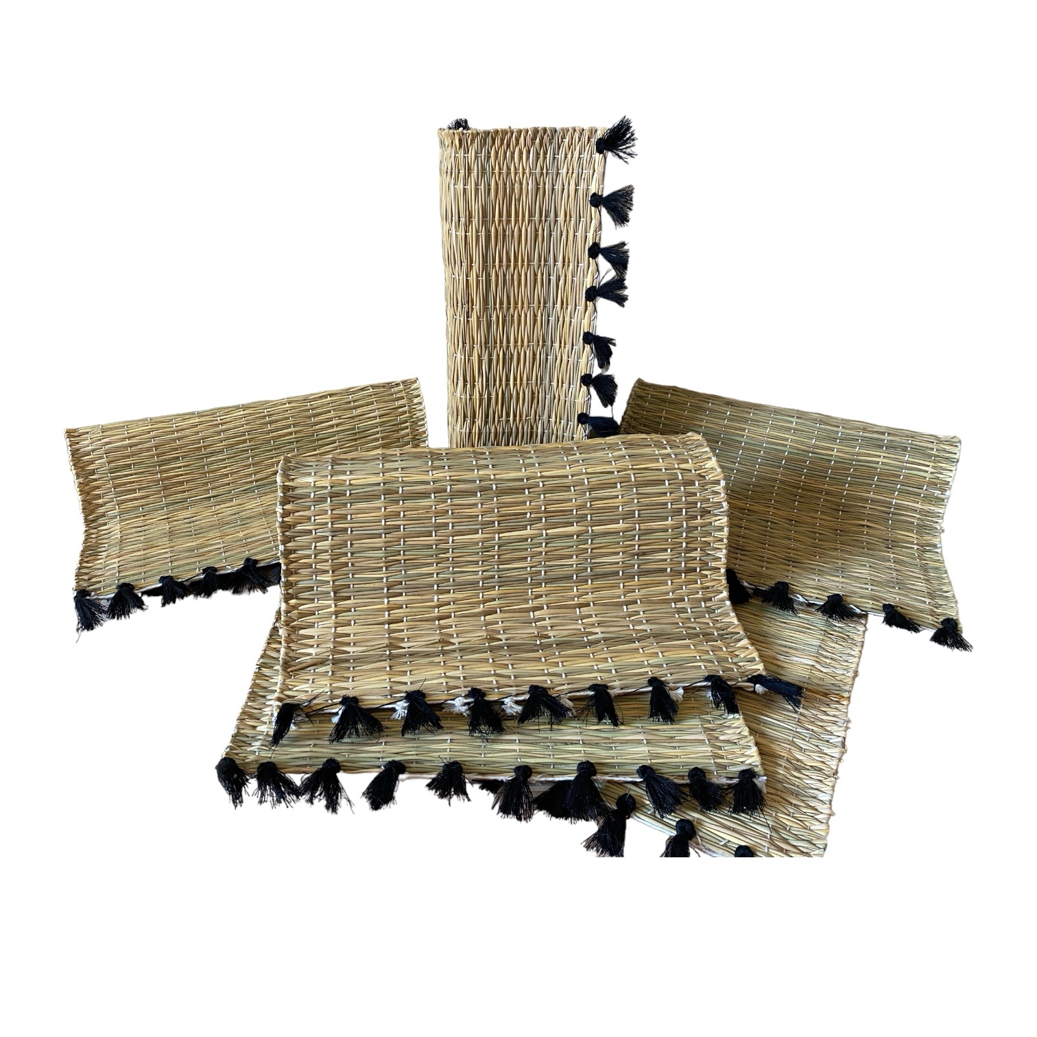 LOT DE 6 SETS DE TABLE À POMPONS NOIR MODÈLE ASILAH