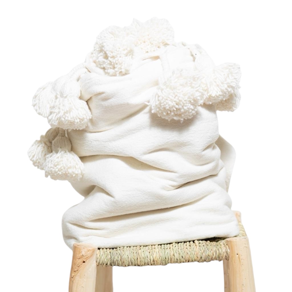 PLAID JETÉ DE LIT À POMPONS BLANC MODÈLE NAÏMA