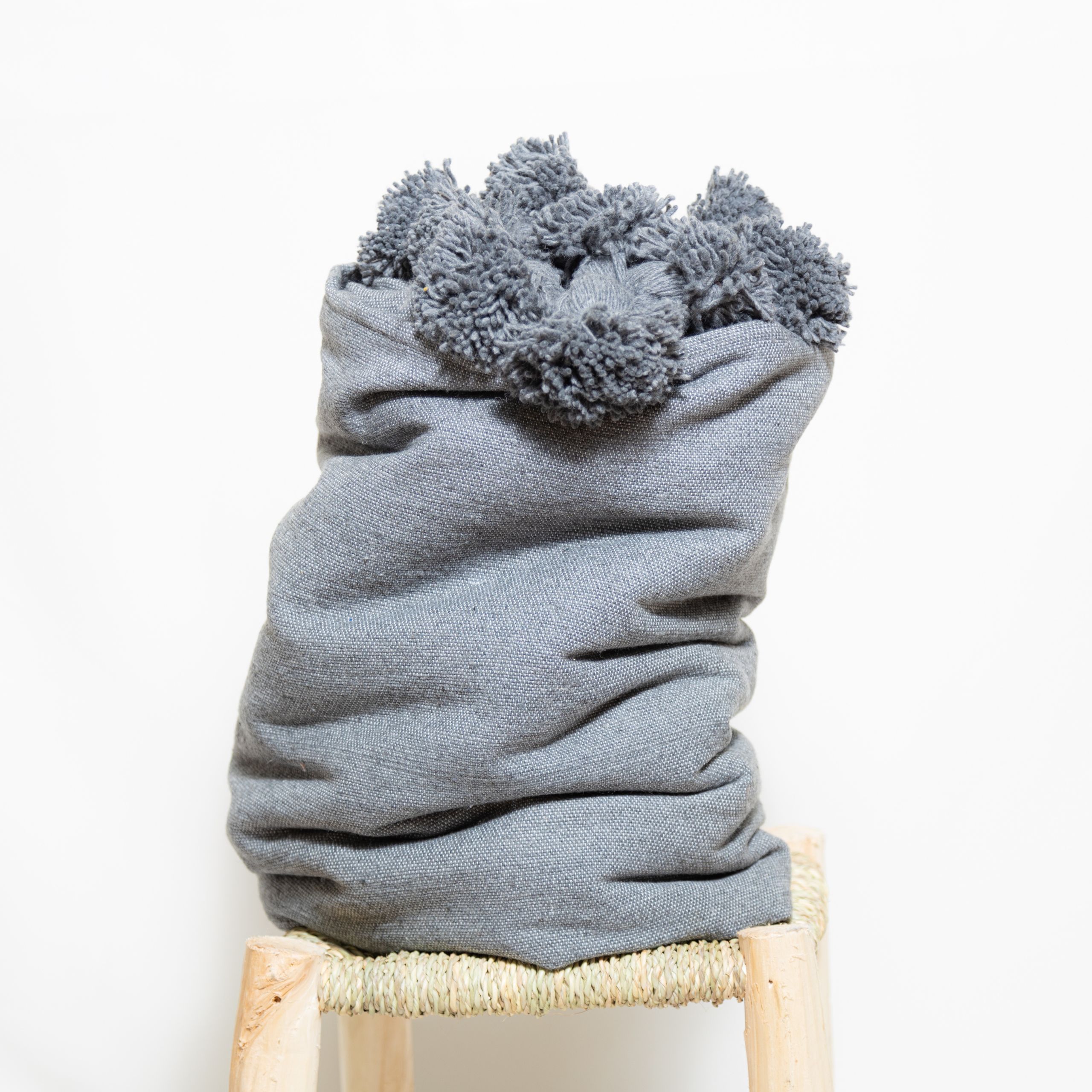 PLAID JETÉ DE LIT À POMPONS GRIS FONCÉ MODÈLE NAÏMA