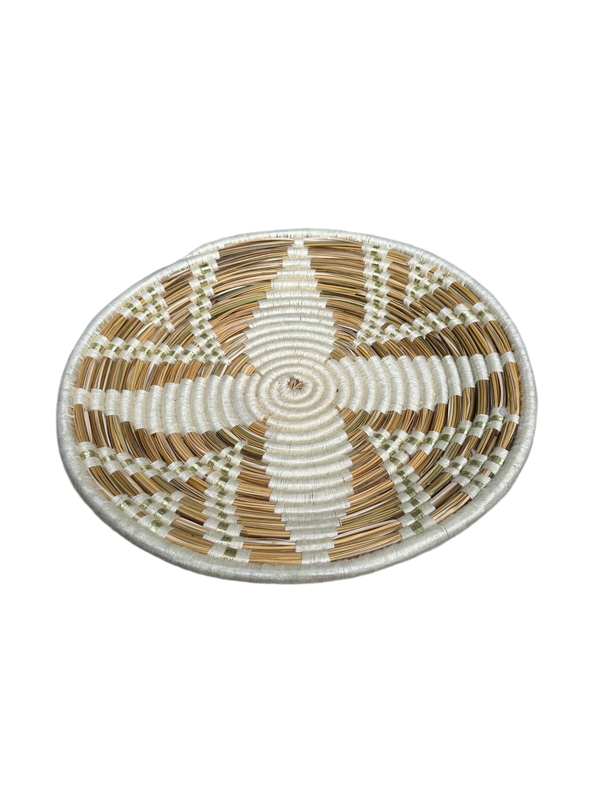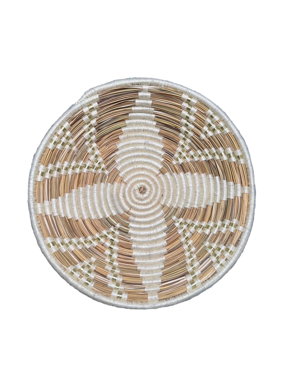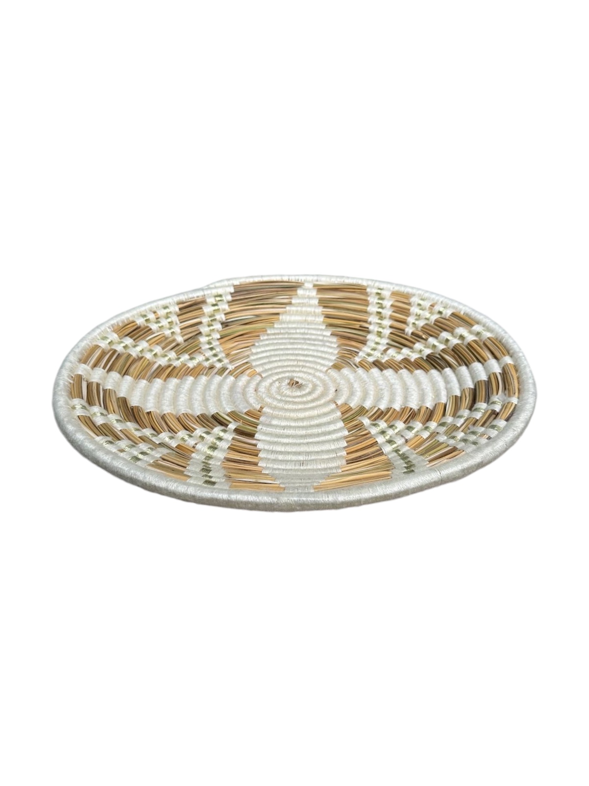 PLATEAU BERBÈRE ROND MAROCAIN EN LAINE BLANC ET FEUILLES DE PALMIER MODÈLE TAZA
