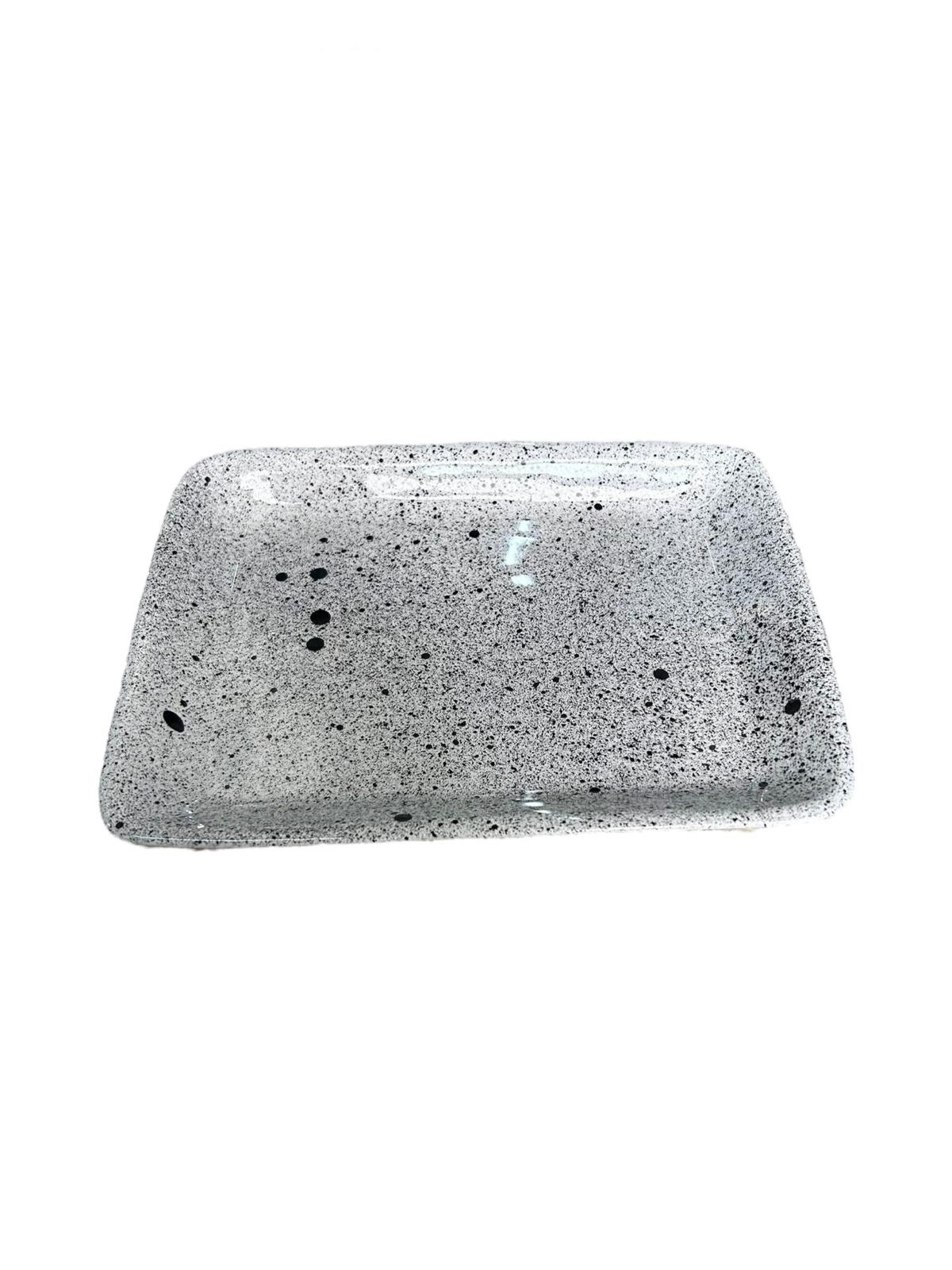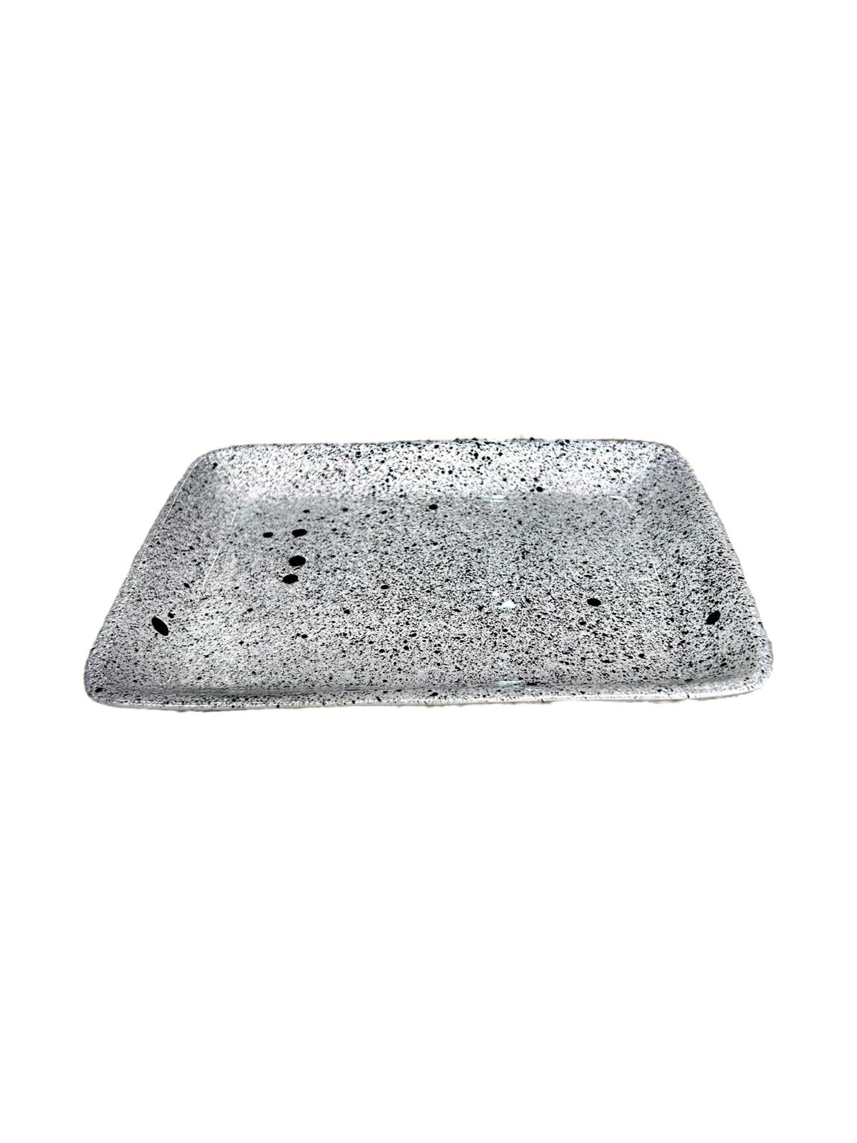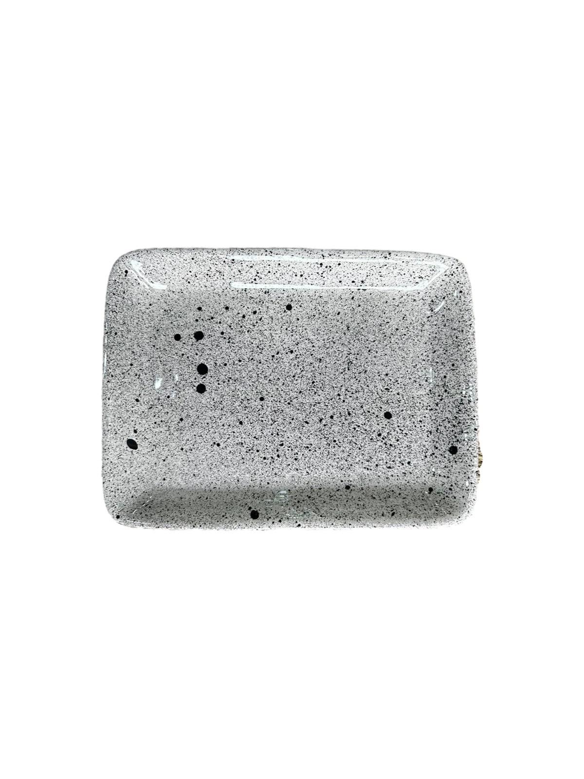 PLATEAU CARRÉ BLANC MOUCHETÉ NOIR EN CÉRAMIQUE