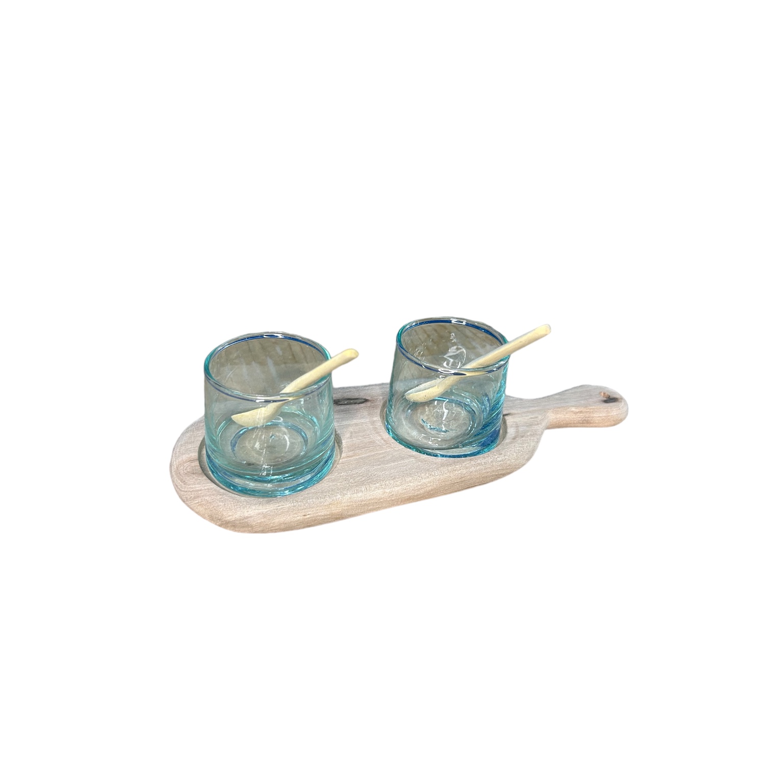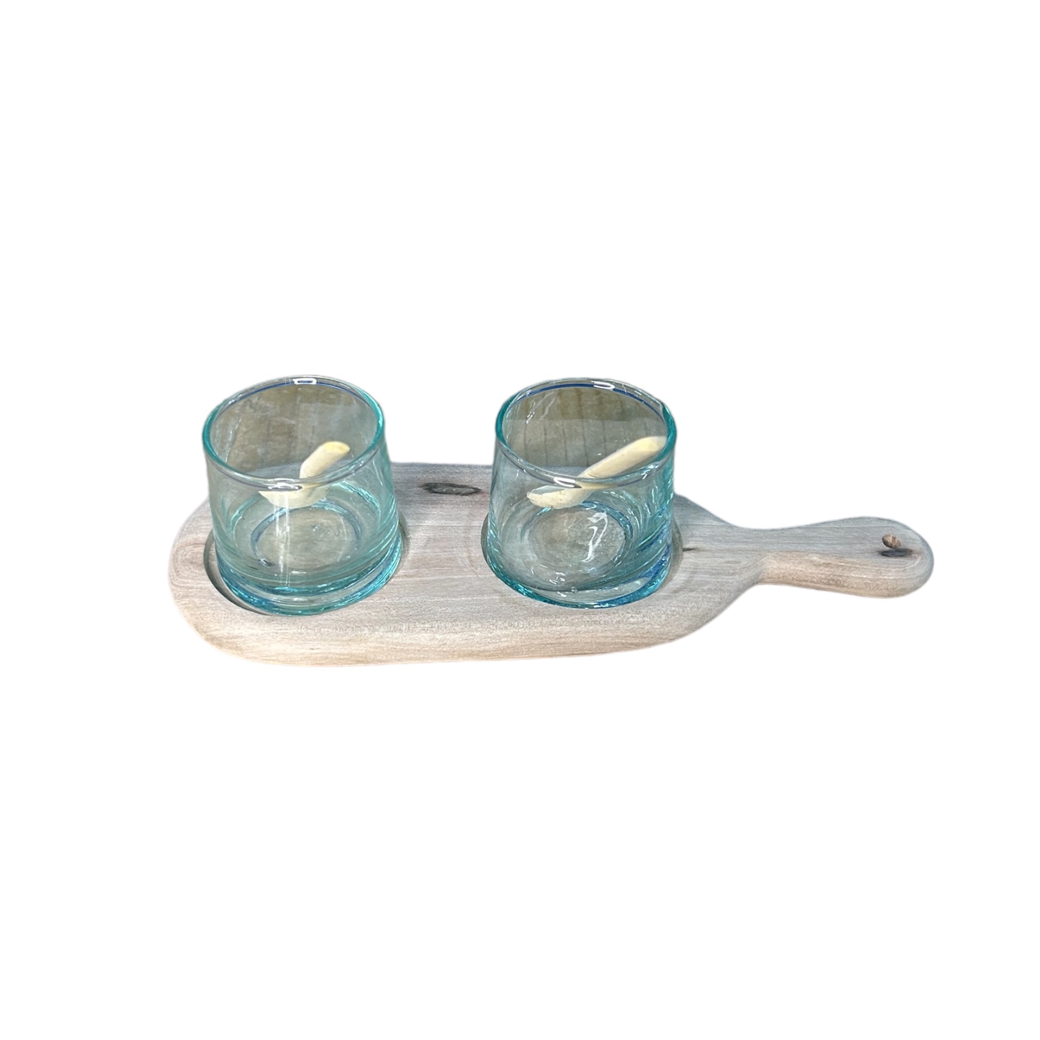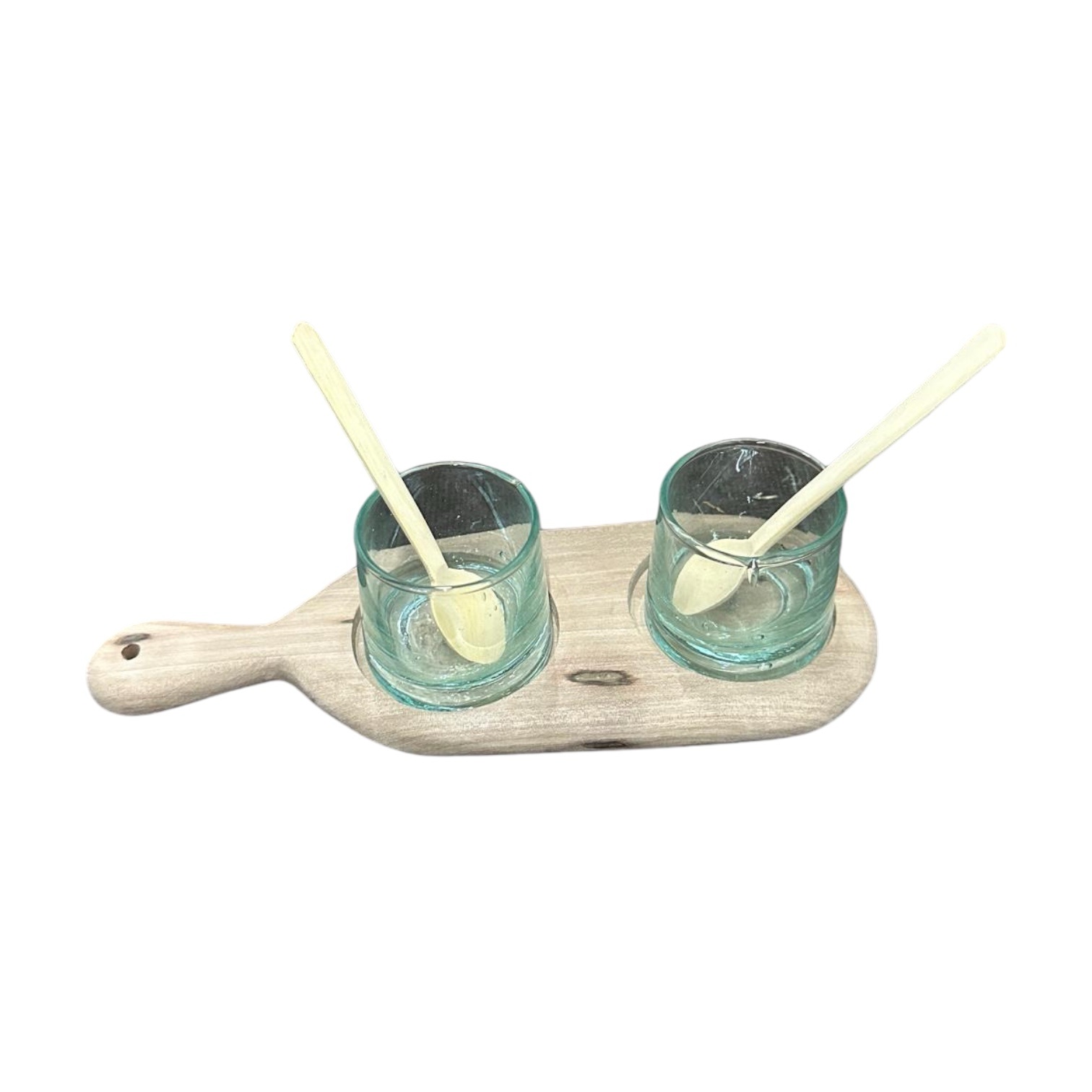 Dimensions (cm) : Plateau en bois L23 x l8 / Verre H5 x ⌀5