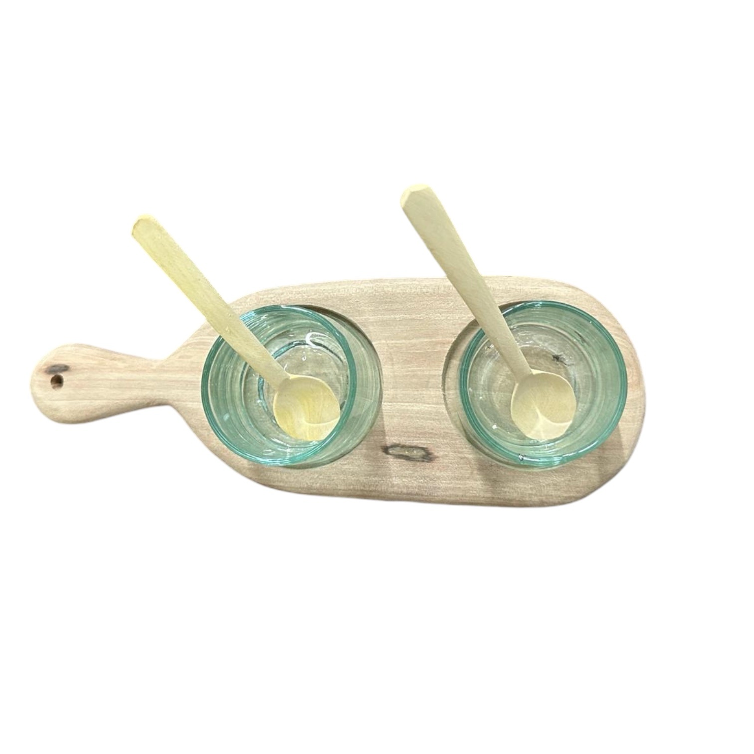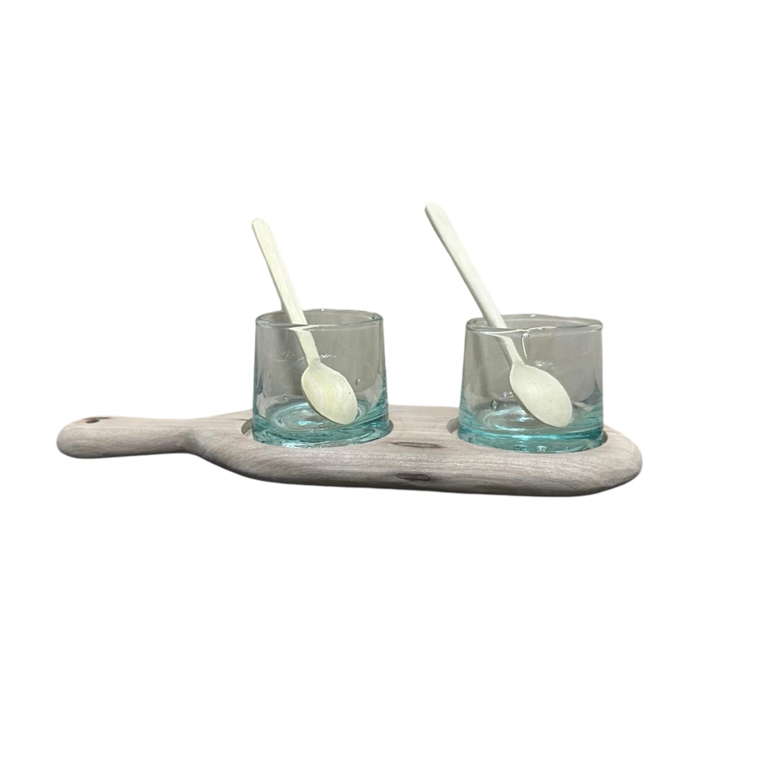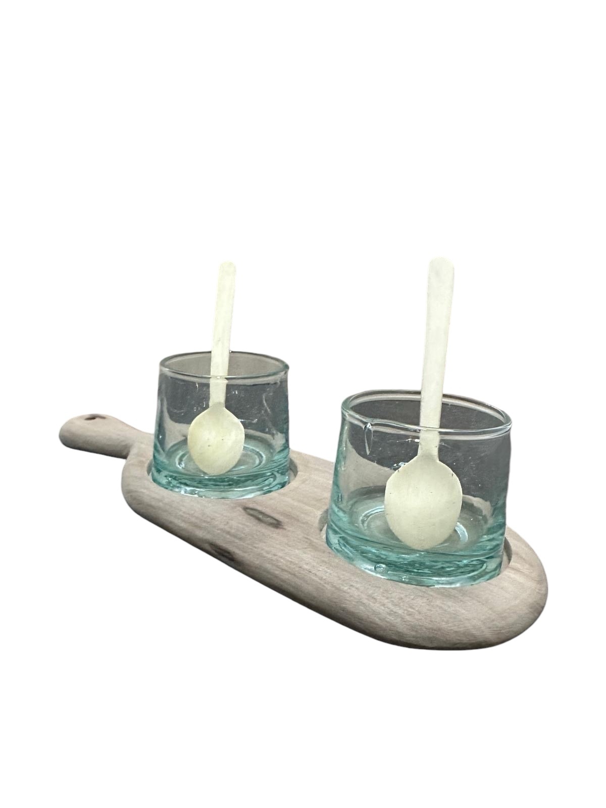 Dimensions (cm) : Plateau en bois L23 x l8 / Verre H5 x ⌀5
