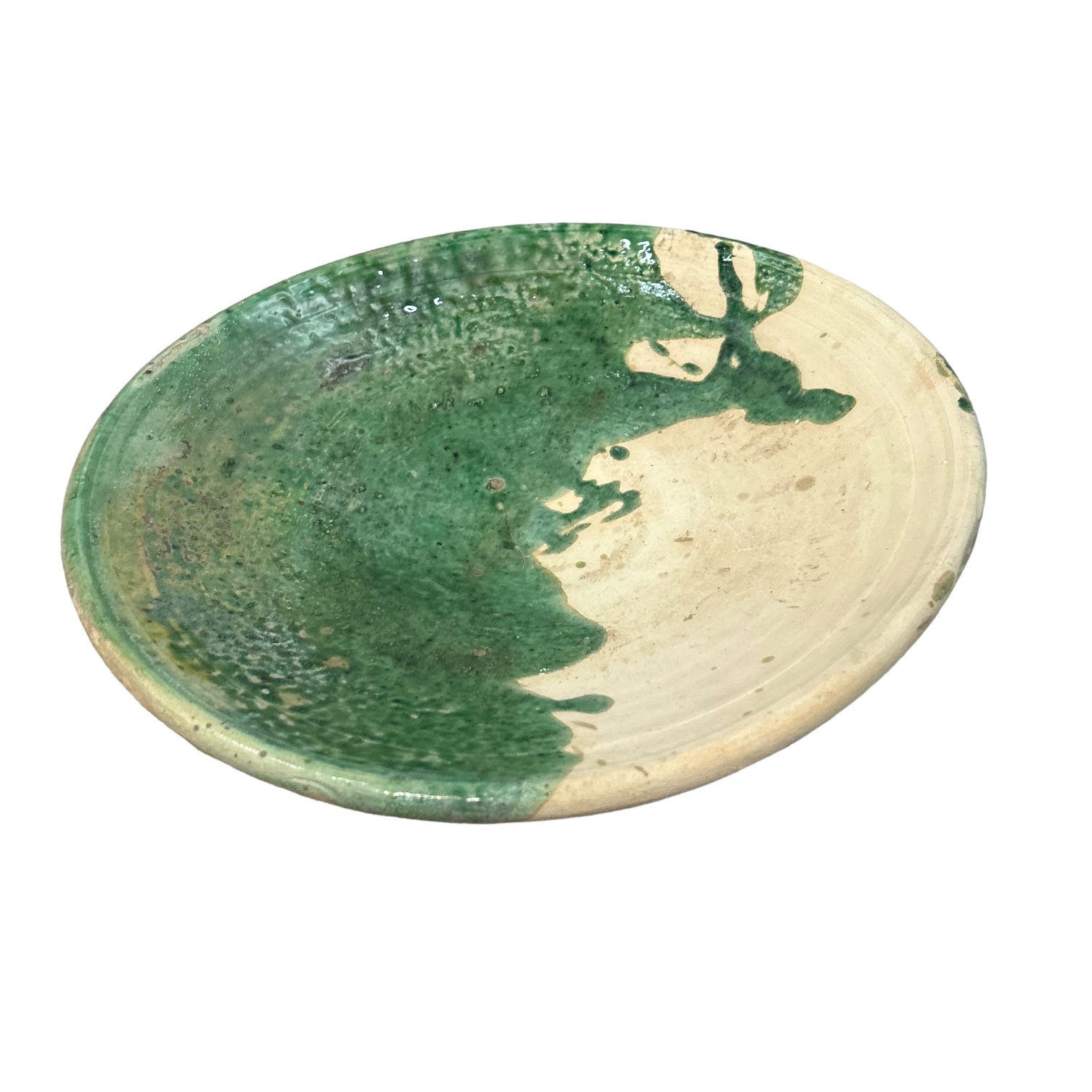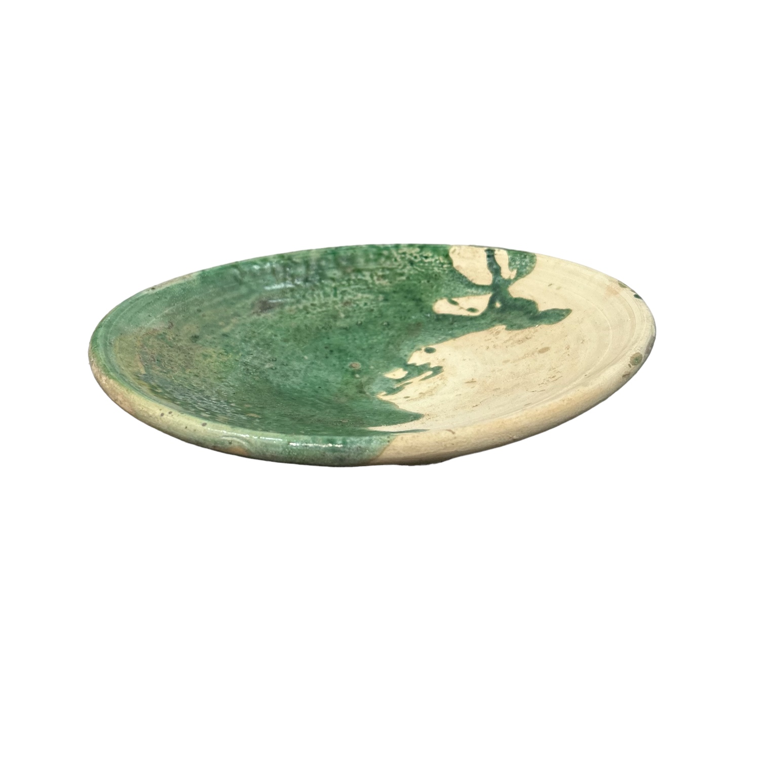 POTERIE TAMEGROUTE – ASSIETTE MAROCAINE BI COULEUR VERT