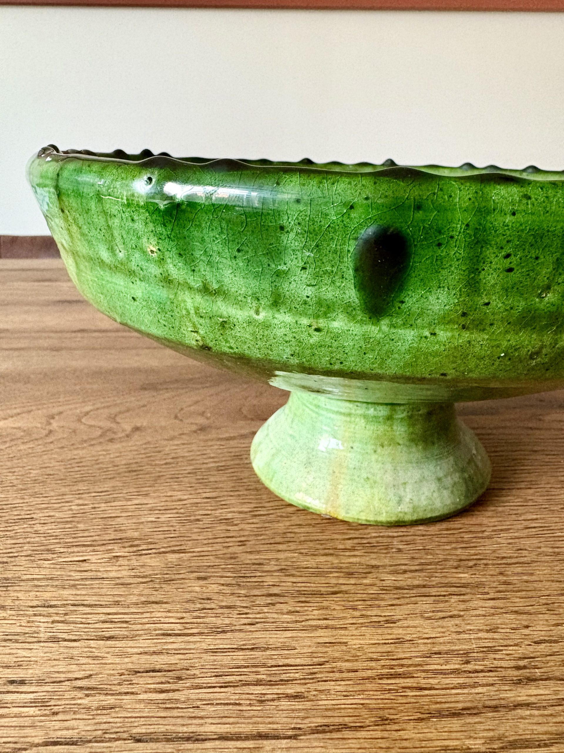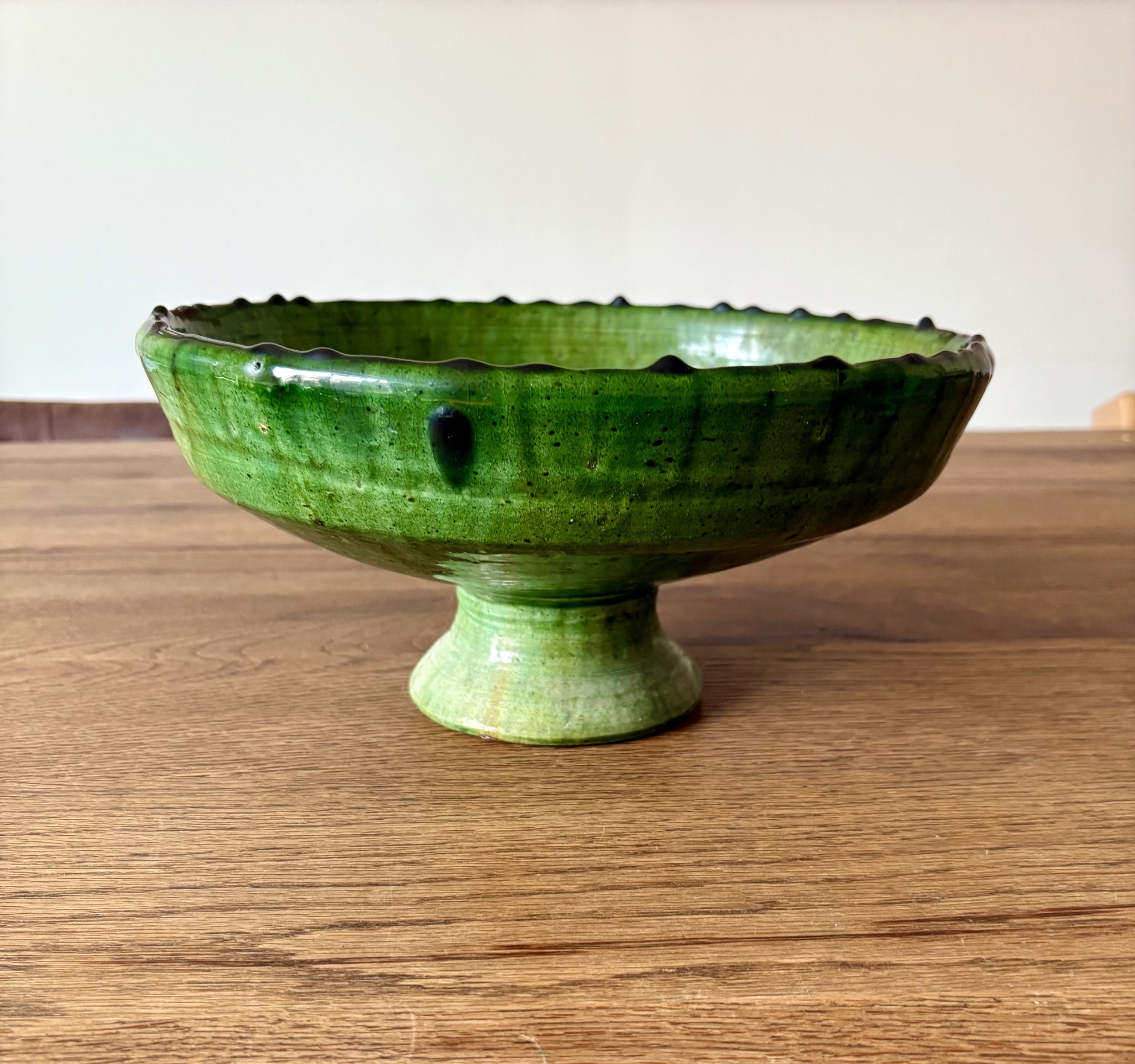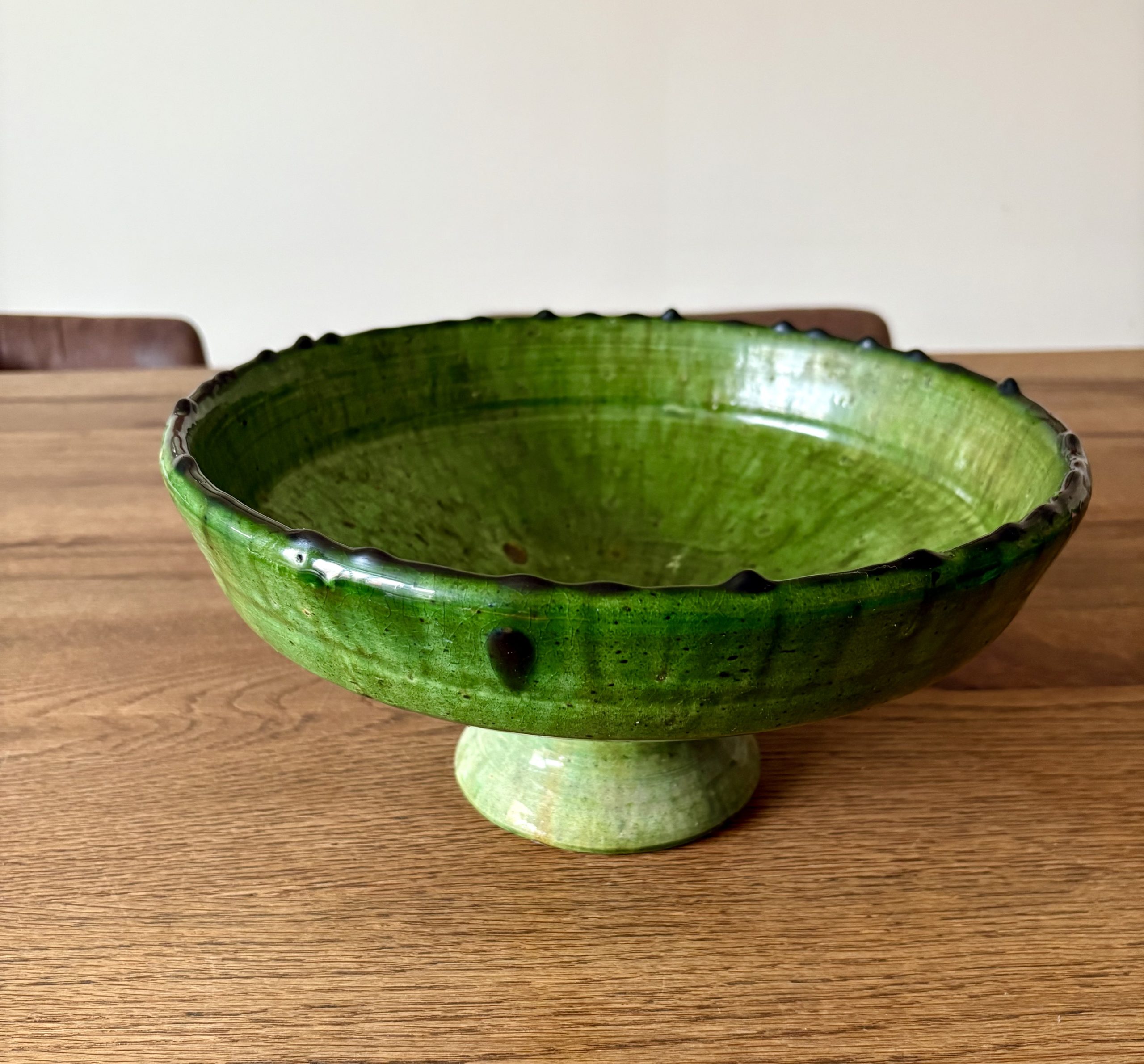 Découvrez la poterie Tamegroute coupe sur pied marocain, un art ancestral du sud marocain qui allie authenticité et élégance. Chaque création est façonnée à la main par des artisans passionnés, perpétuant un savoir-faire transmis de génération en génération.
