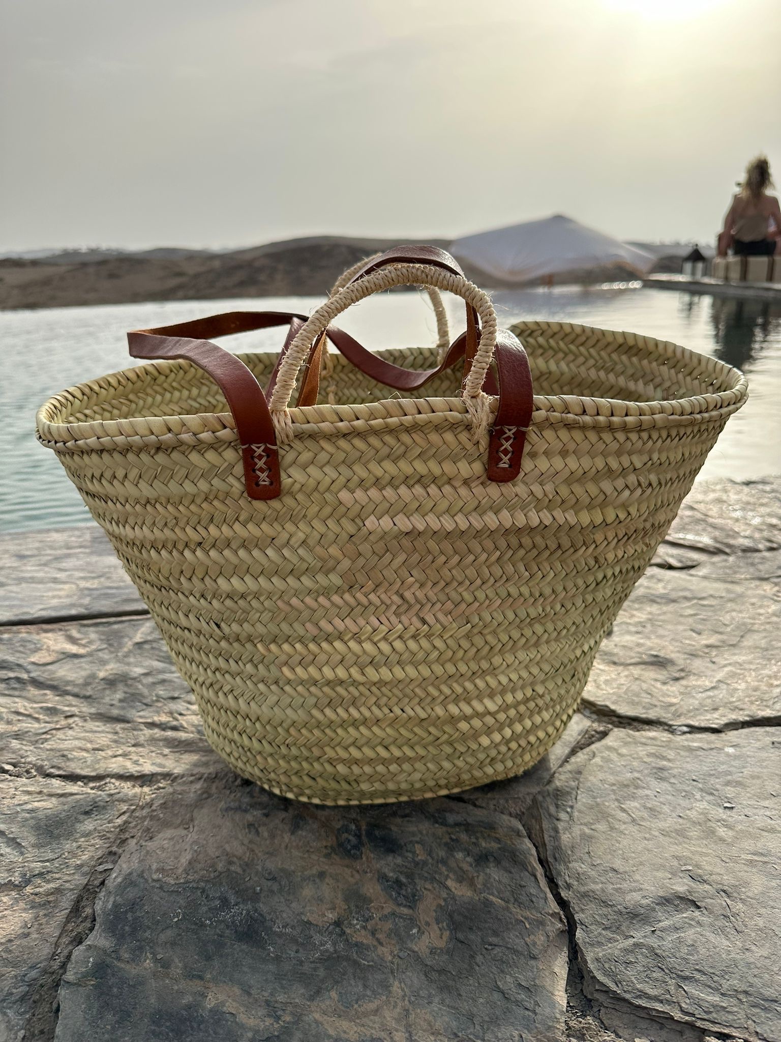 Laissez-vous tenter par ce modèle coup de cœur sélectionné par IB. Le sac Marrakech accessoirisera vos sorties estivales (sac de plage, de sorties estivales). Sa forme avec ses anses en cuir sera votre compagnon intemporel pour les beaux jours. Ses anses vous permettra de le porter soit à la main soit sur l’épaule selon vos envies.