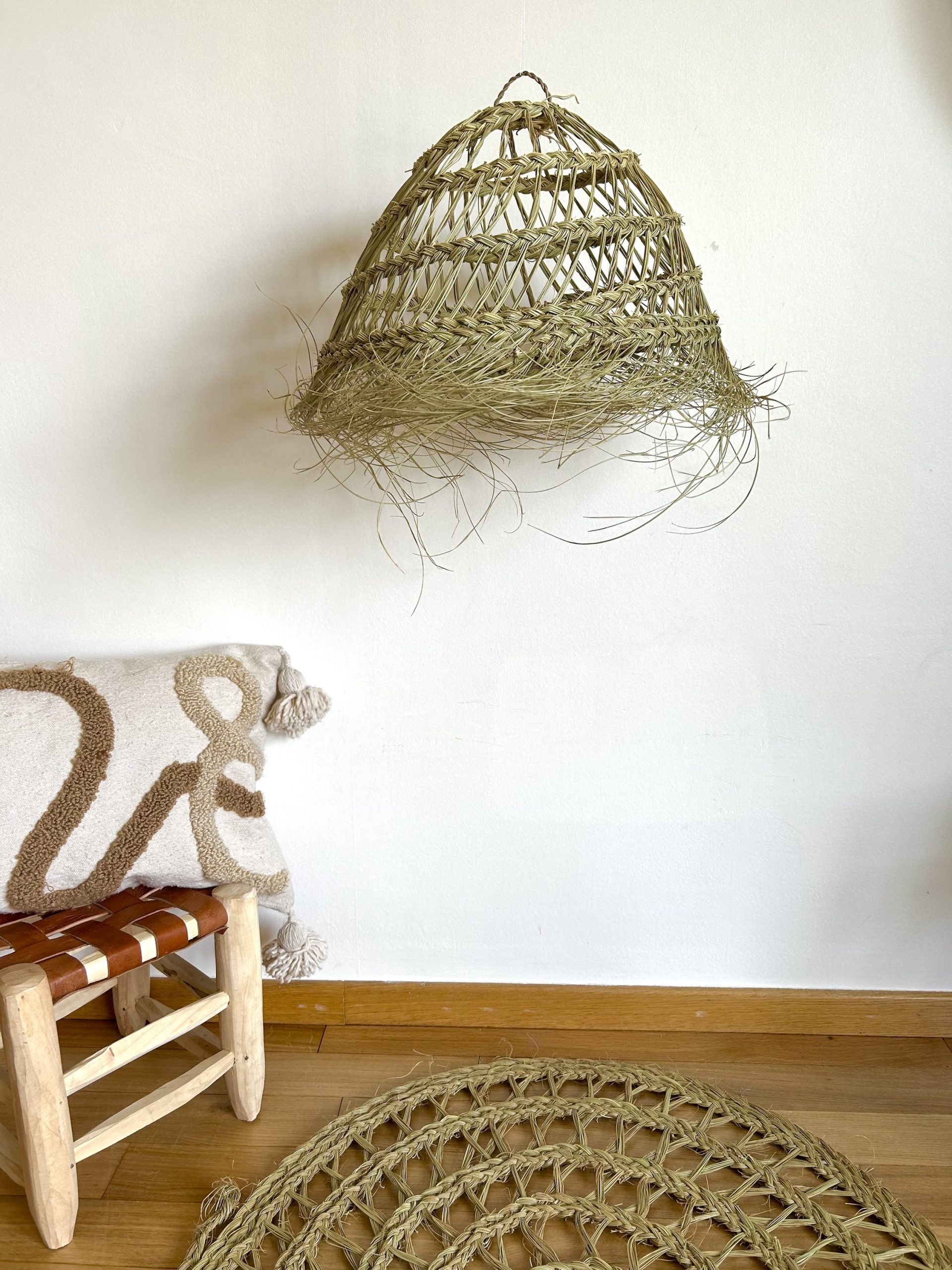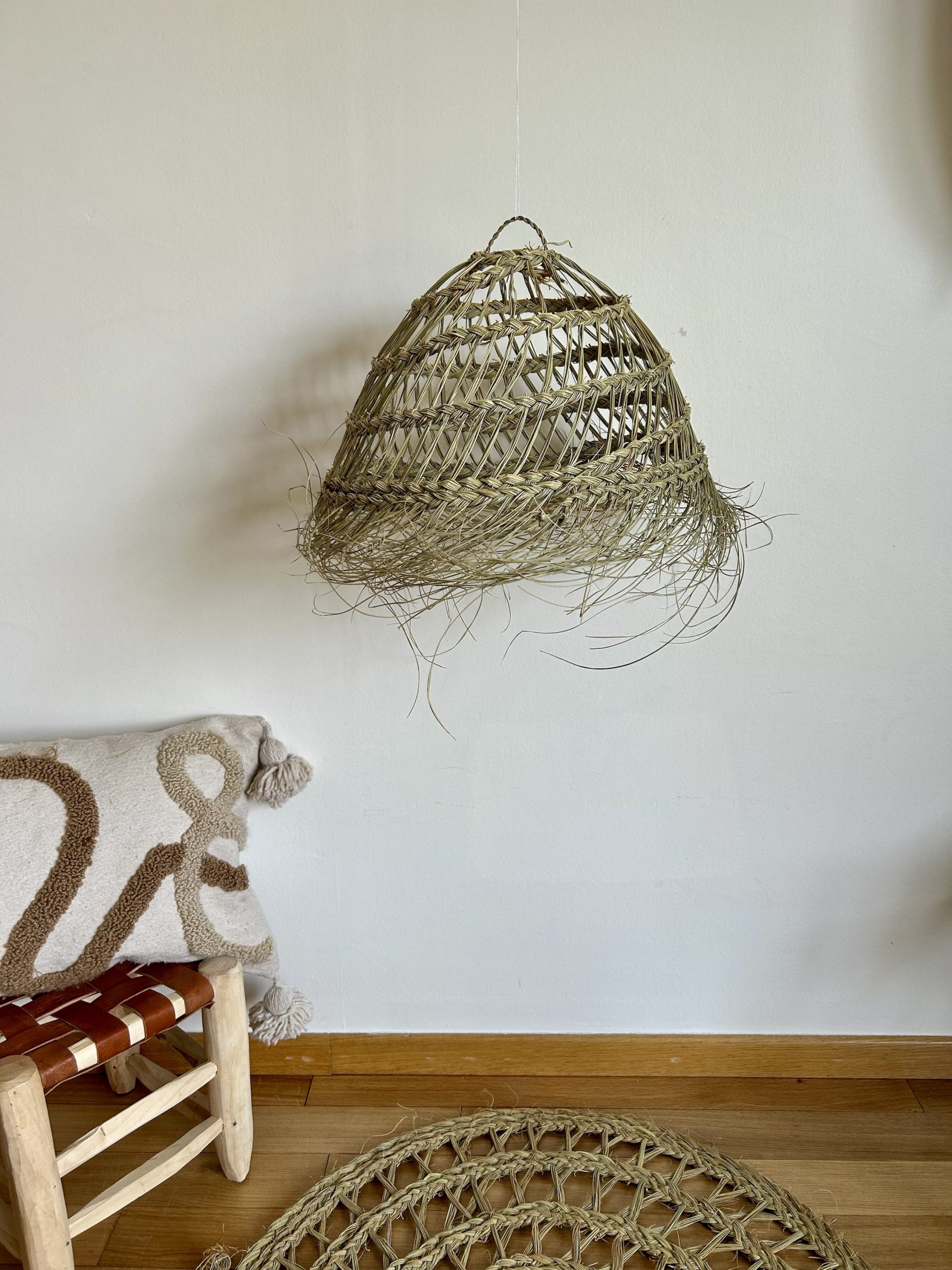Cette magnifique suspension en feuille de palmiers forme demi bol s’intégrera à merveille dans votre intérieur. Au-dessus de la table à manger, dans votre chambre ou en accumulation dans le salon, ses cheveux apportent un charme naturel à votre pièce. La forme demi bol permet de laisser passer la lumière.