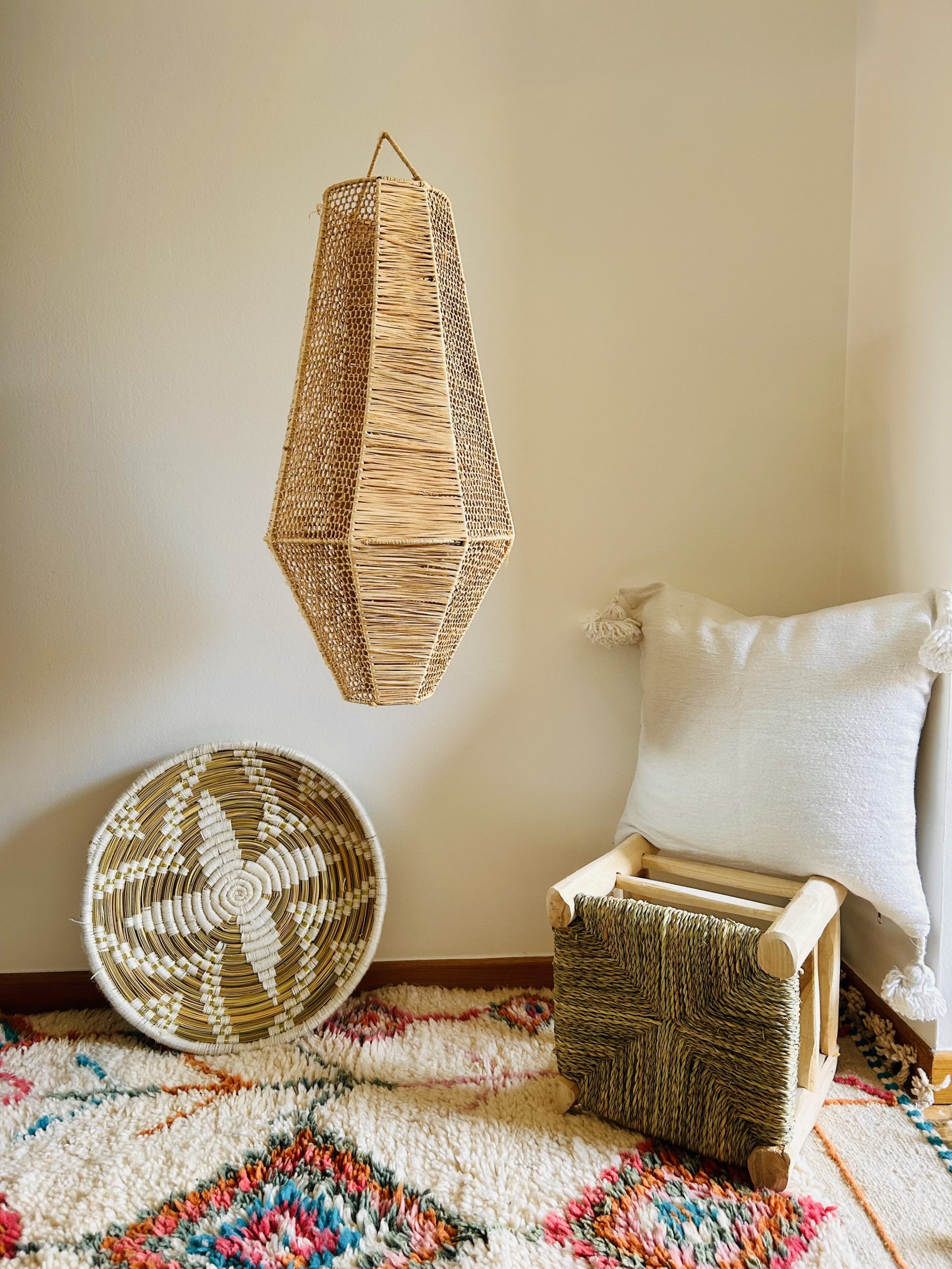 Apportez charme et authenticité à votre intérieur avec la suspension marocaine en dentelle de raphia, une création issue de l’artisanat marocain. Réalisée à la main par des artisans du Maroc, chaque pièce est une œuvre artisanale unique qui incarne le savoir-faire ancestral et le design marocain authentique.