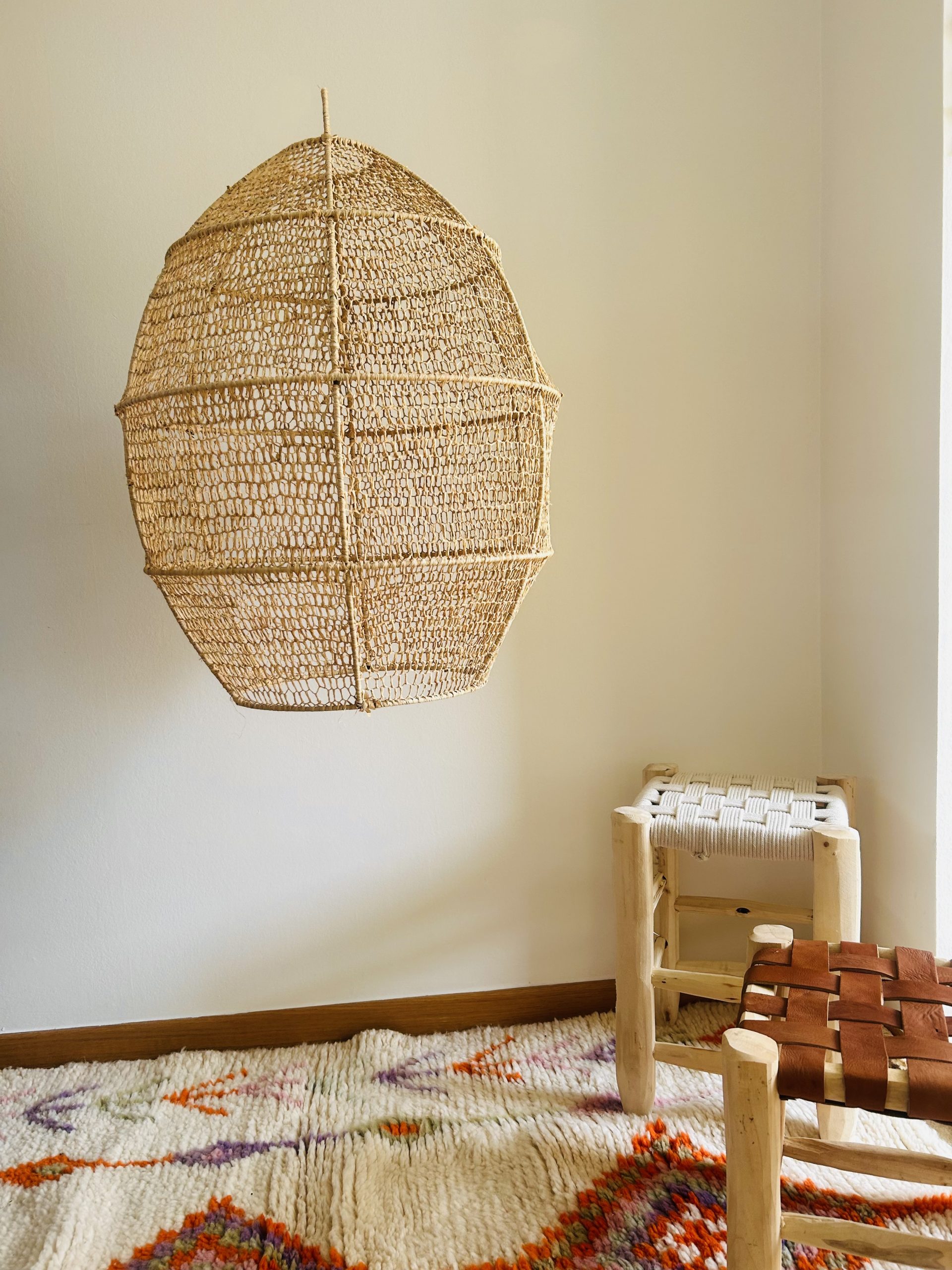 Créez une ambiance chaleureuse et authentique avec la suspension marocaine en dentelle de raphia, une pièce d’artisanat marocain au design artisanal et à la fabrication authentique. Réalisée à la main par des artisans du Maroc, chaque pièce unique révèle un art de vivre oriental empreint de tradition et de modernité.