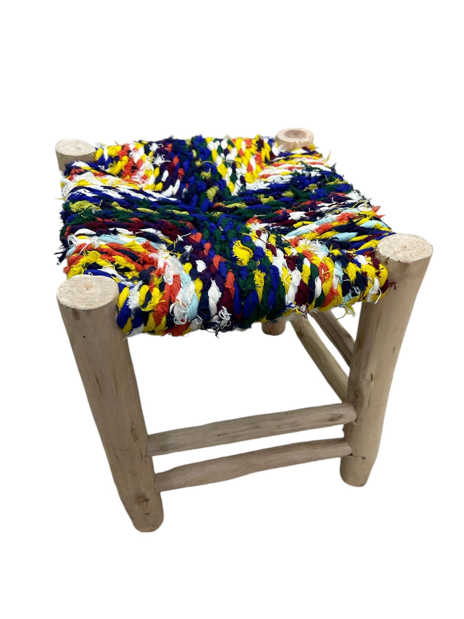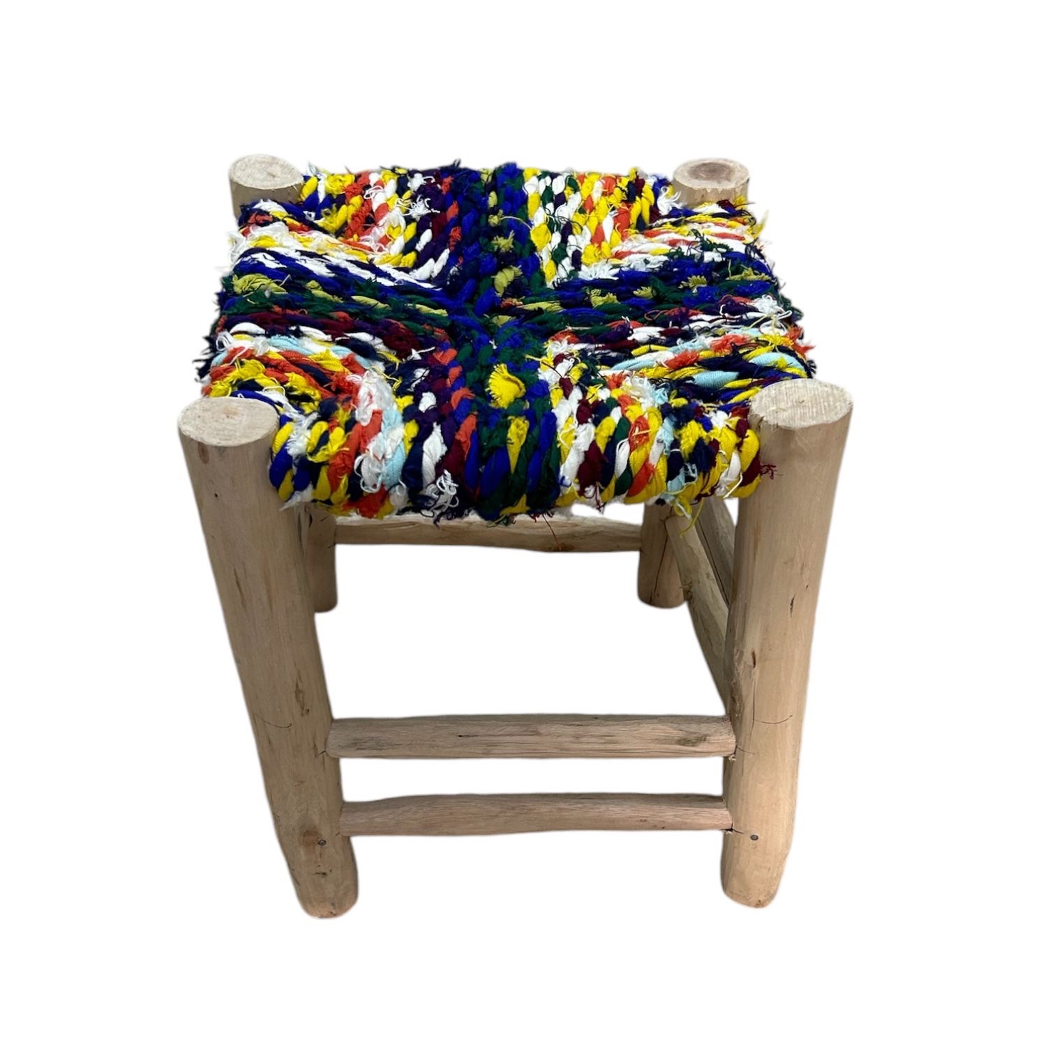 TABOURET BOUCHEROUITE ET BOIS NATUREL 30x30CM MODÈLE AKNOUL