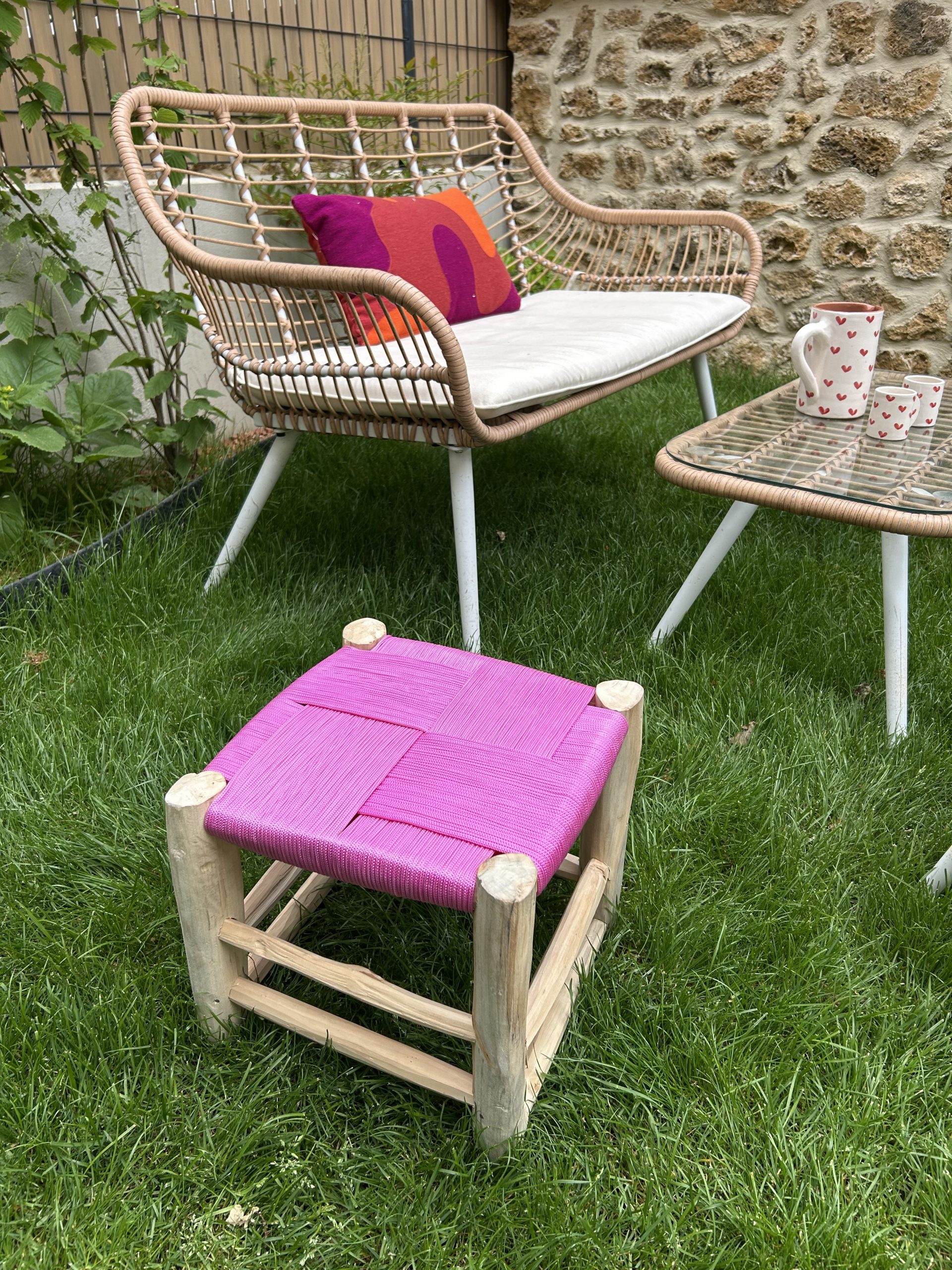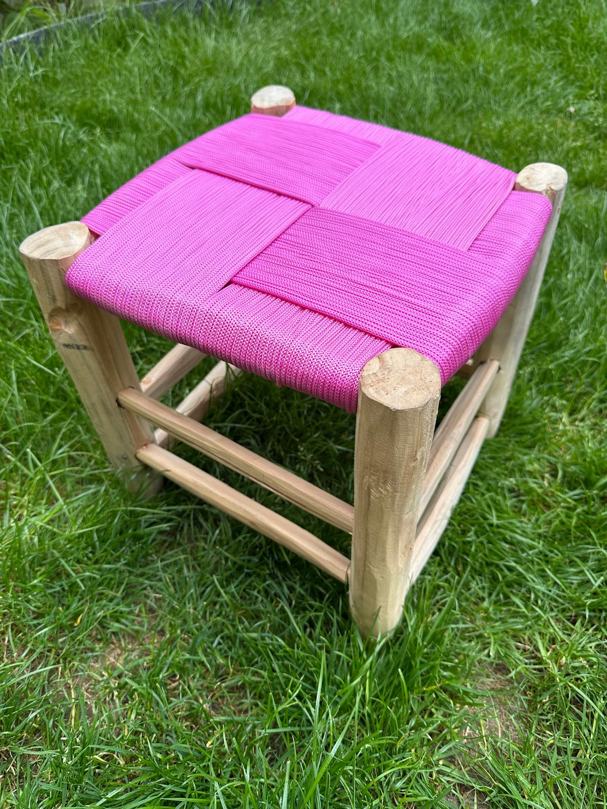 TABOURET EN FIL ROSE ET BOIS NATUREL 30x30CM