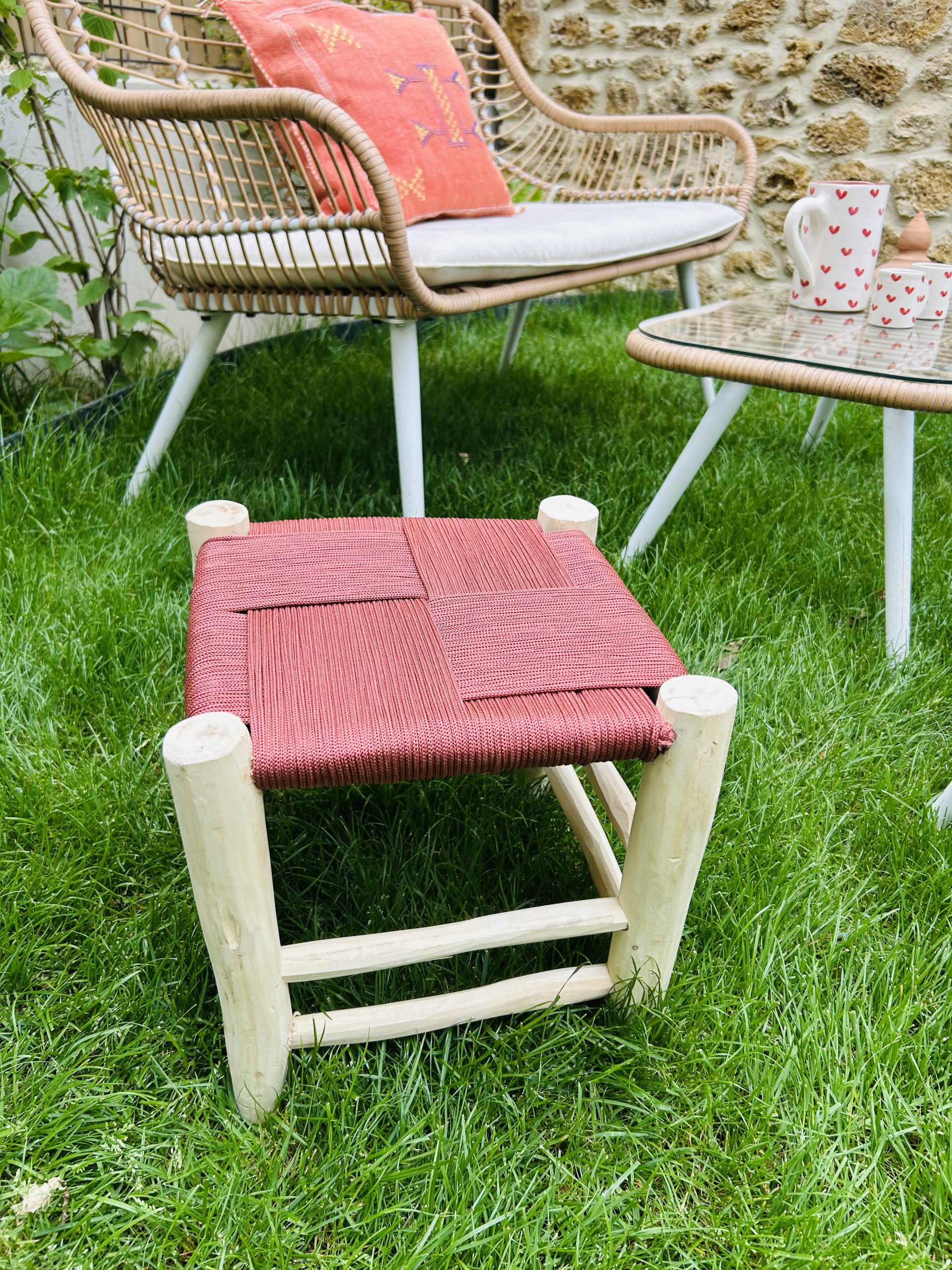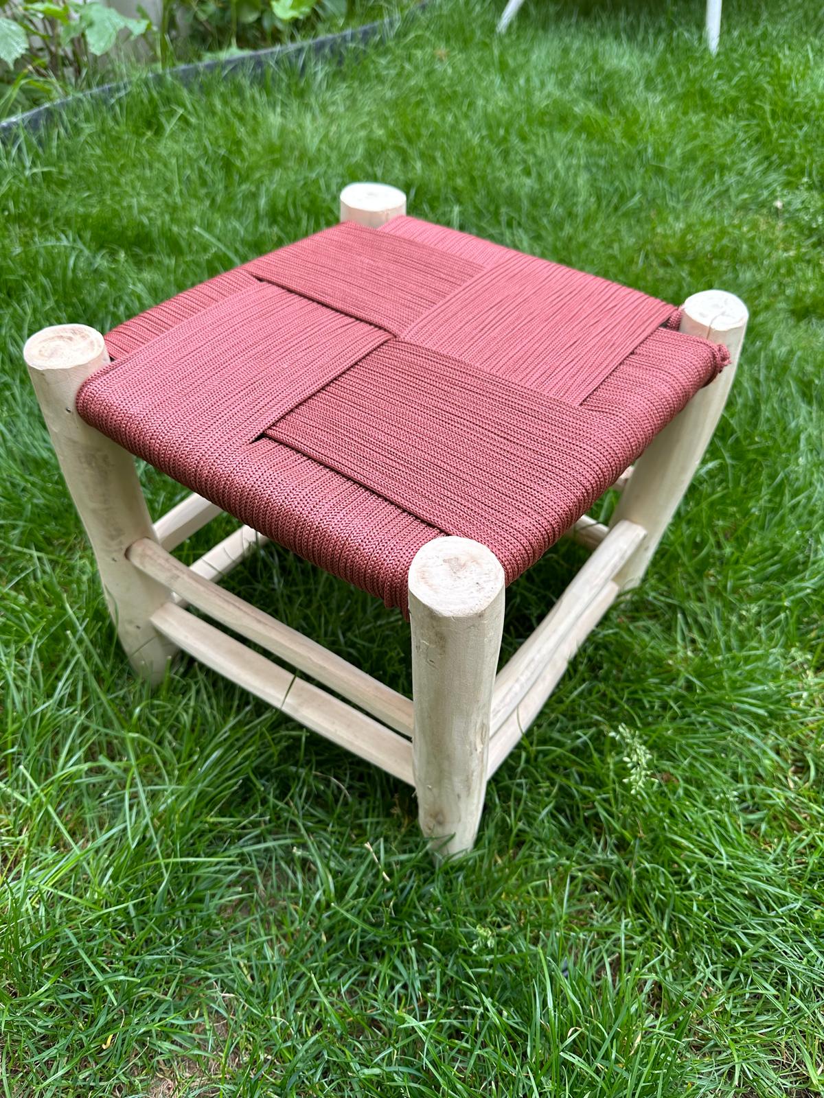 TABOURET EN FIL TERRACOTTA ET BOIS NATUREL 30x30CM