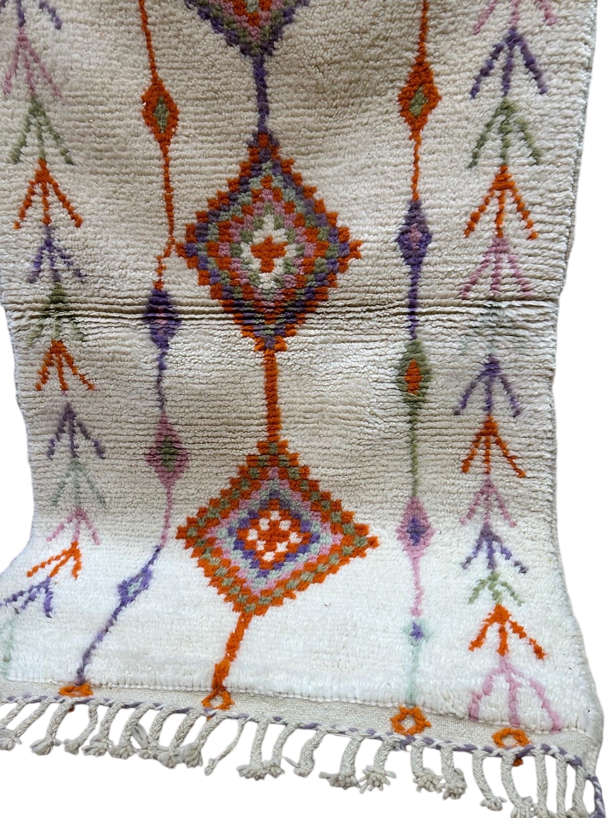 TAPIS DESCENTE DE LIT MAROCAIN BERBÈRE AZILAL COLORÉ EN LAINE 1×1,5m