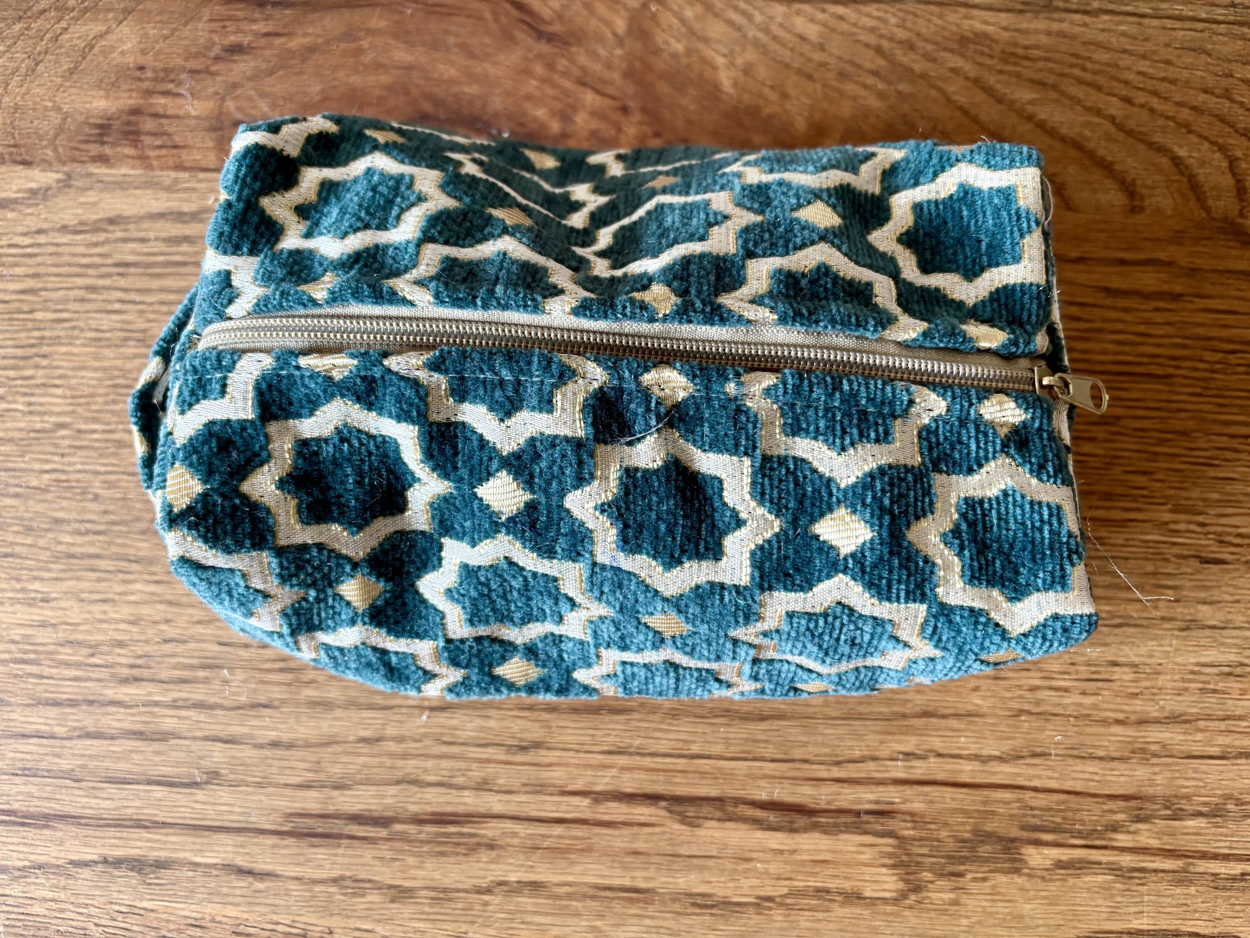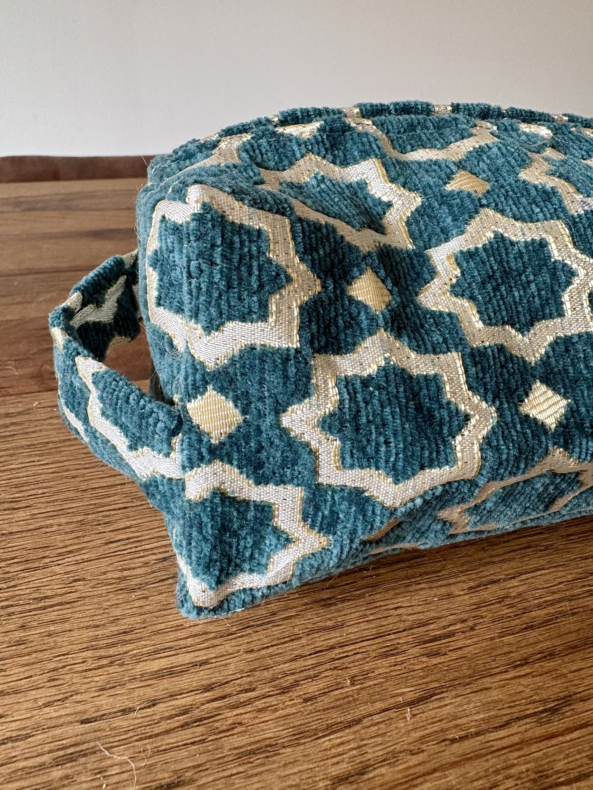 Trousse de toilette Maroc femme – Tissu motif asymétrique vert