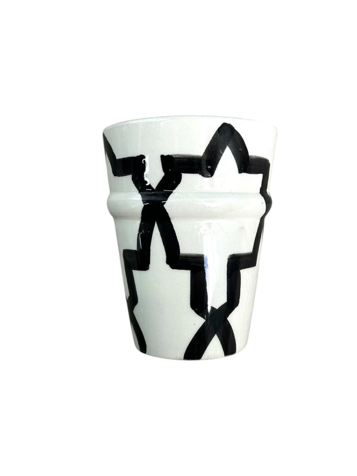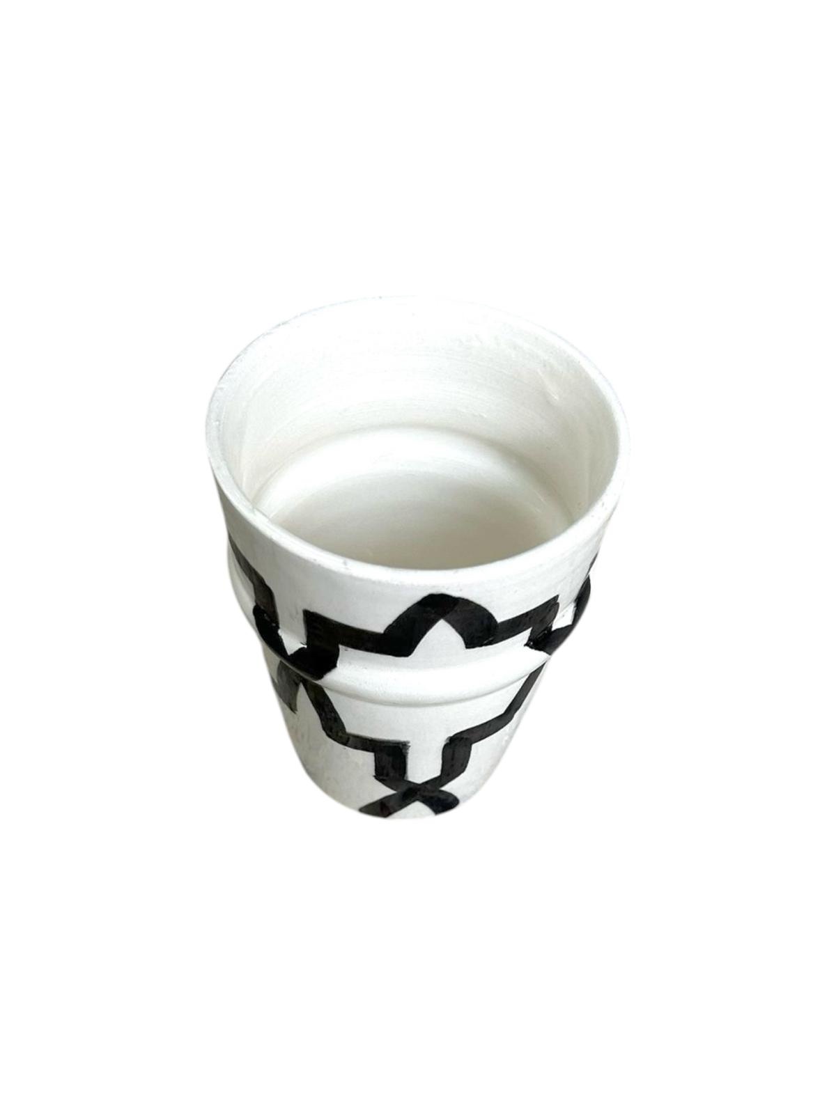 Découvrez notre magnifique verre tasse blanc à motif noir marocain artisanal, un voyage au cœur de l’art traditionnel !