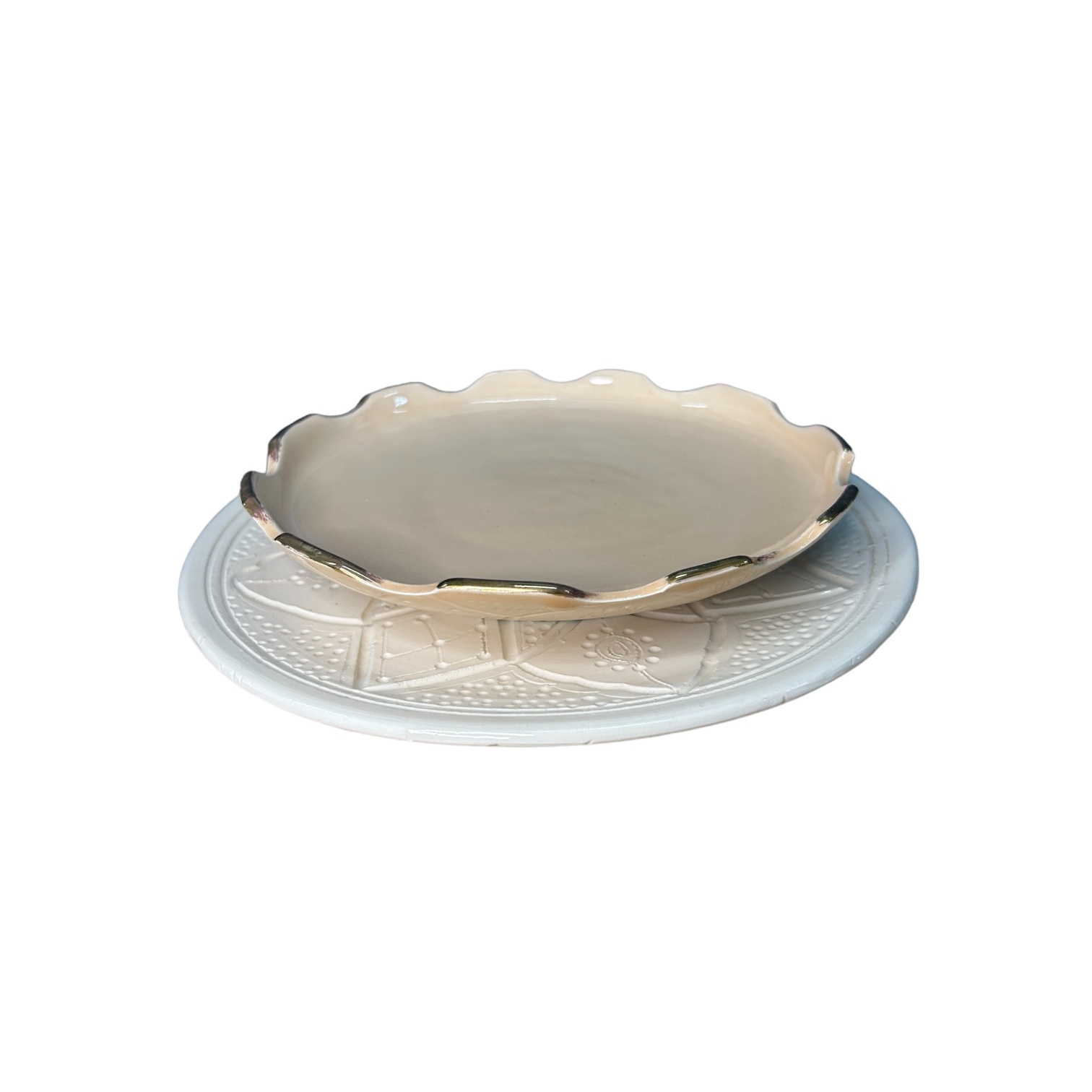 ASSIETTE BEIGE BORDURE DORÉ MAROCAINE 20CM FAIT MAIN