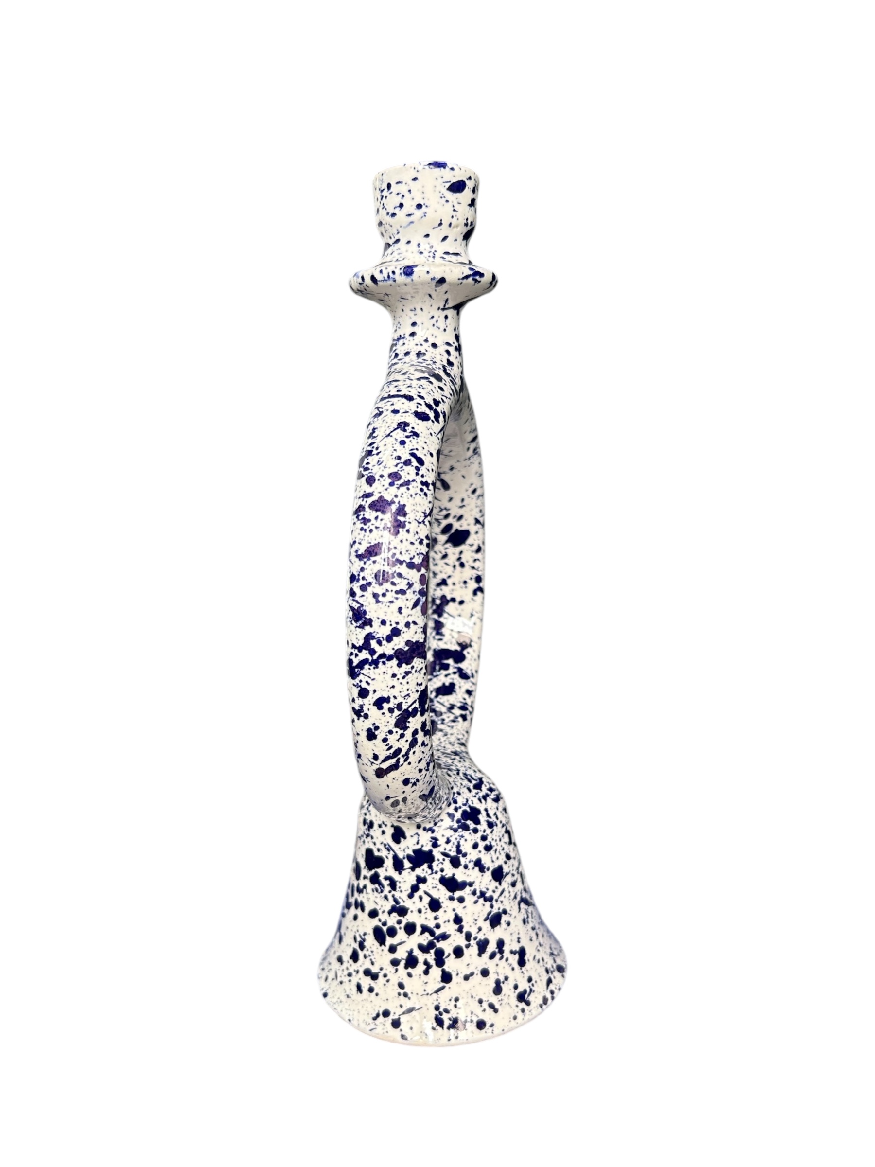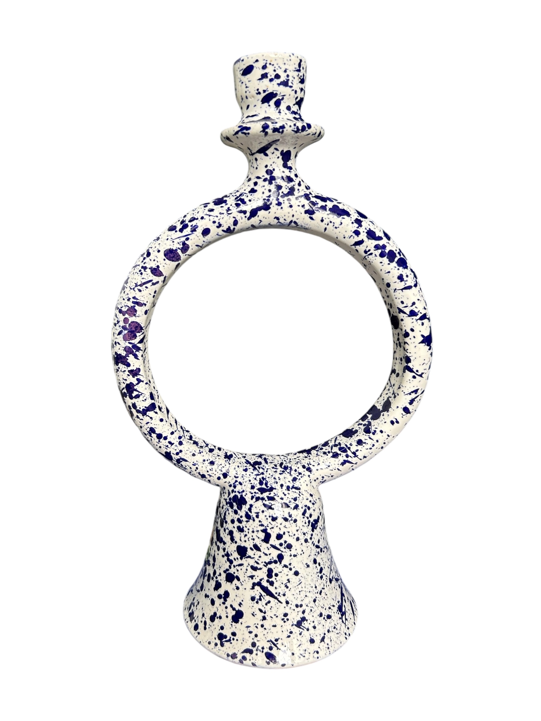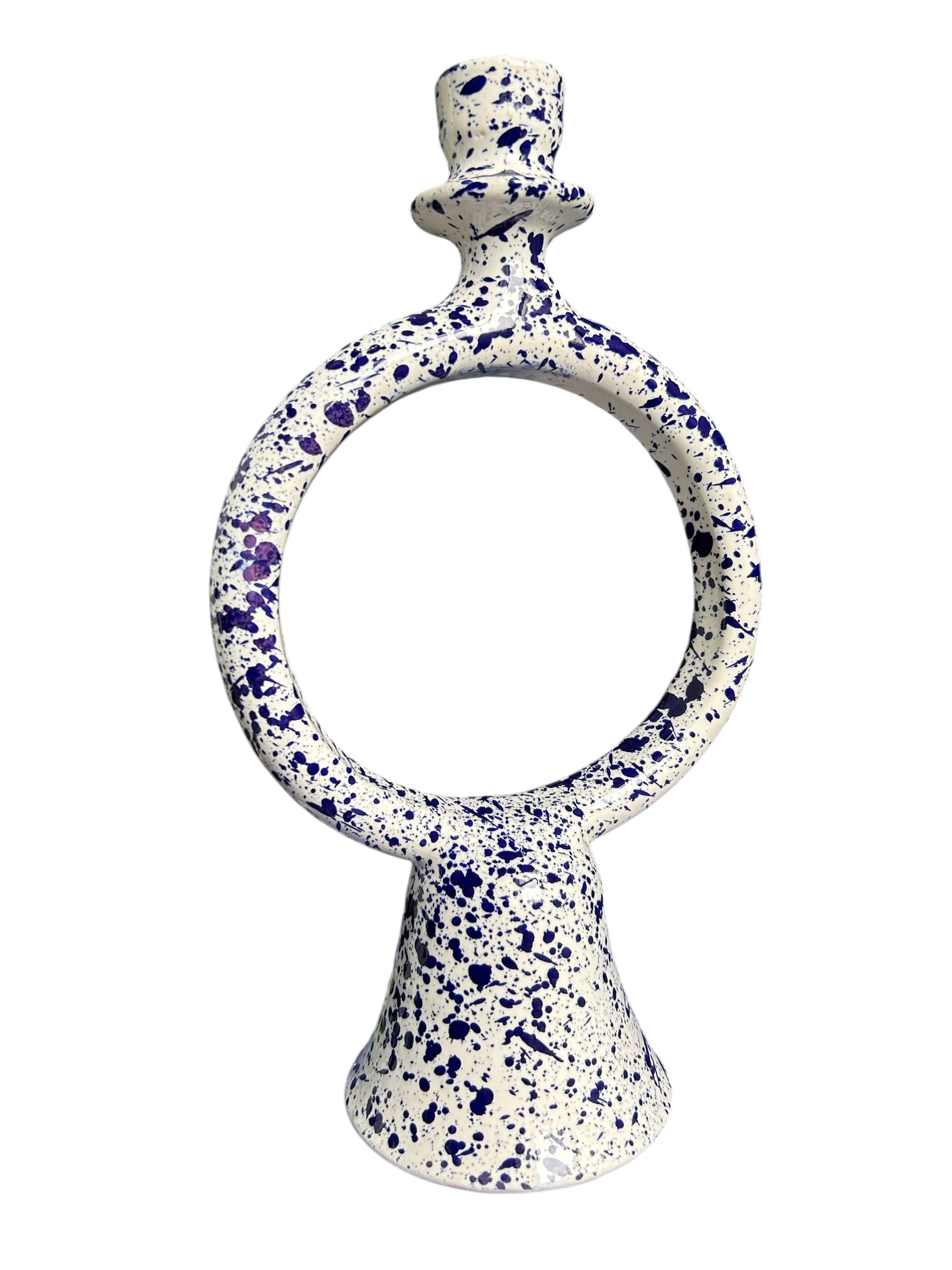 Chandelier bougeoir fait main au design atypique blanc moucheté bleu