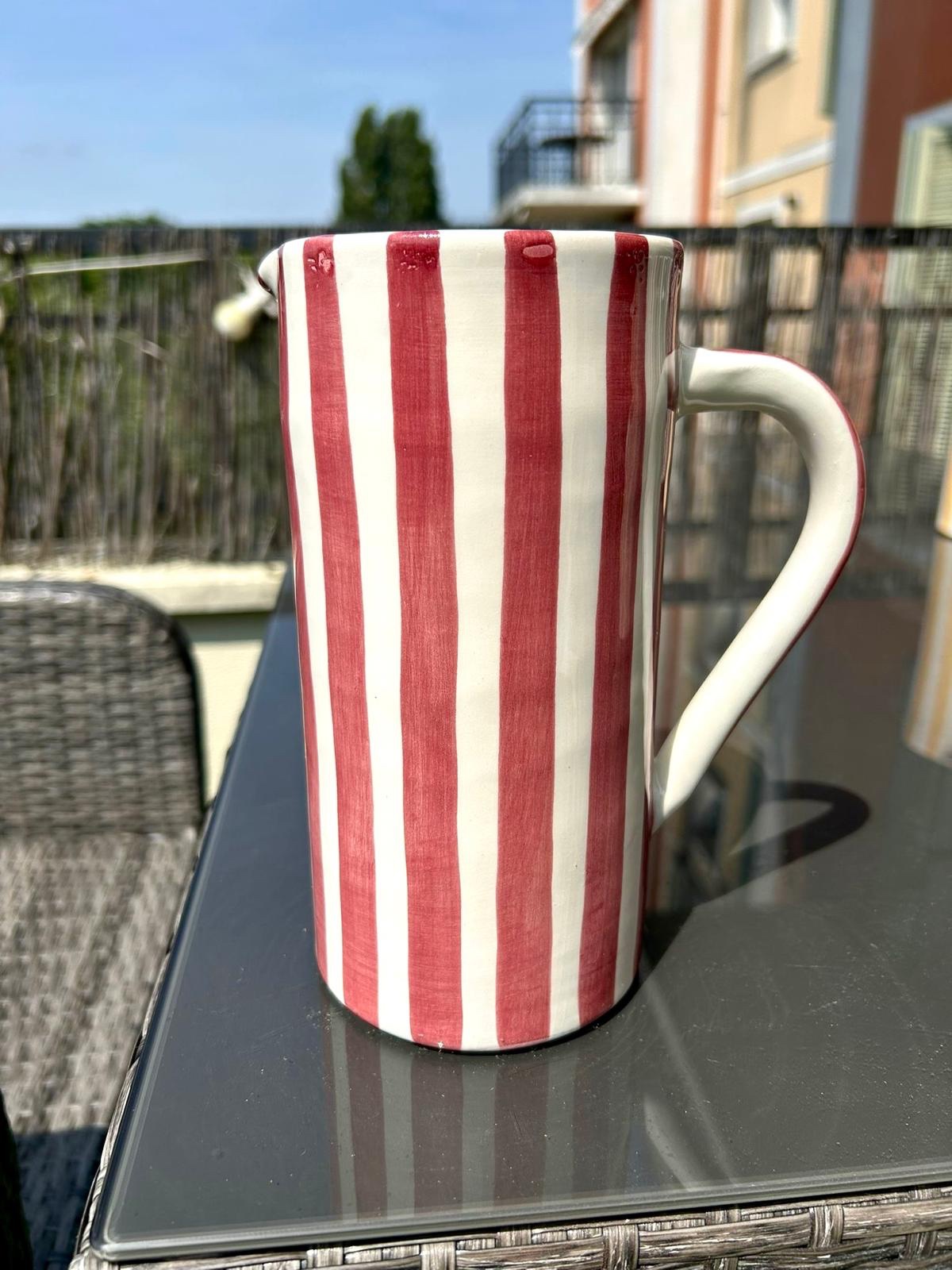 CRUCHE CARAFE PICHET BLANCHE RAYÉ ROSE FRAMBOISE