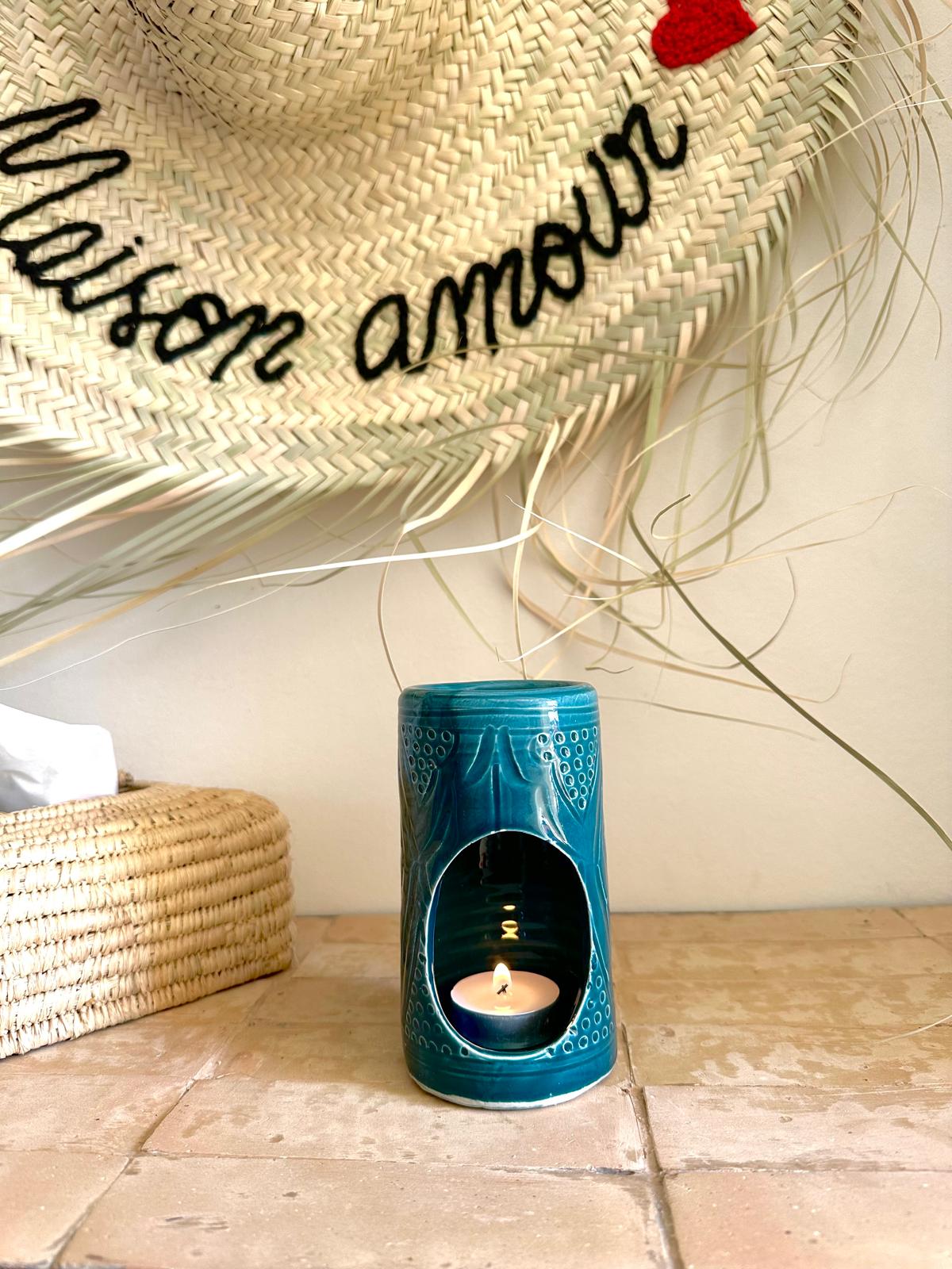 Découvrez notre diffuseur marocain à empreintes bleu, fait main, pour créer une atmosphère apaisante et élégante chez vous !
