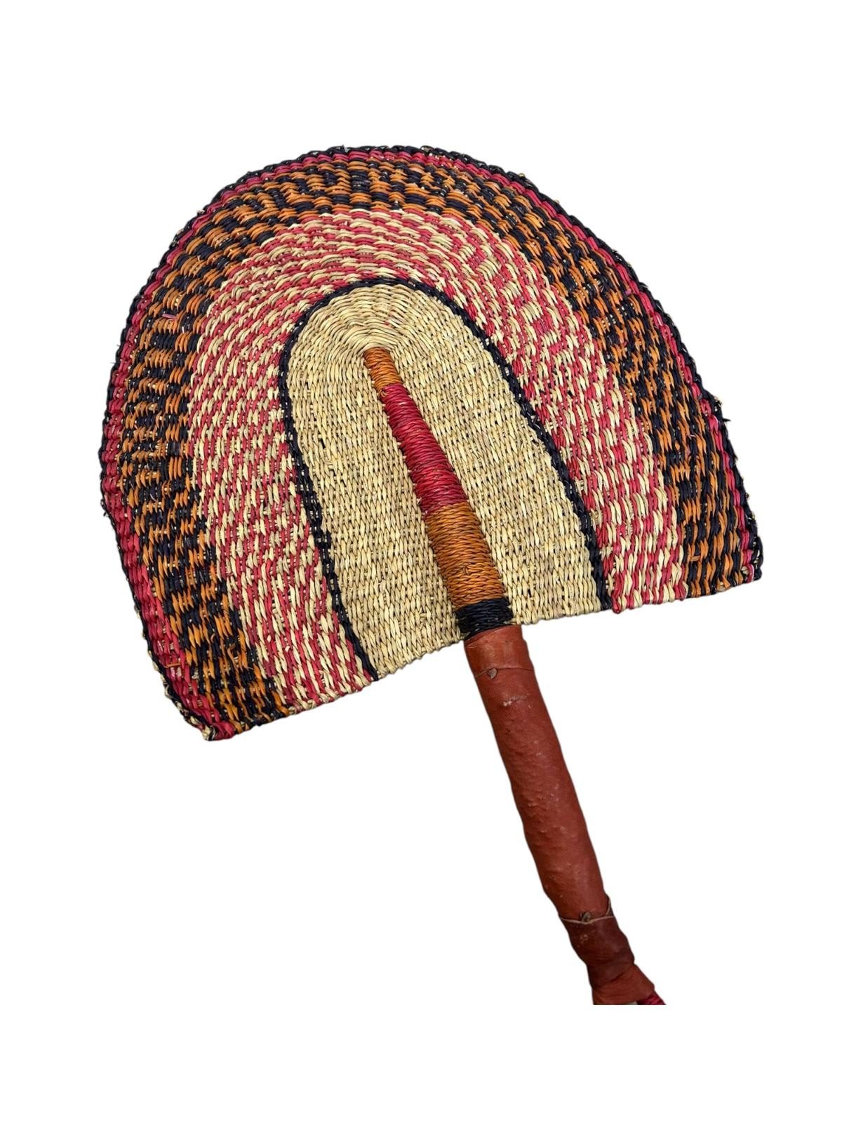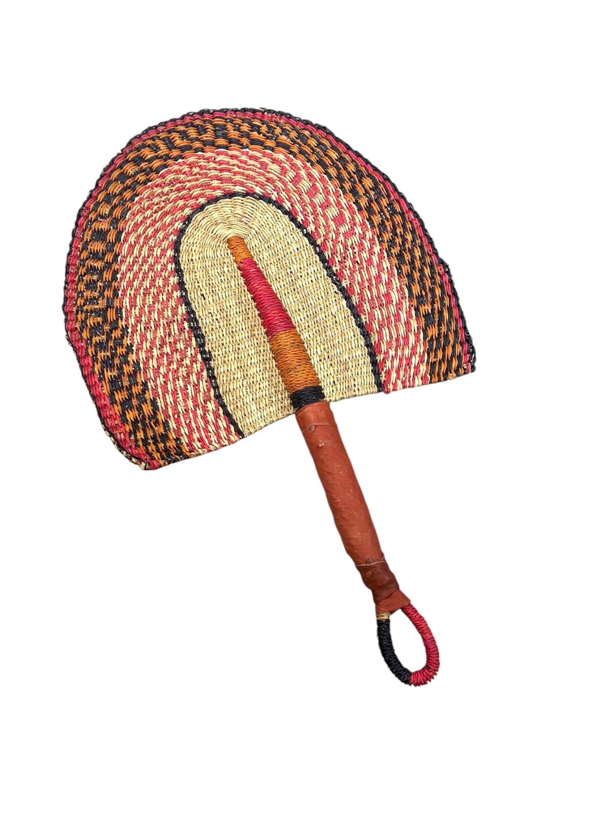 ÉVENTAIL TRESSÉ BOLGA AFRICAIN MURAL EN HERBIER MULTICOULEUR MODÈLE BOGATENGA GHANA #01