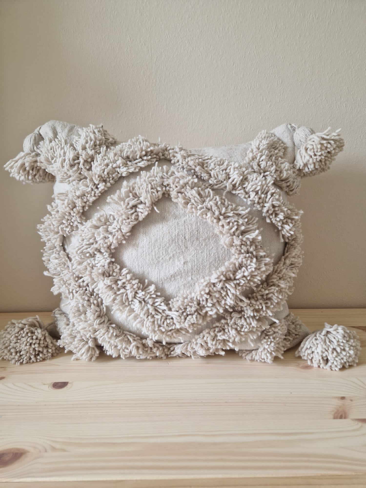 HOUSSE DE COUSSIN À FRANGES BEIGE MODÈLE TÉTOUAN