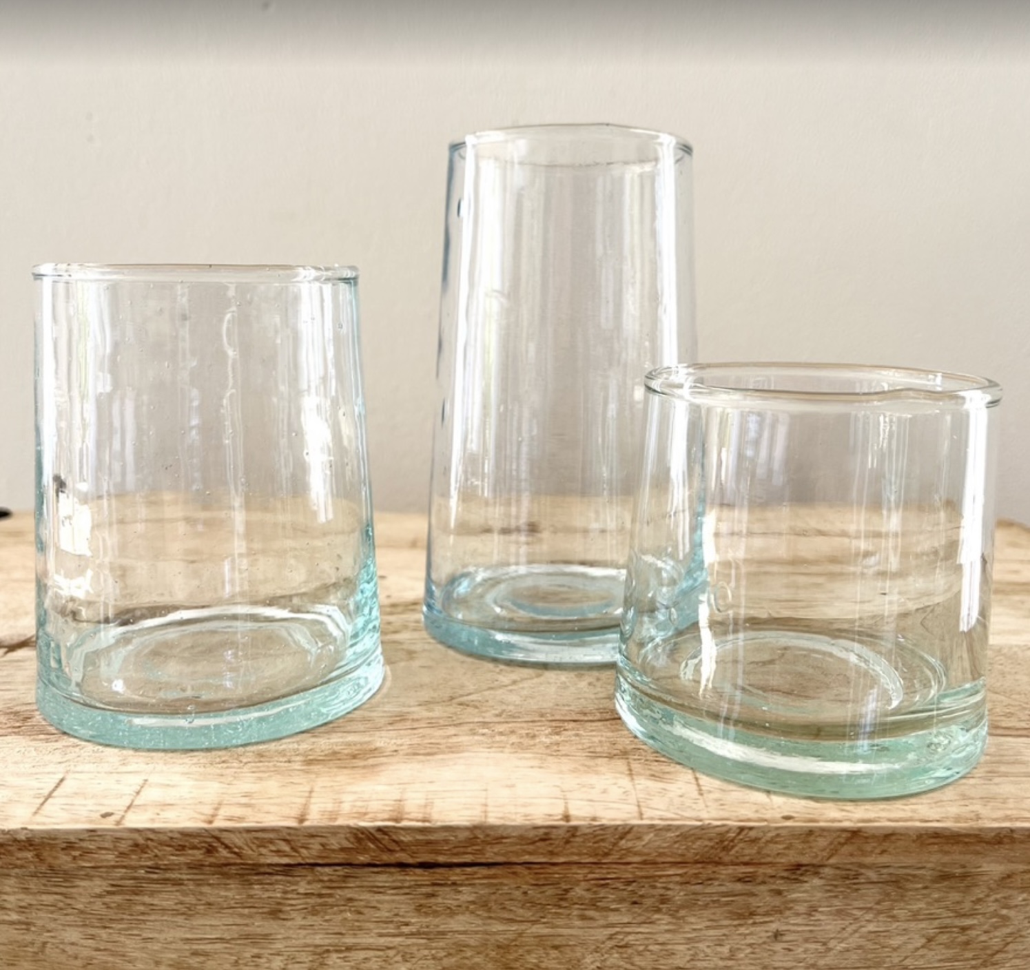 LOT DE 2 VERRES SOUFFLES TRANSPARENTS MAROCAINS BELDI H12 MODÈLE SAFI