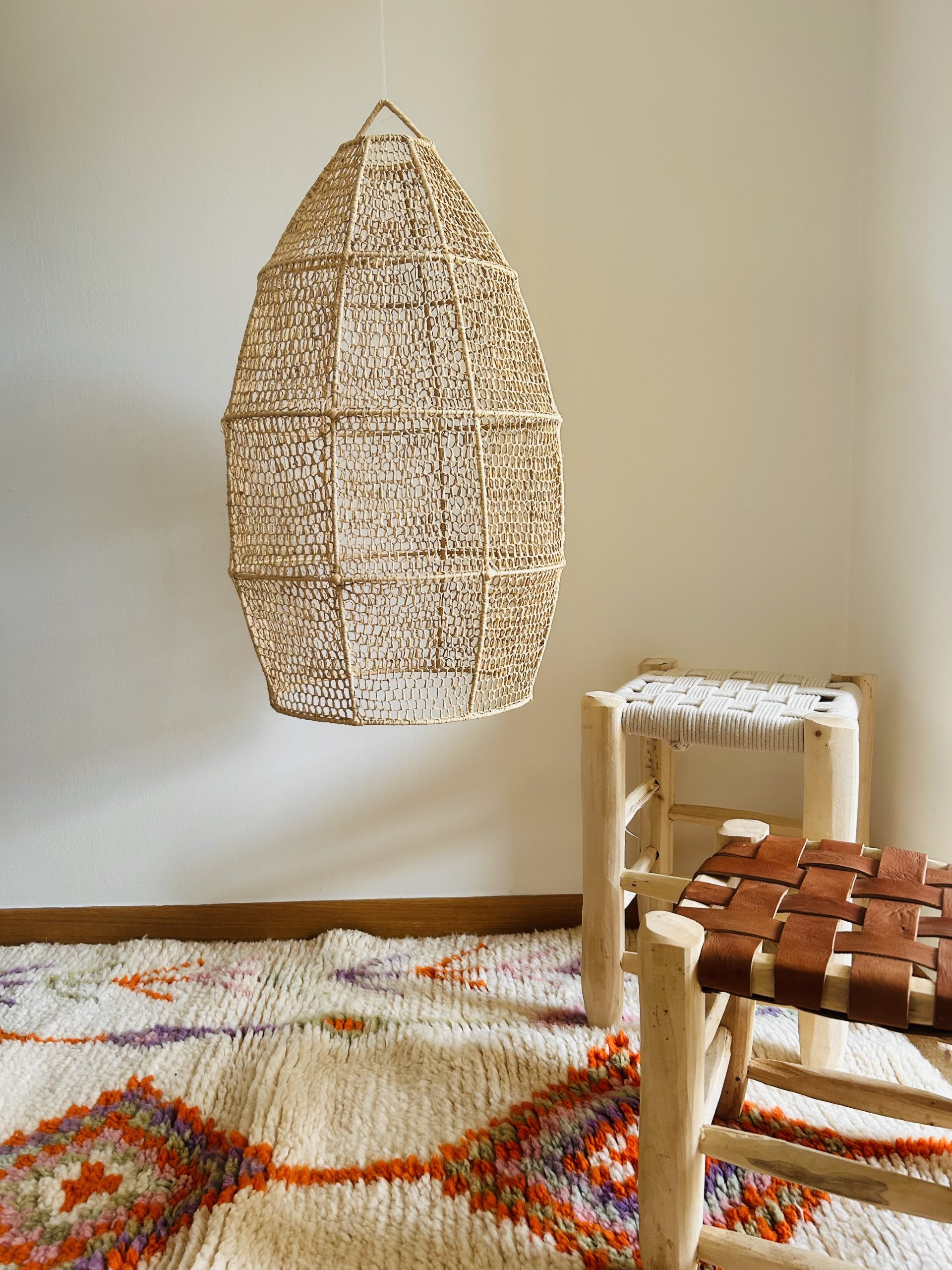 SUSPENSION LUMINAIRE EN DENTELLE DE RAPHIA MODÈLE TAROUDANT