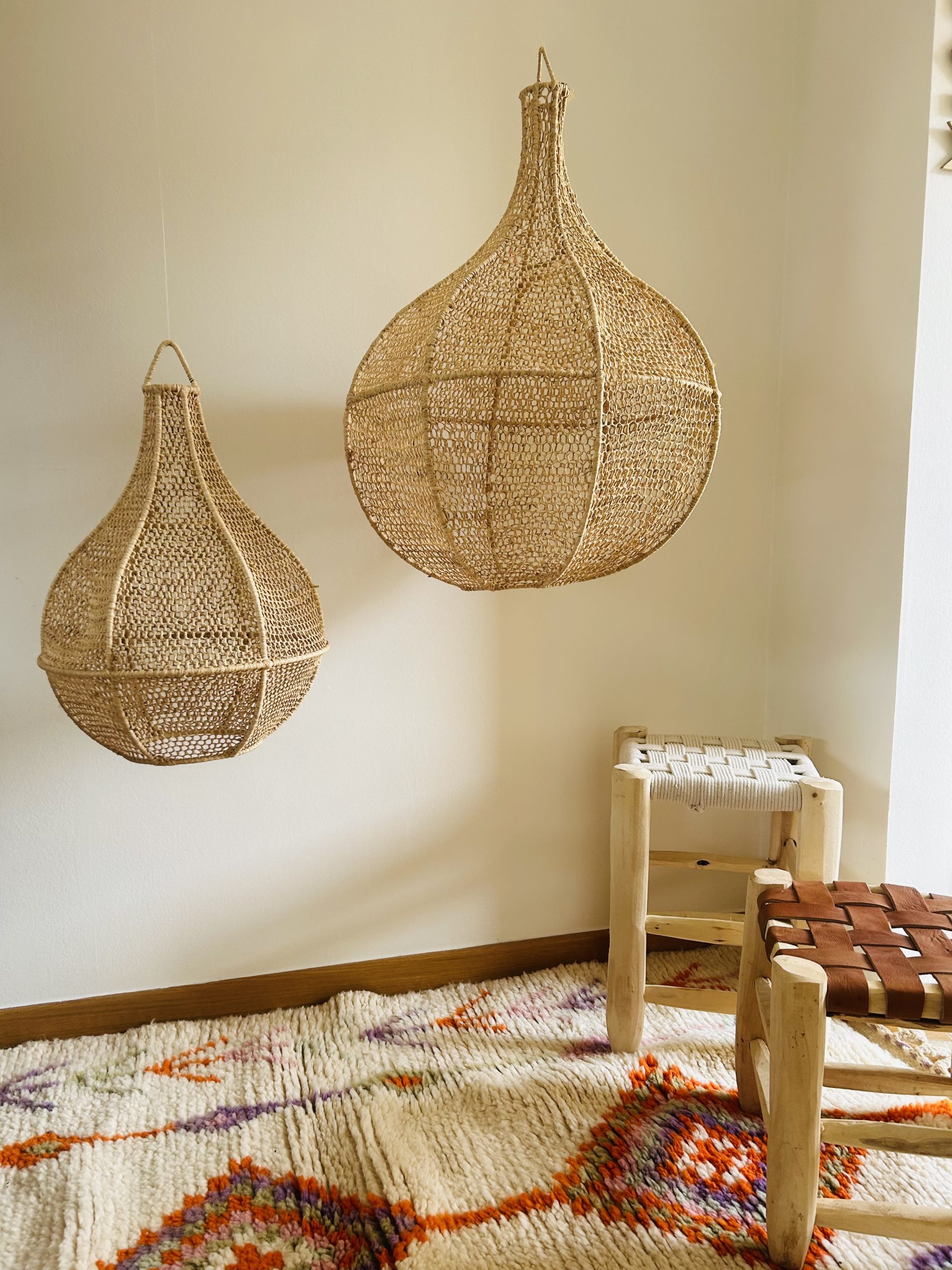 Découvrez notre suspension en dentelle de raphia poire, une pièce artisanale qui apportera une touche d’élégance naturelle à votre intérieur. Entièrement faite à la main, cette suspension reflète le savoir-faire traditionnel des artisans marocains. Le raphia, matériau authentique, est tressé avec finesse pour créer une dentelle délicate et aérienne. Cette conception permet à la lumière de se diffuser subtilement, créant une ambiance chaleureuse et apaisante dans votre espace de vie.