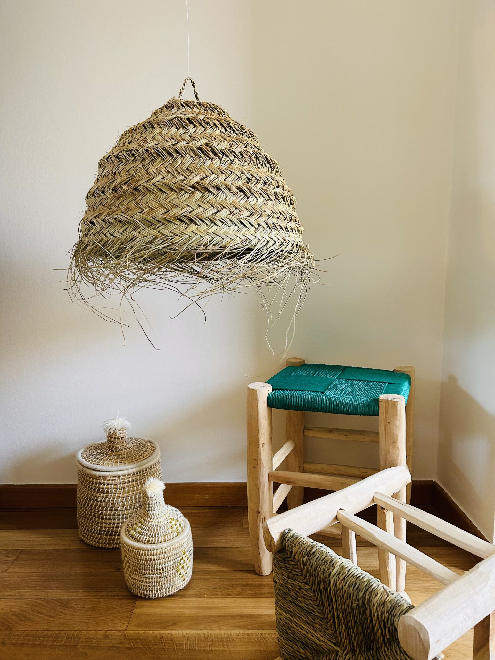 Cette magnifique suspension en feuille de palmiers forme plate s’intégrera à merveille dans votre intérieur. Au-dessus de la table à manger, dans votre chambre ou en accumulation dans le salon, ses cheveux apportent un charme naturel à votre pièce. La forme demi bol permet de laisser passer la lumière.