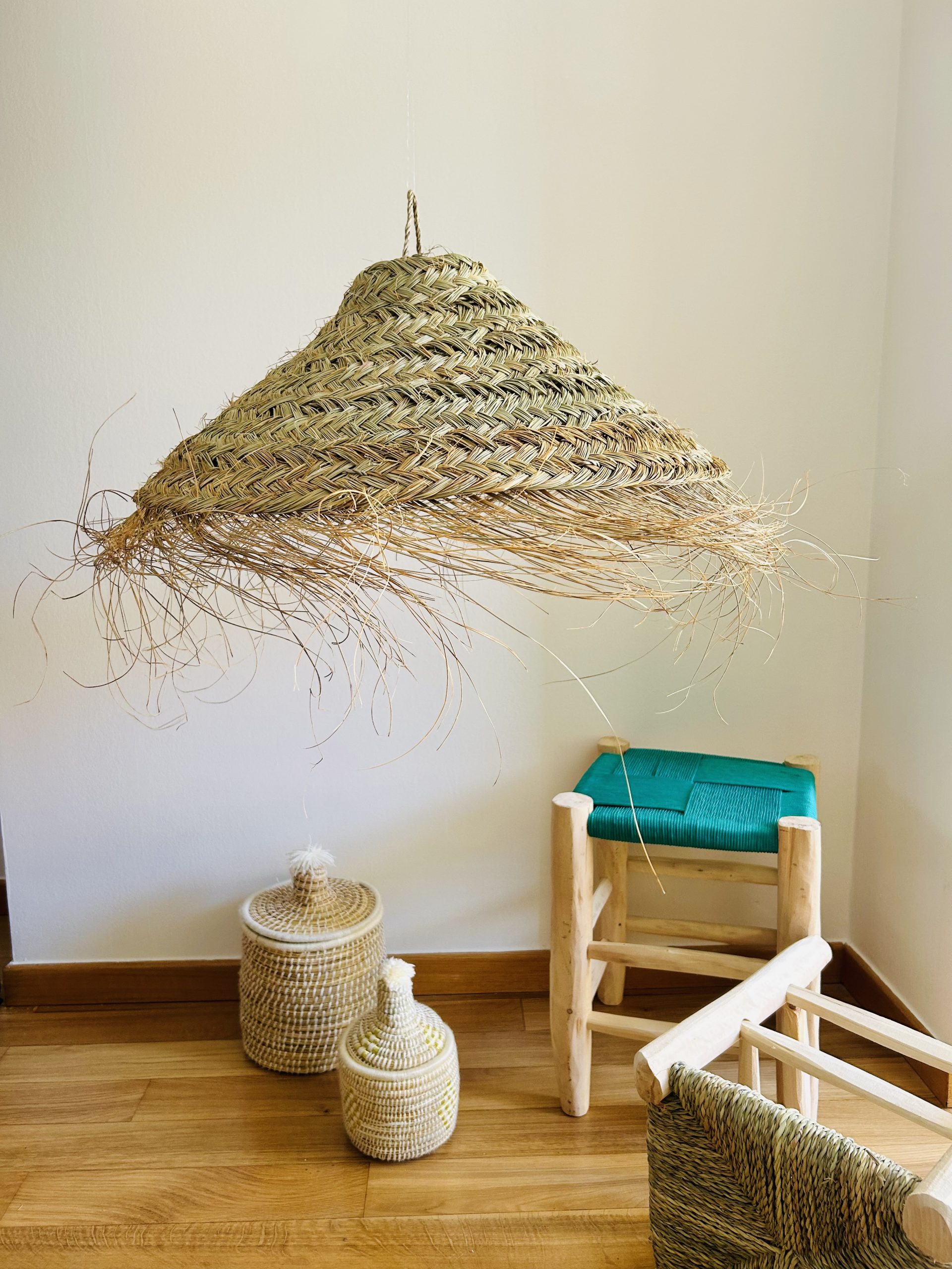 Cette magnifique suspension en doum plate s’intégrera à merveille dans votre intérieur. Au-dessus de la table à manger, dans votre chambre ou en accumulation dans le salon, ses cheveux apportent un charme naturel à votre pièce. La forme plate permet de laisser passer la lumière.